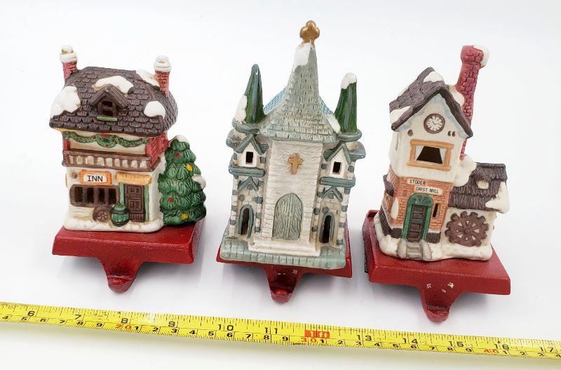 CHRISTMAS CERAMIC STOCKING HOLDERS 3 PC