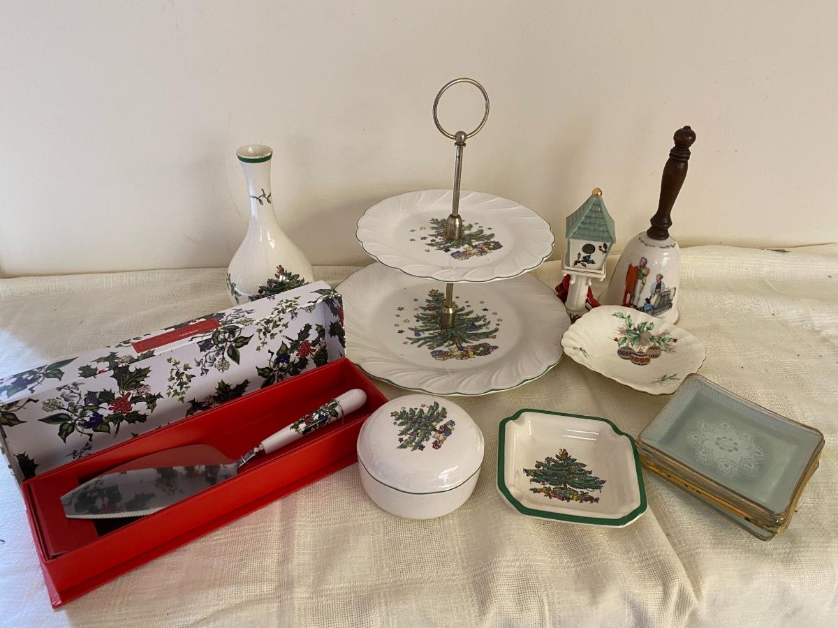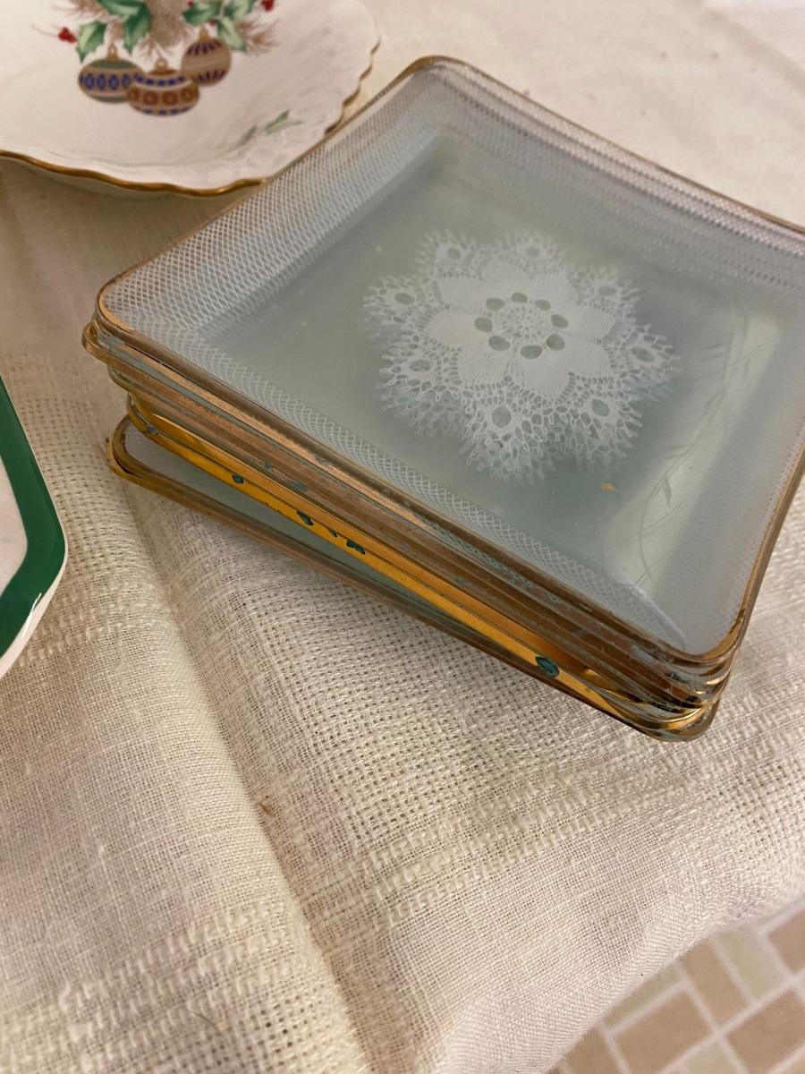 Includes Spode, Lenox, vintage glass snowflake coasters. and more. In box on floor of guest room. If shipped, these items will be packed and shipped by UPS at cost to buyer.