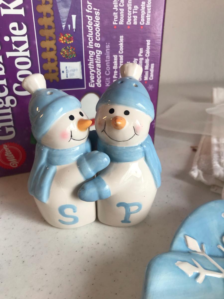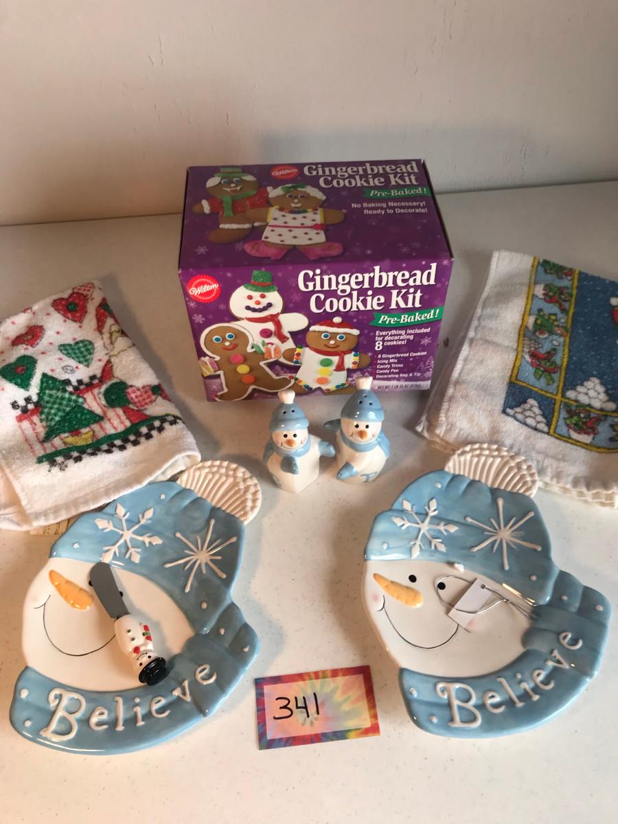 Gingerbread cookie kit, two towels, a Snowman Salt & pepper, plus two Snow Men trays.