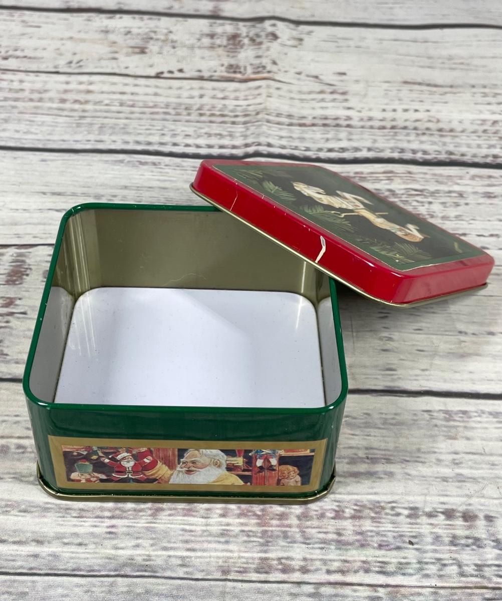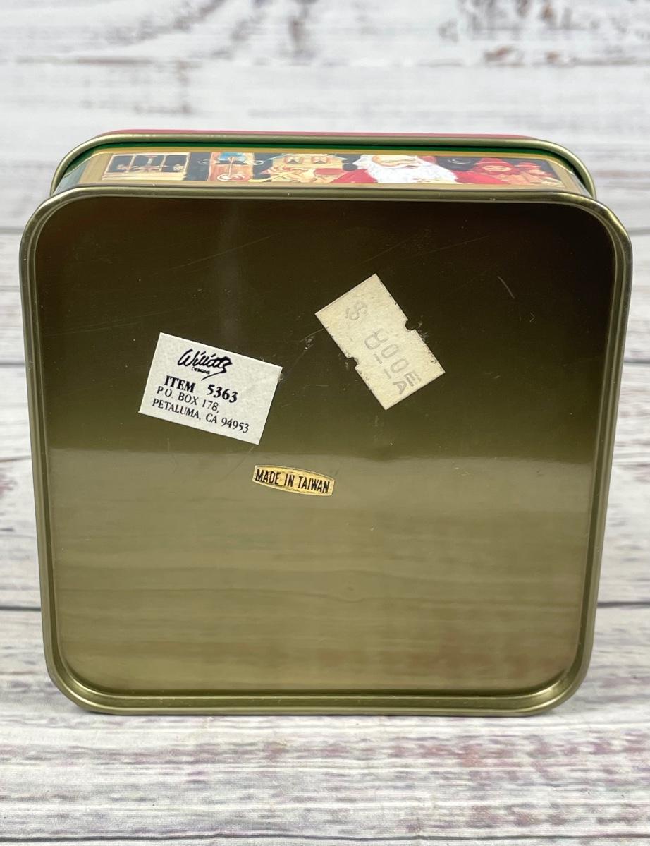 The tin box is in good condition but has some discoloration here and there. The item is relatively small at approximately 4” wide. It was made in Taiwan.