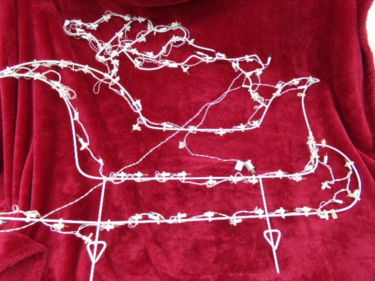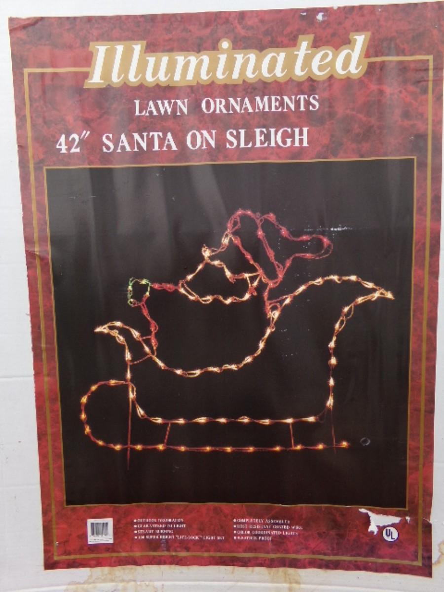 Christmas comes around every year. Lighted lawn ornament Santa in a sleigh. Tested, it lights up OK.