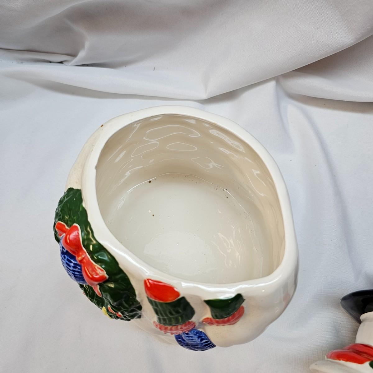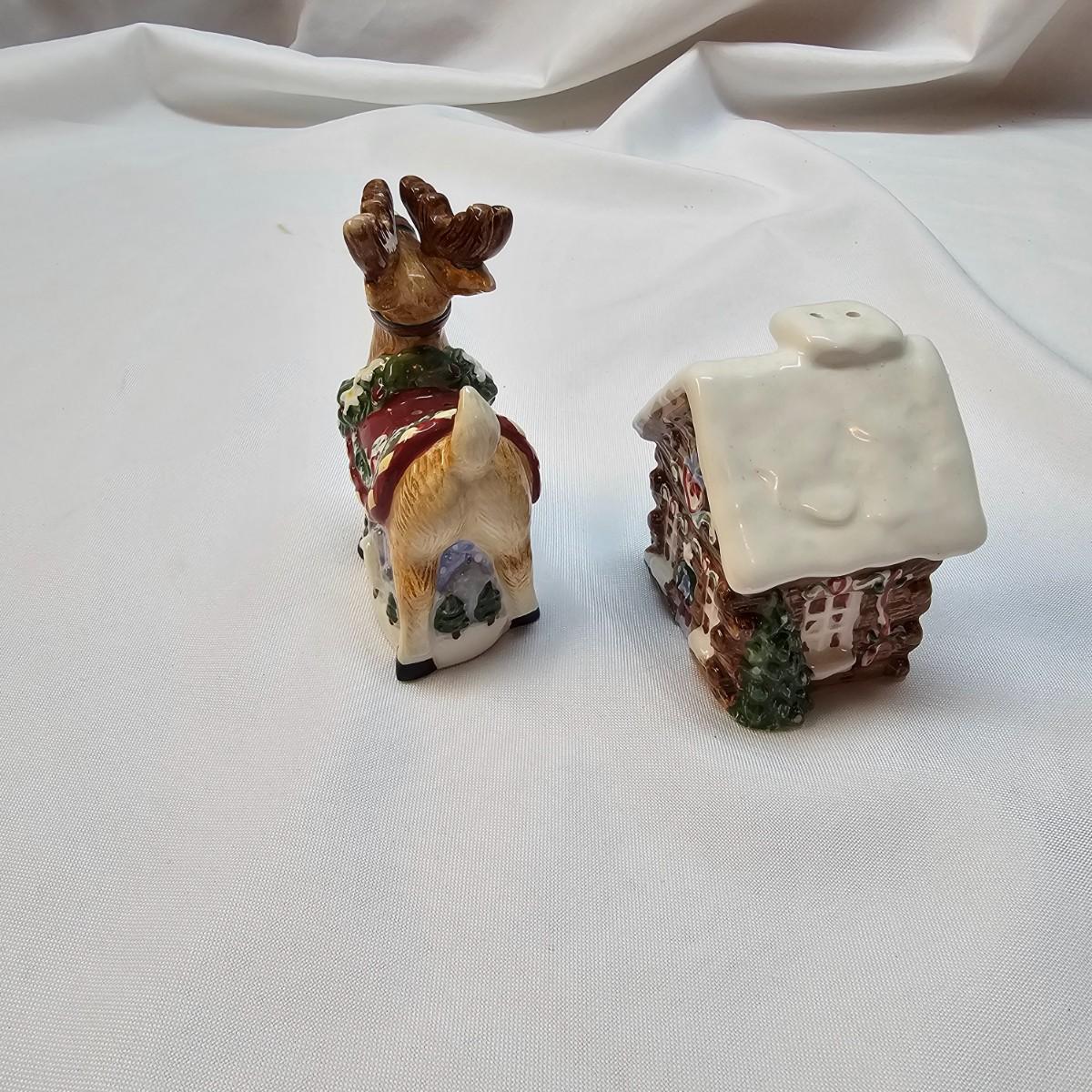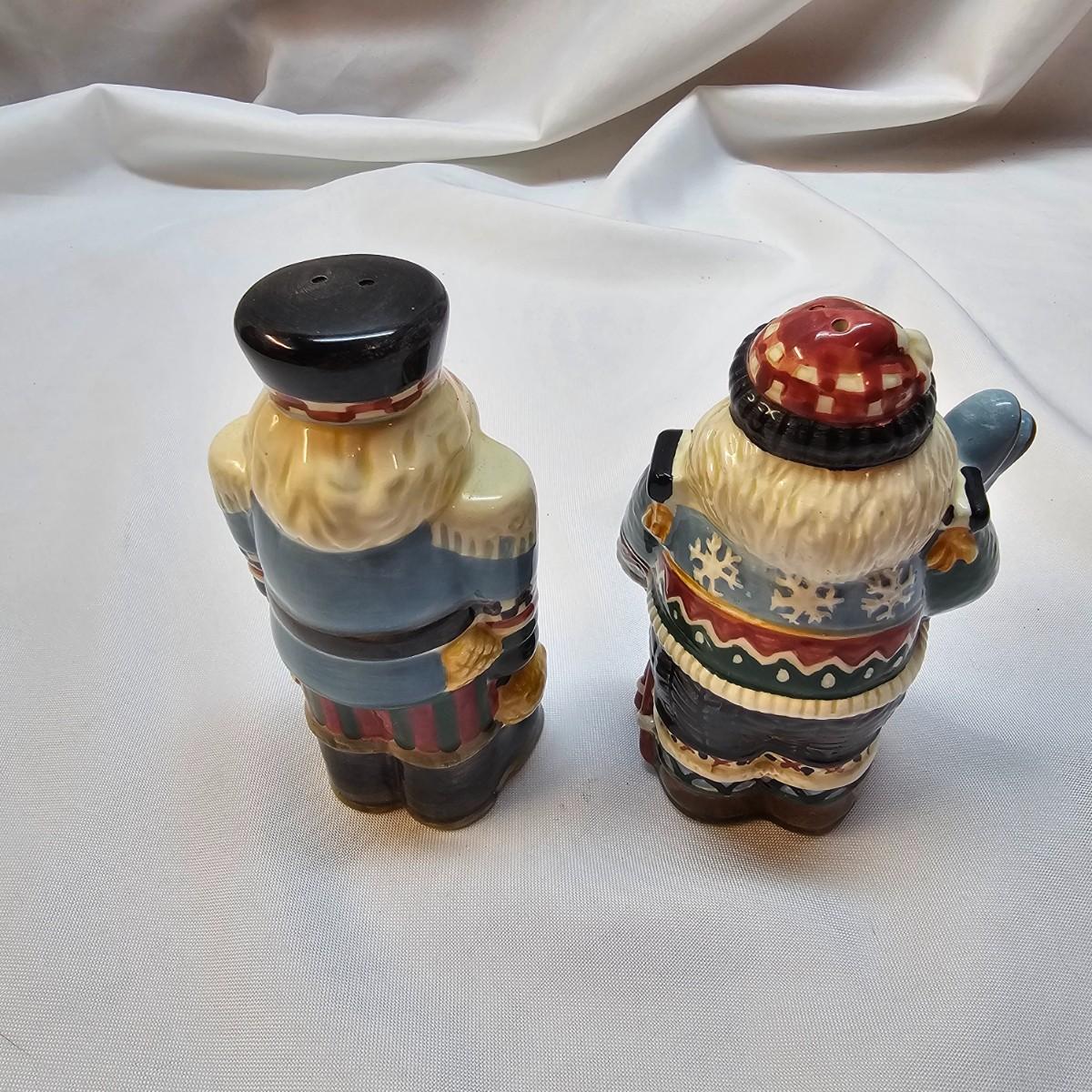 Two festive cookie jars, one snowman and one tree. Both pieces are ceramic, the snowman isc7" x 7" x 10"H, the tree is 7" x 7" x 11"H. Also included, eleven sets of holiday themed salt & pepper shaker sets. Santa, Rudolph, snowmen, houses, trees, each one unique on it's own. See photos for details. Shipping available.