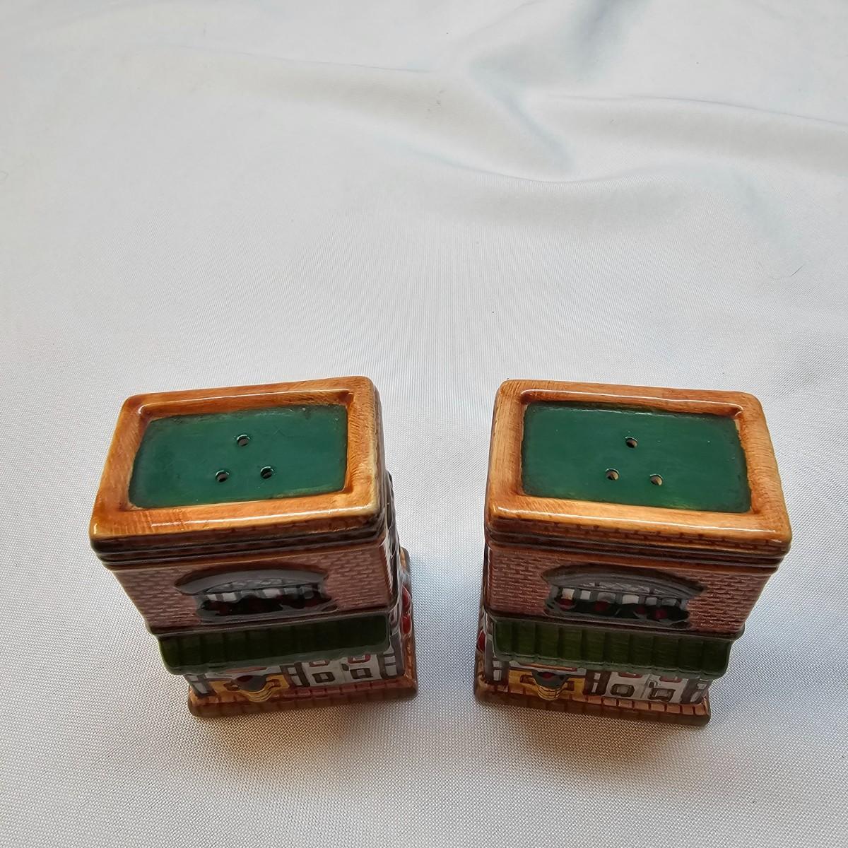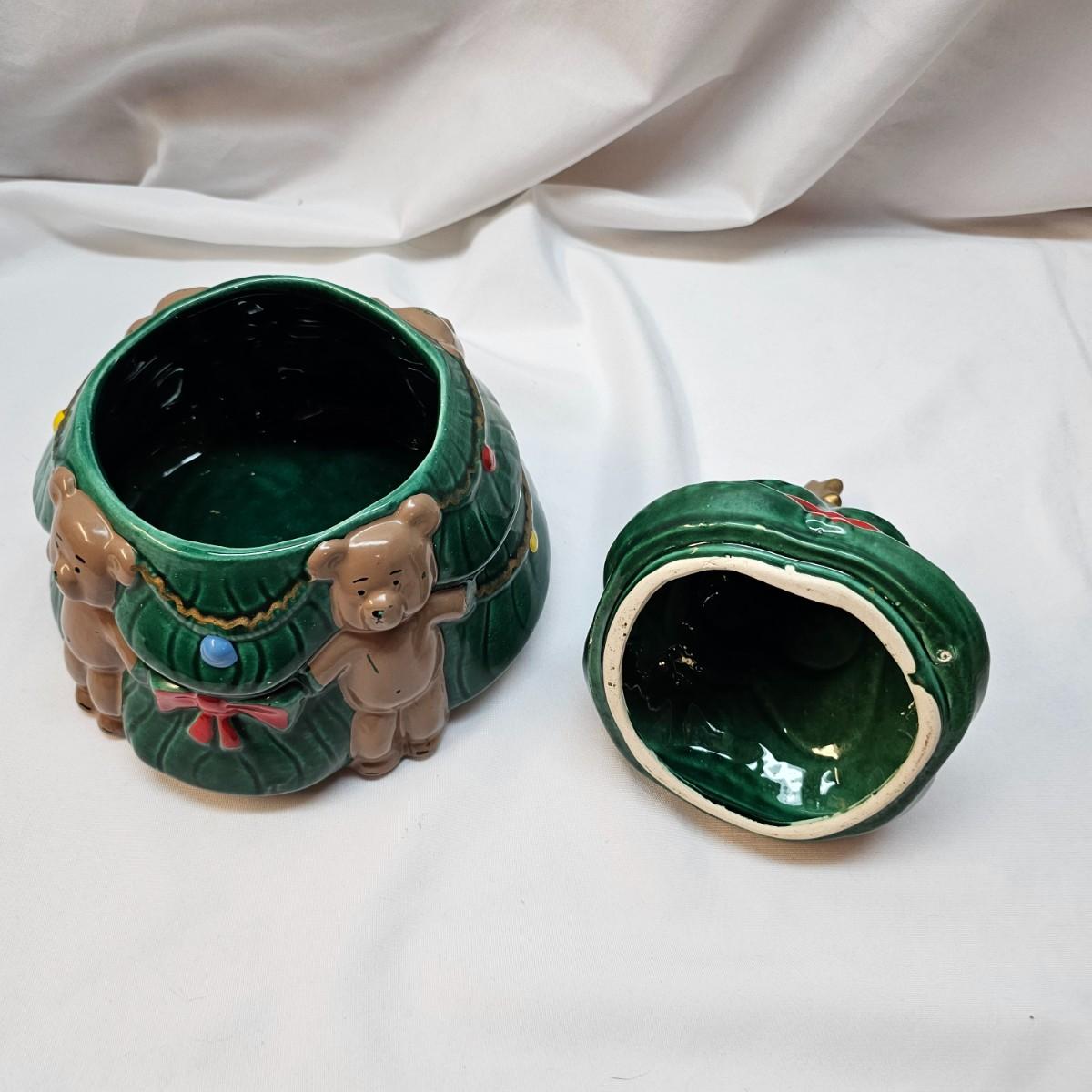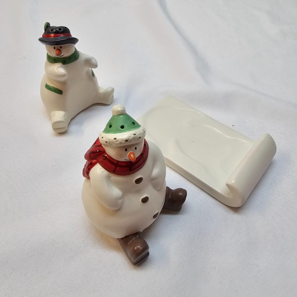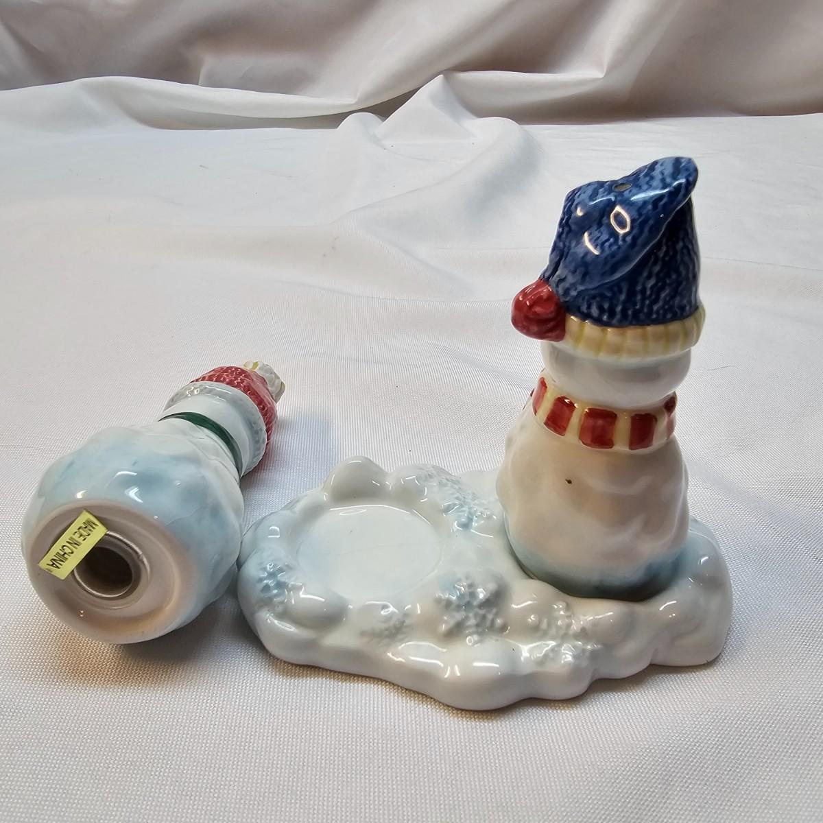 Two festive cookie jars, one snowman and one tree. Both pieces are ceramic, the snowman isc7" x 7" x 10"H, the tree is 7" x 7" x 11"H. Also included, eleven sets of holiday themed salt & pepper shaker sets. Santa, Rudolph, snowmen, houses, trees, each one unique on it's own. See photos for details. Shipping available.
