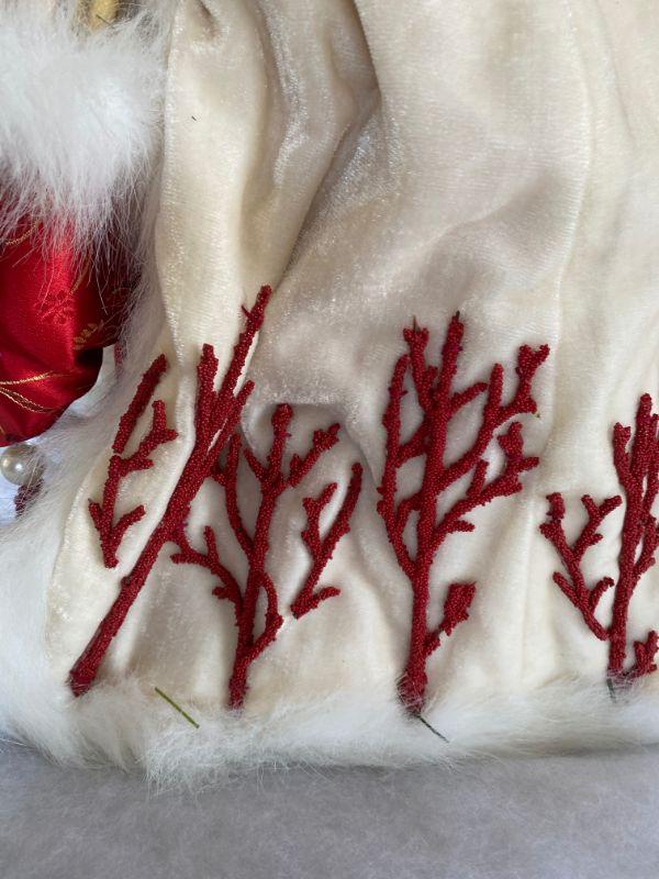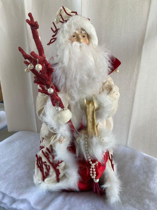 Tall Christmas Santa decorated with pearls and coral stands approximately 23" tall