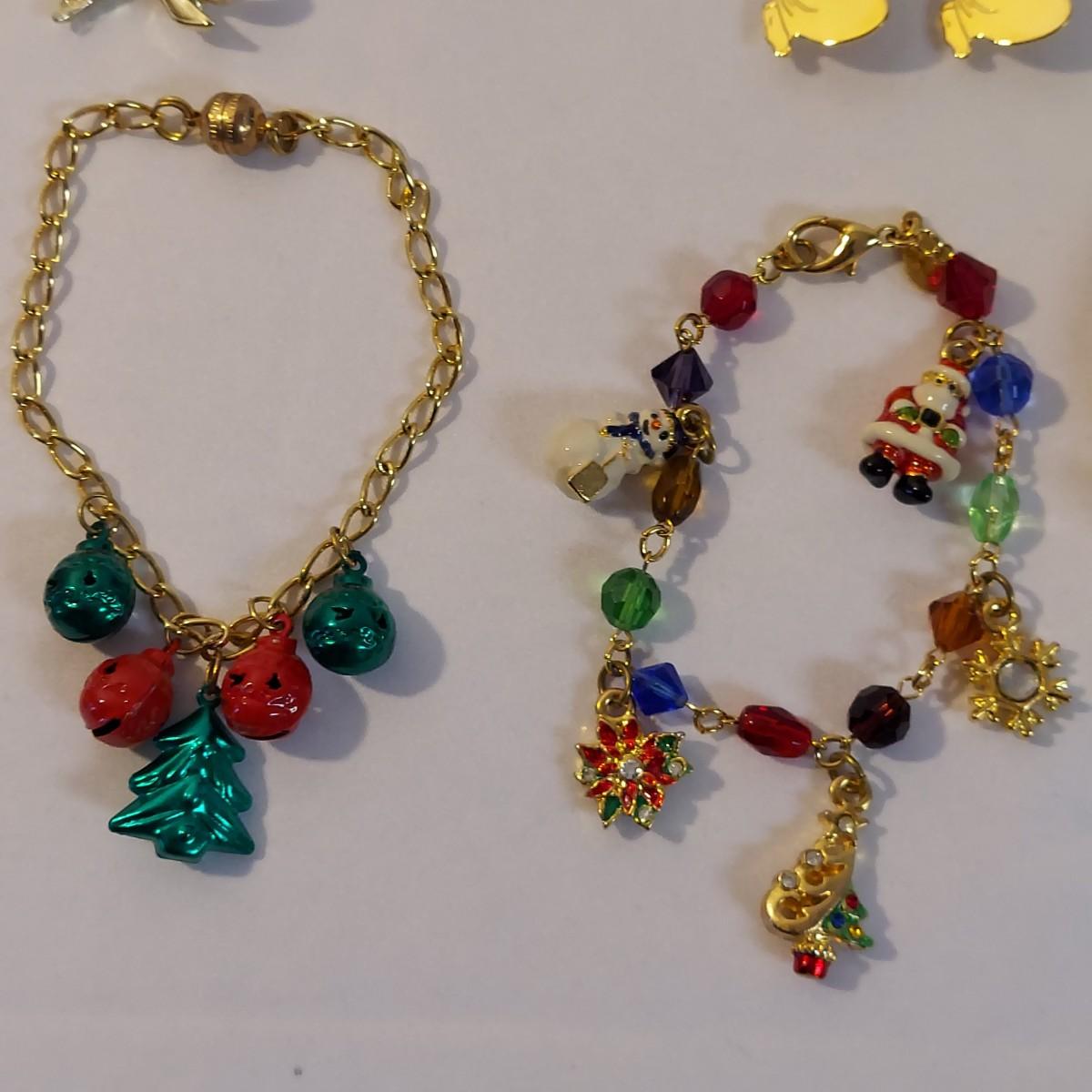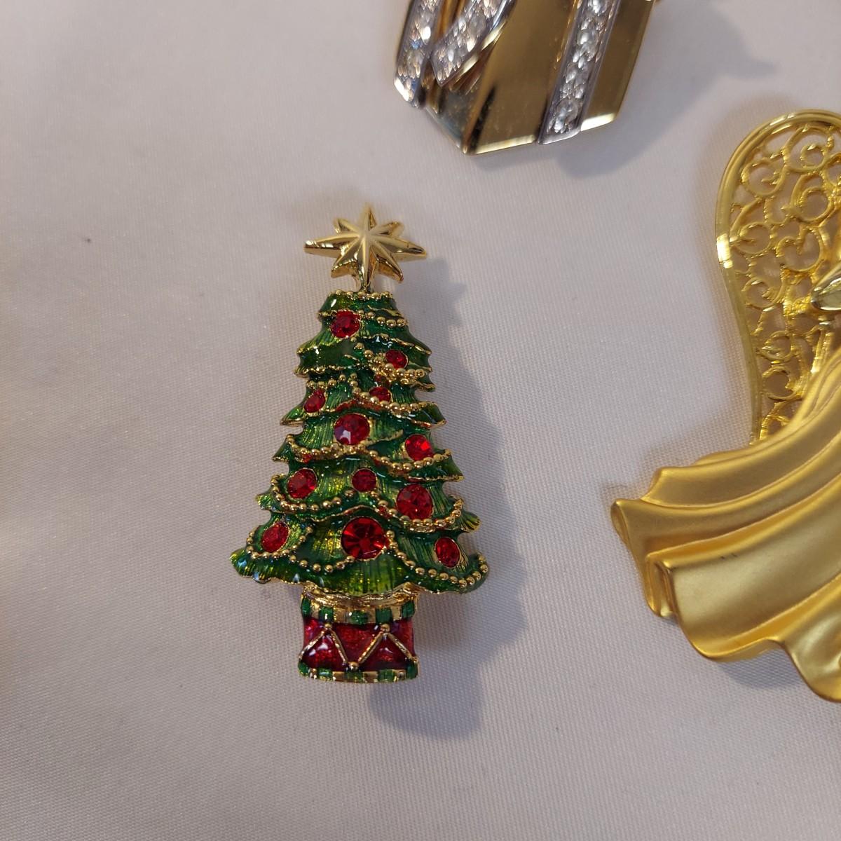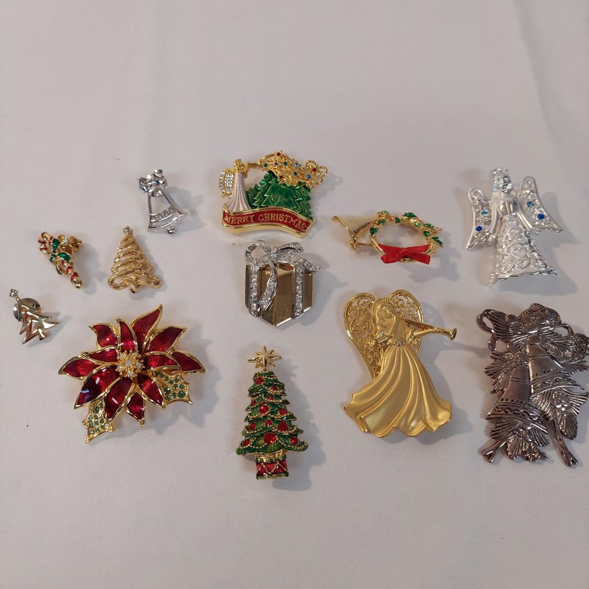 Several pieces of Christmas Holiday costume jewelry. Lot includes seven bracelets, one watch that is missing the back, three necklaces, one pair of earrings for pierced ears, one pendant and 40+ brooches. Some of the brooches can double as pendants. Most items are costume jewelry but some brooches are stamped .925. There are also several brooches bearing stamps of brands such as Avon, Christopher Radko, Nolan Miller, Trifari and Marie Jennifer. Necklaces are 24" long. Please see photos for all markings found. We cannot guarantee the authenticity of the gemstones. All sales are final. No returns or refunds. Please bid accordingly.