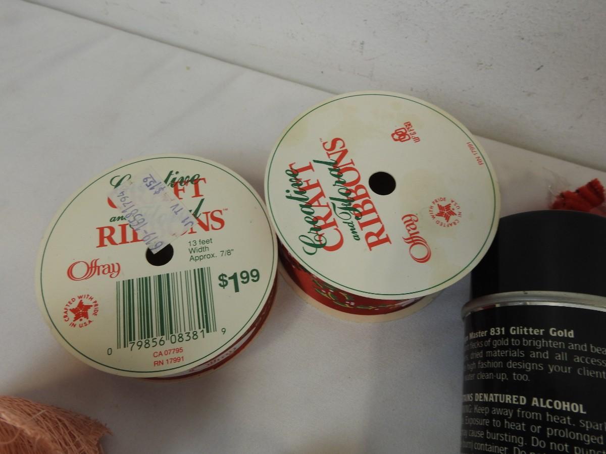 Christmas Craft Lot: Pinecones, Ribbons, Glitter Gold