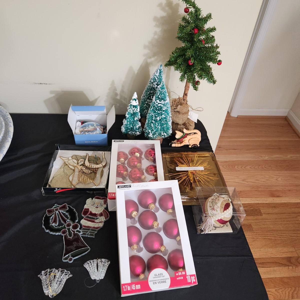 Christmas Décor lot Trees, ornaments, Wedgewood lot 569