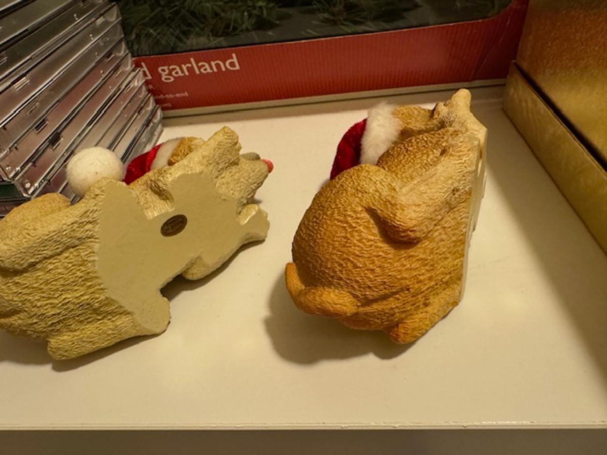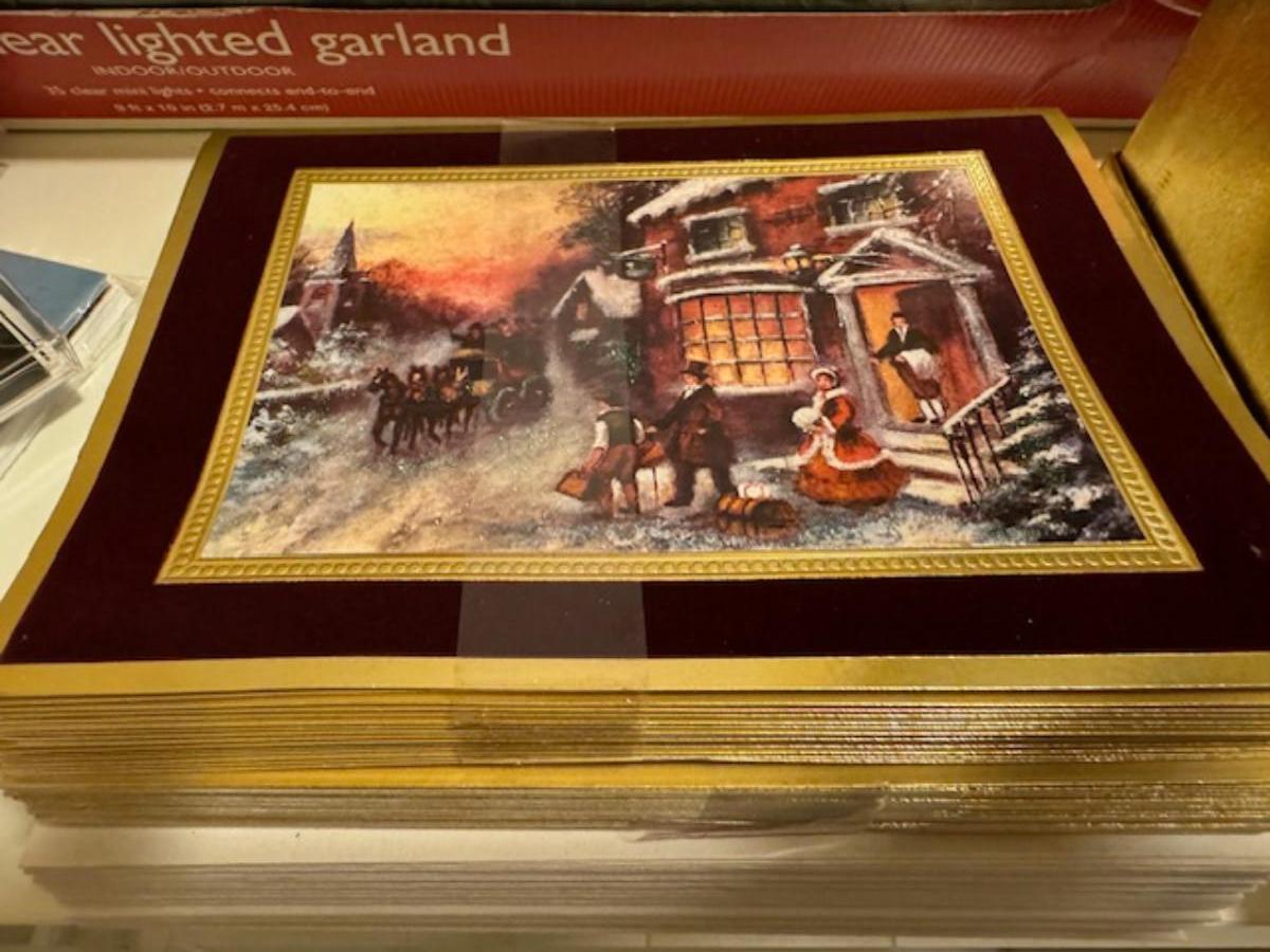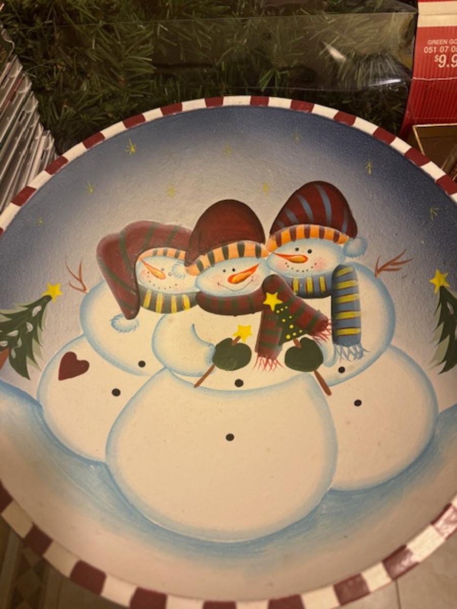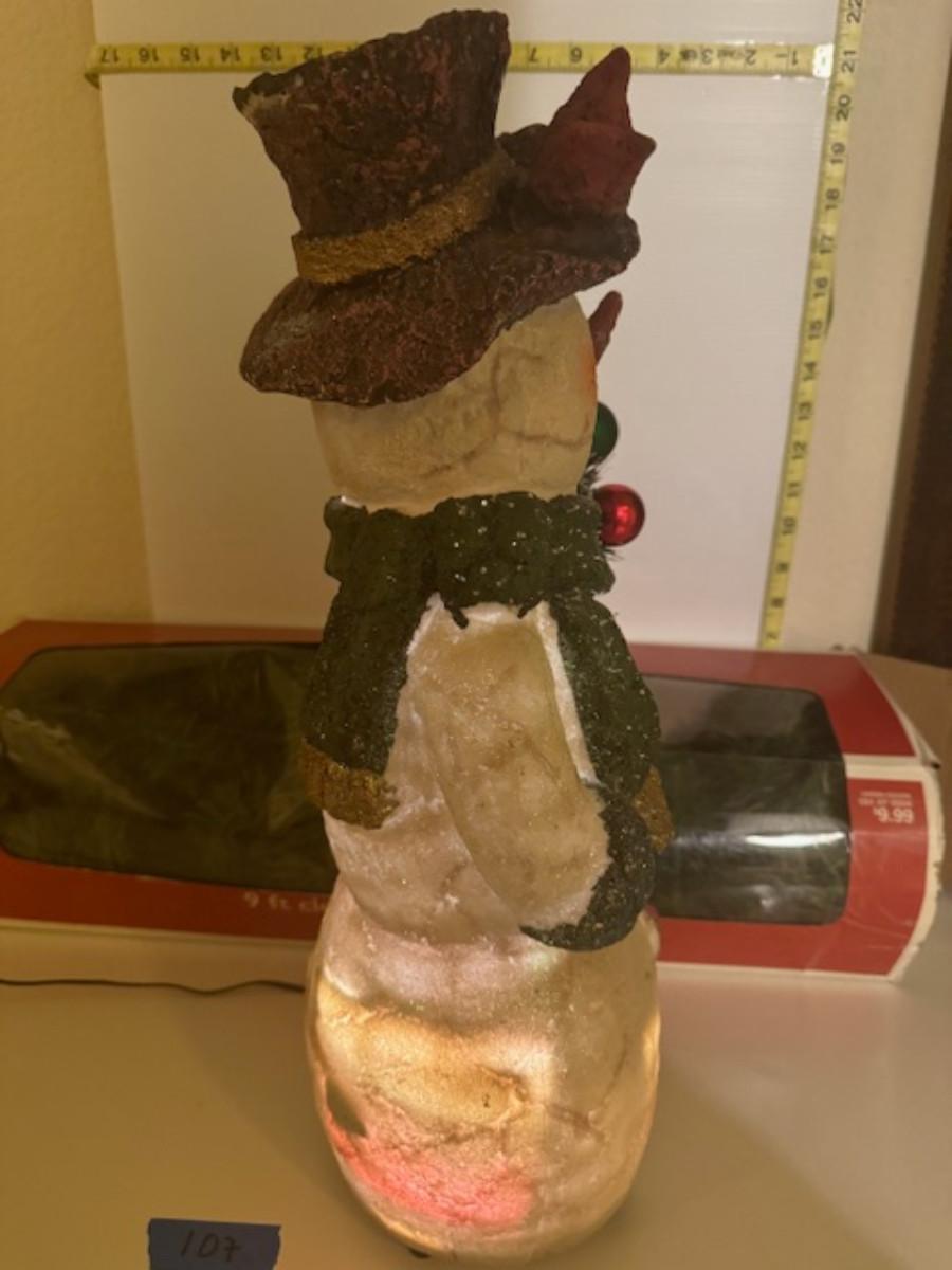 15 plus X-mas CDs, 2 X-mas dogs, 1 has small chip in tongue, snowman that has fiber optic 19", snowman wooden bowl, X-mas cards and gift card holder, 9ft clear lighted garland for indoor or outdoor.