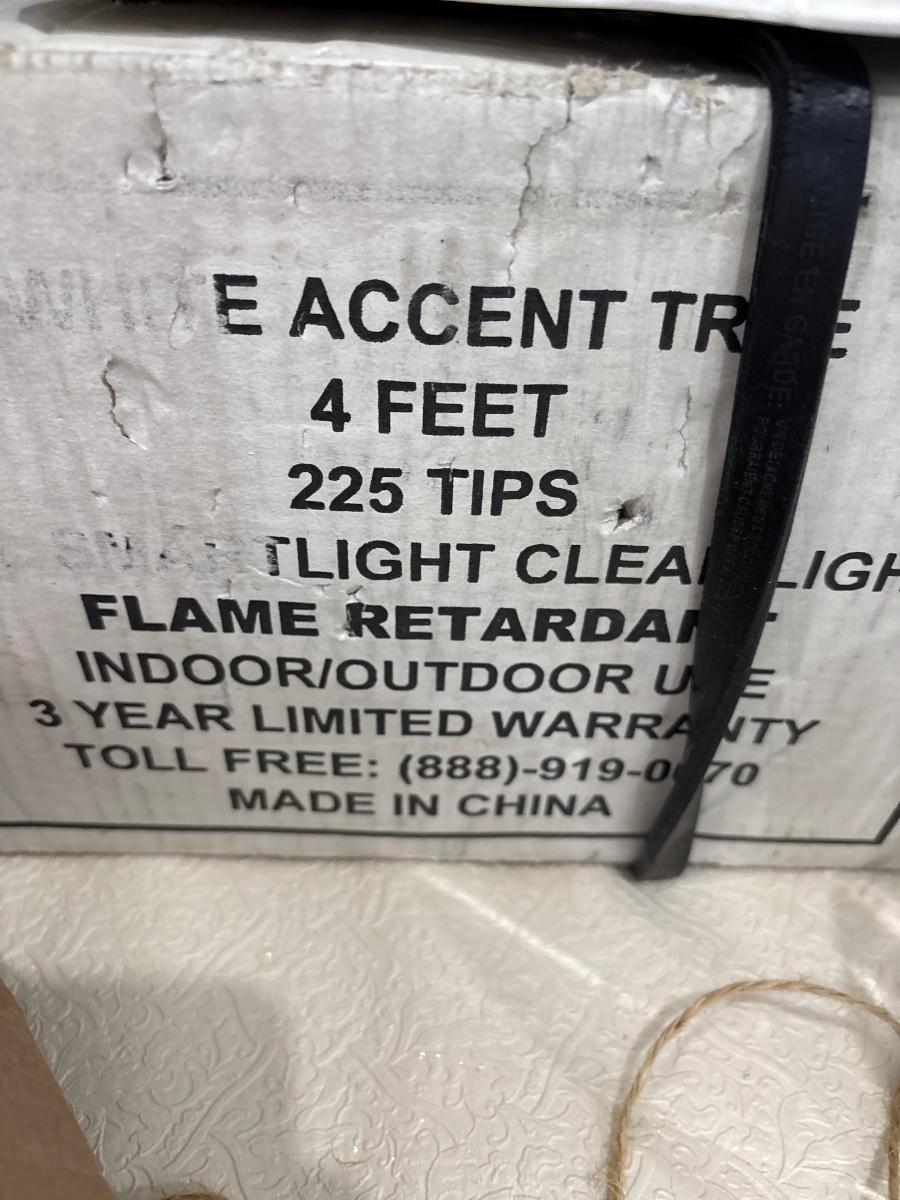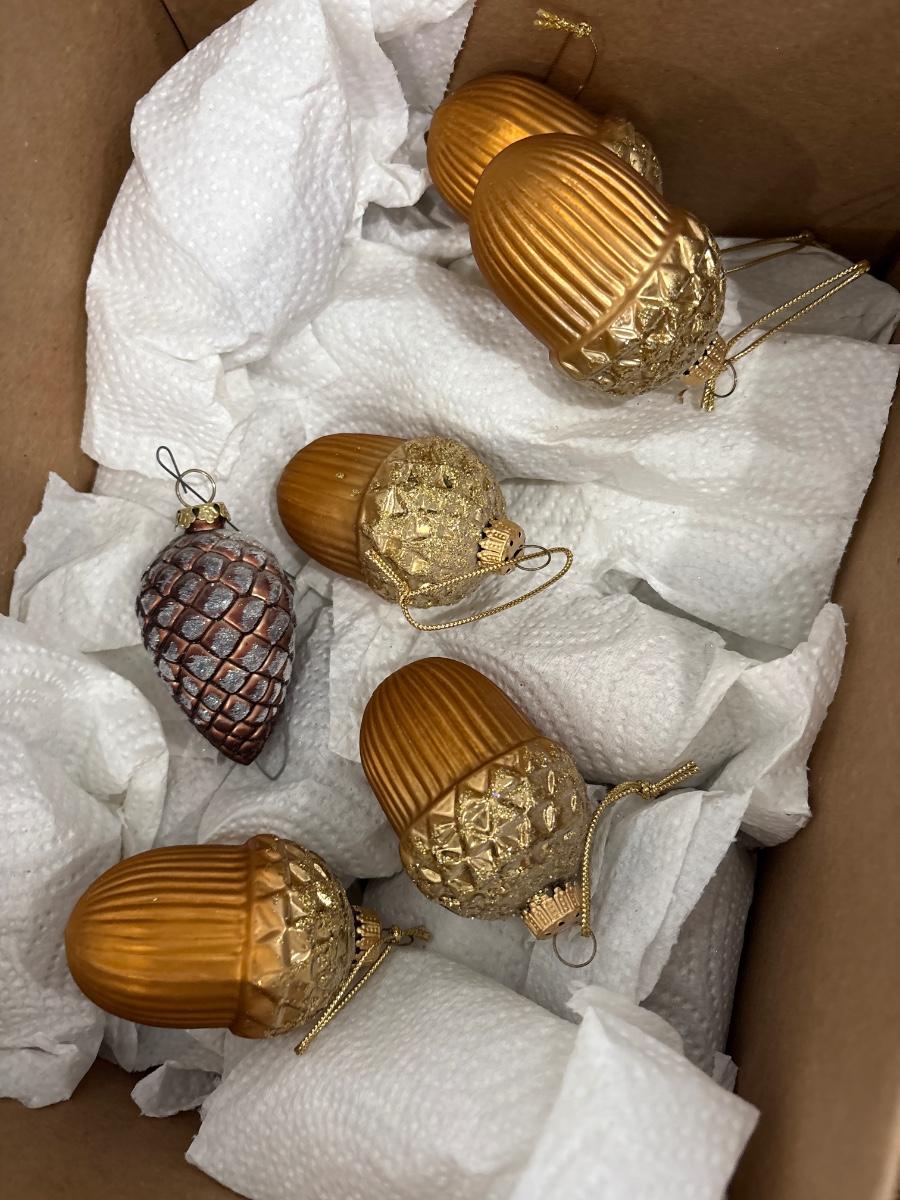 Includes box of acorn ornaments, 4 foot Christmas tree