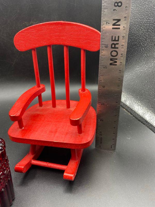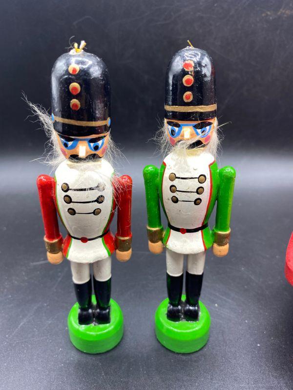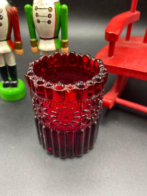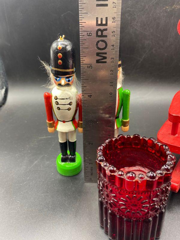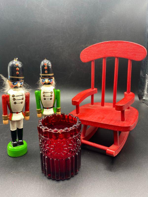 Small wood soldiers, and red candle and a red wood chair. Good condition, Great decor additions.
