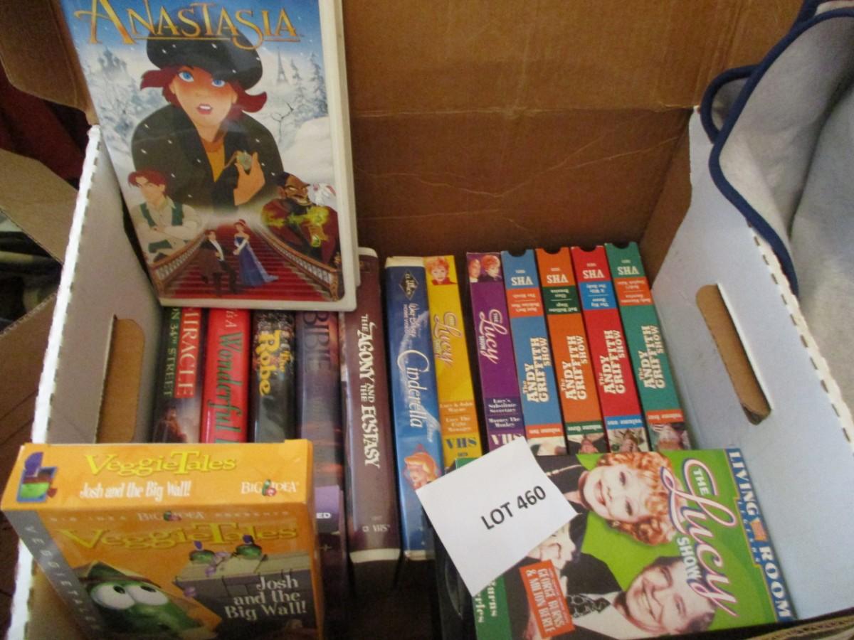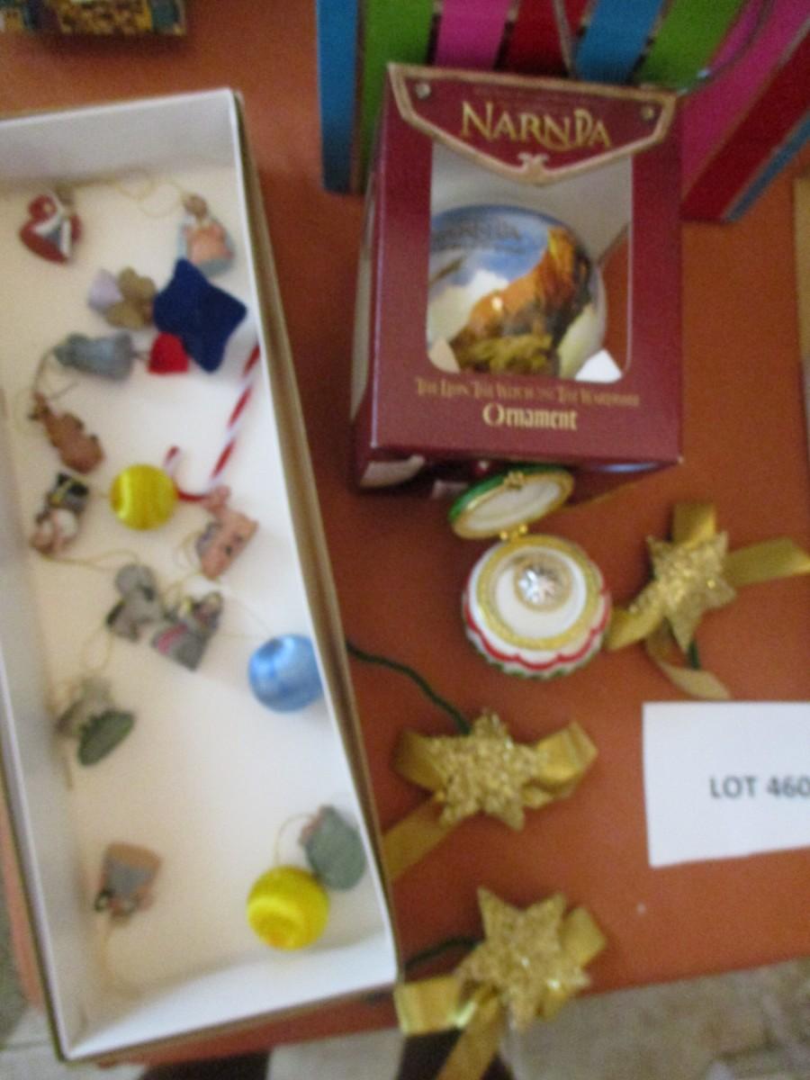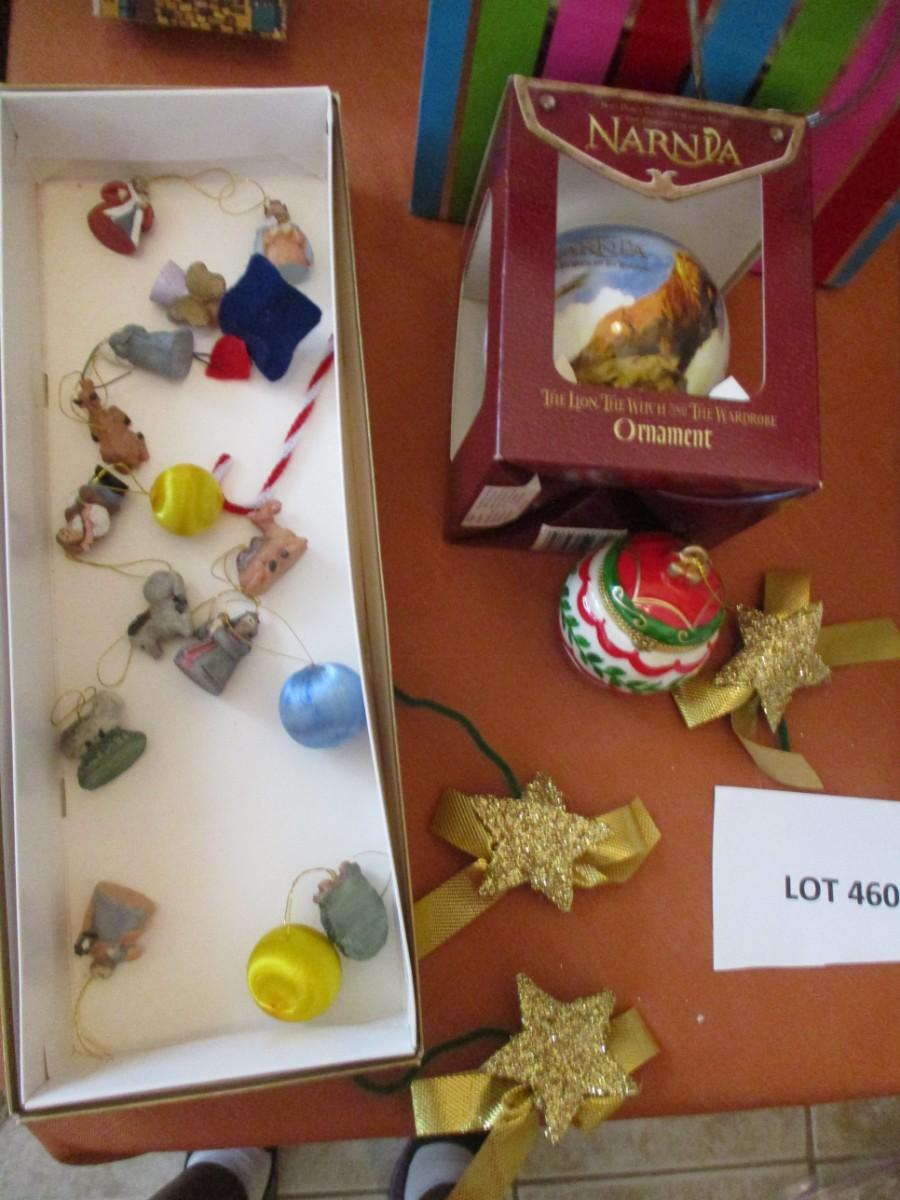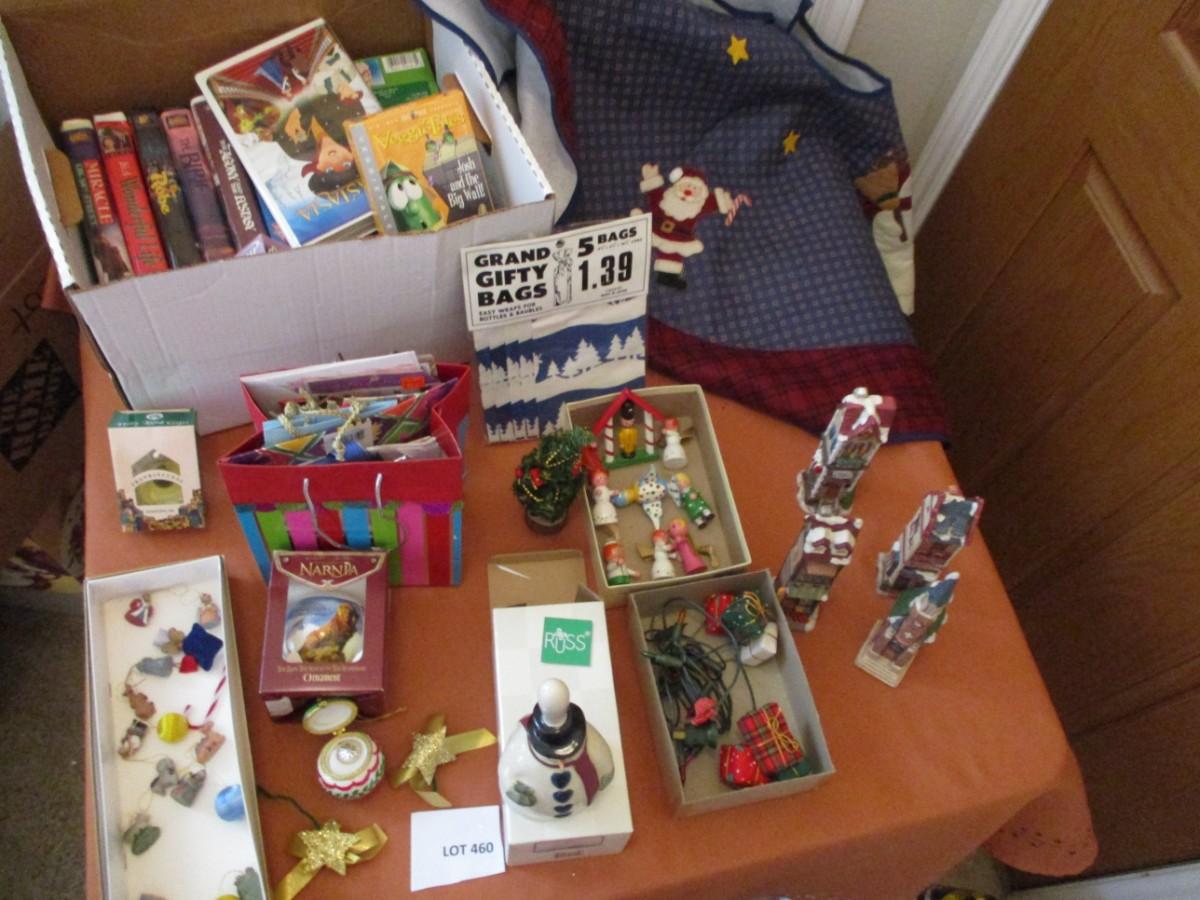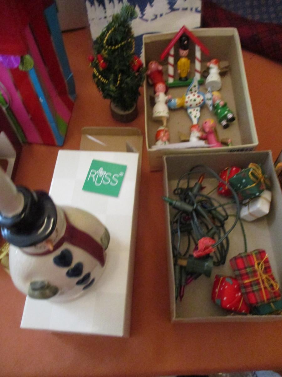 Tree Skirt, VHS tapes, ornaments, village house figurines