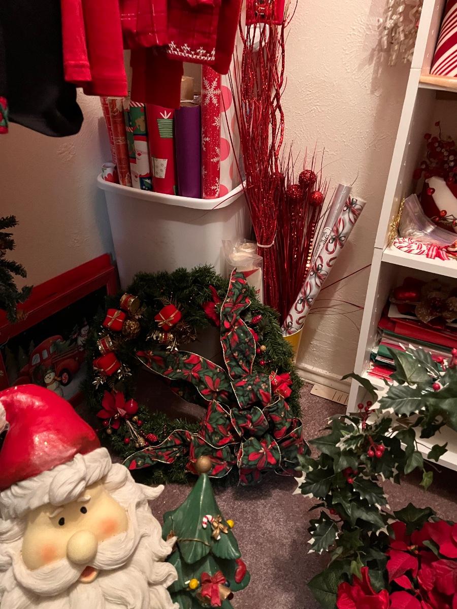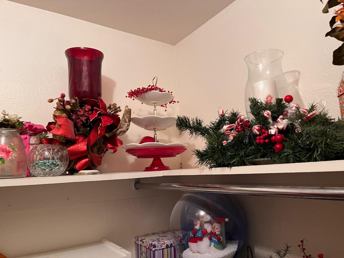 Mid century Modern furniture with lots of antiques and crystal pieces and Christmas Galore