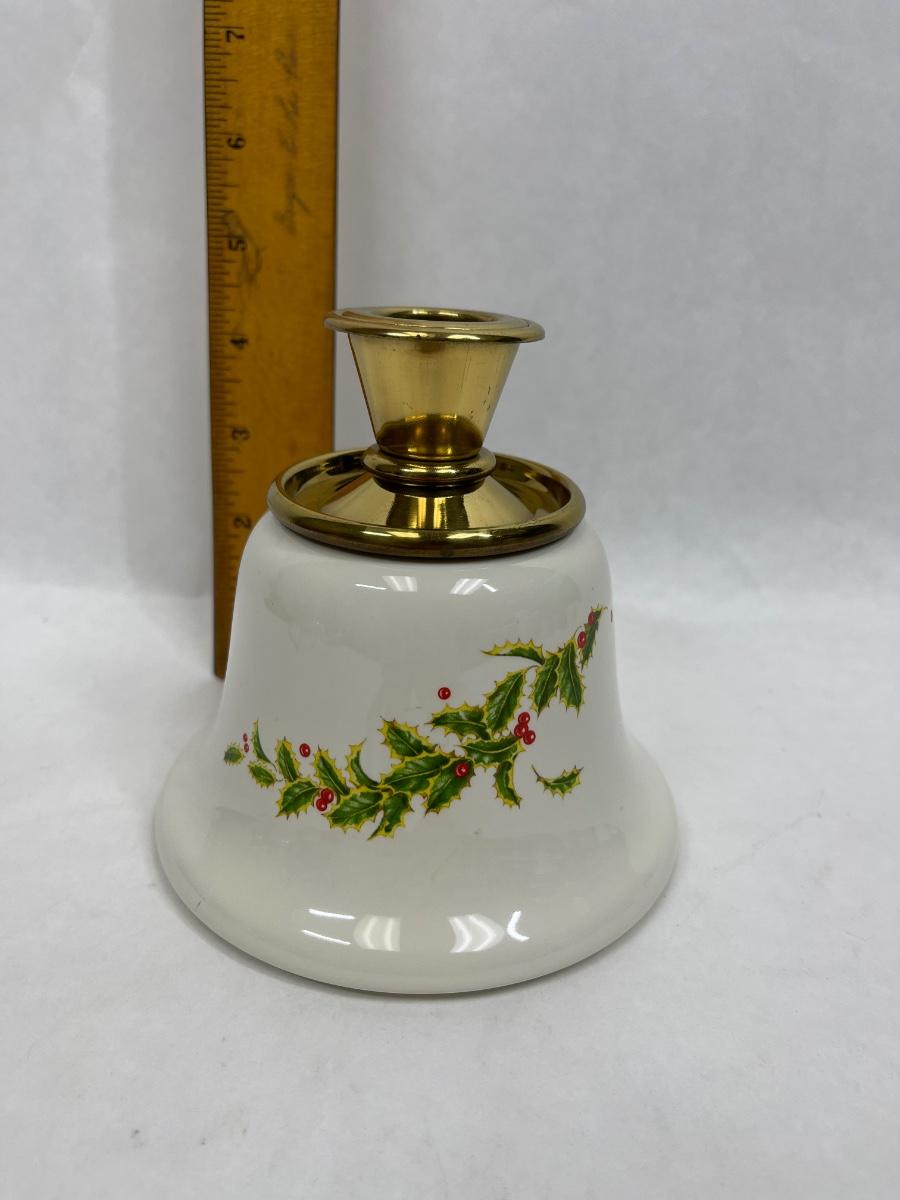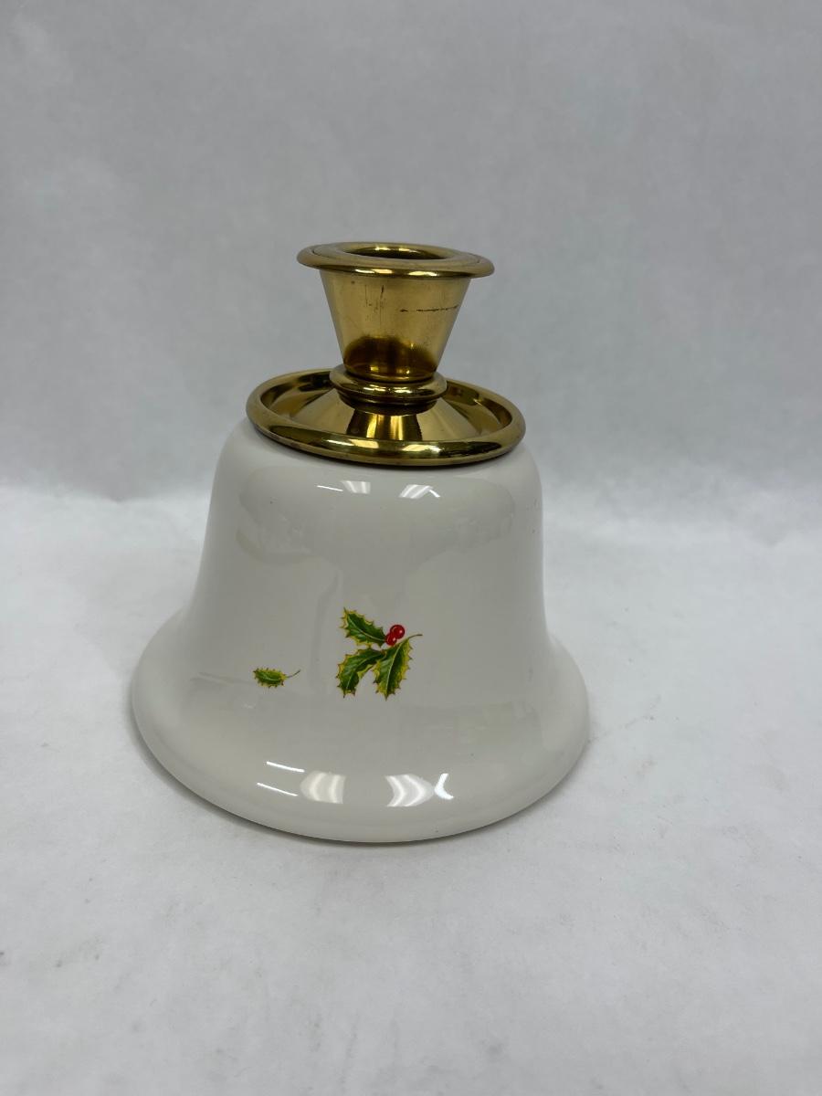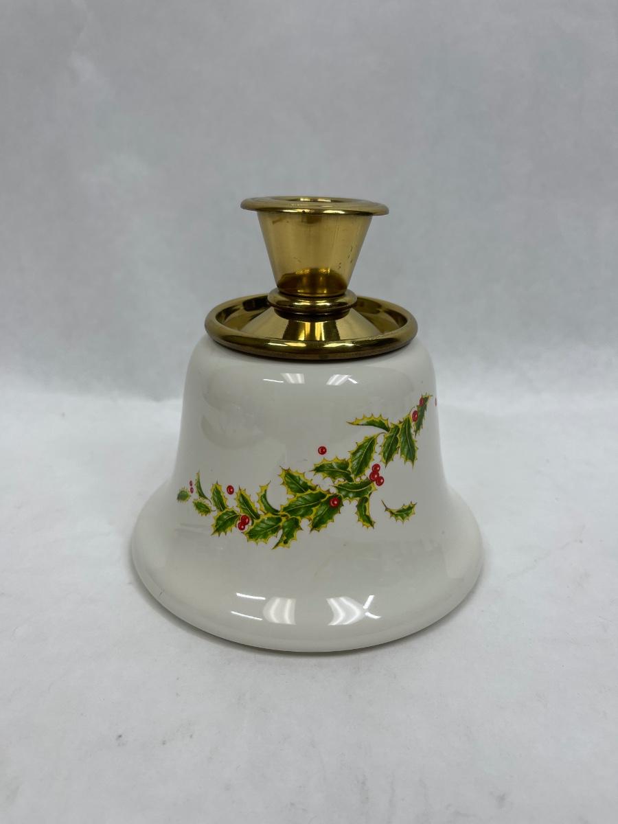 Teleflora Holly Christmas Decor Candlestick Holder brass & ceramic