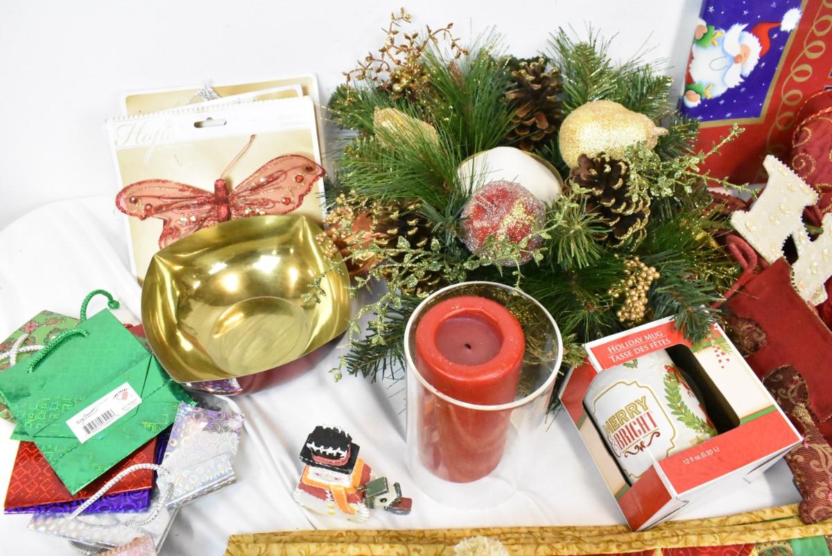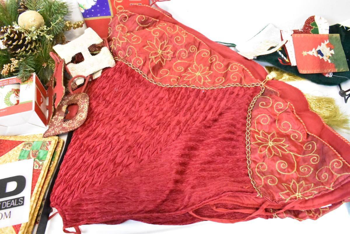 Christmas Decor: Holiday Mug, Reindeer, Placemats, Tree Skirt