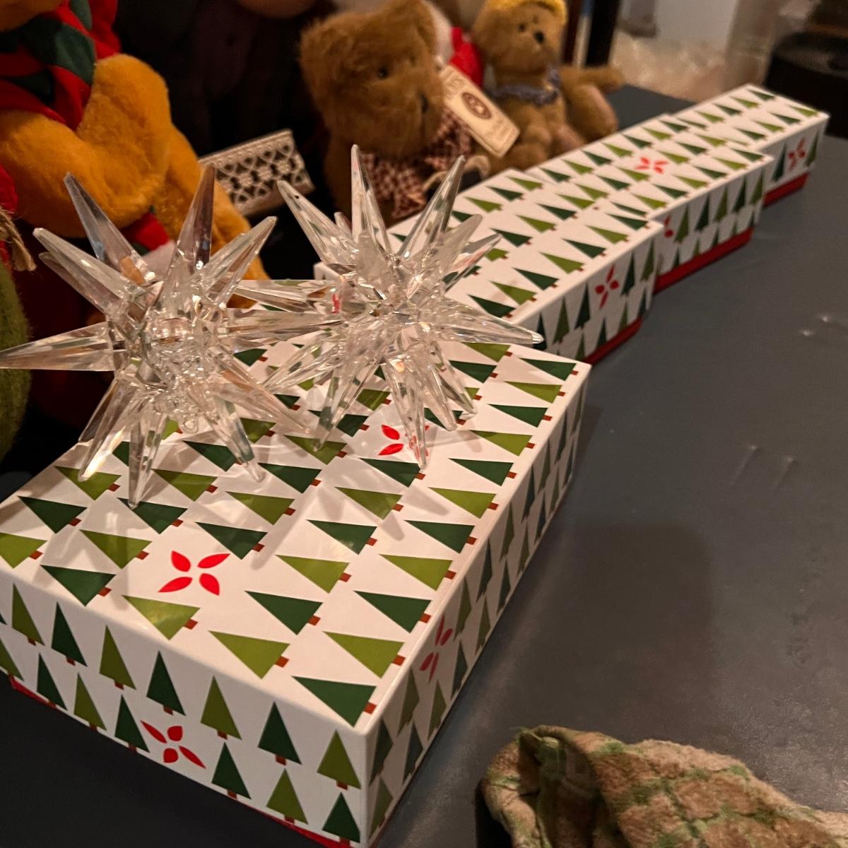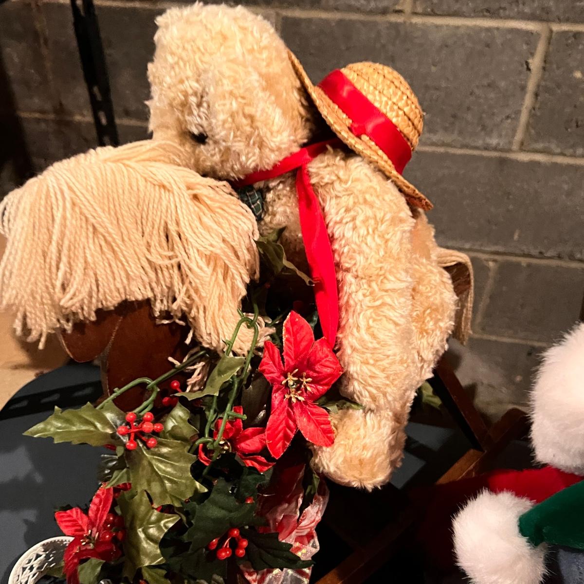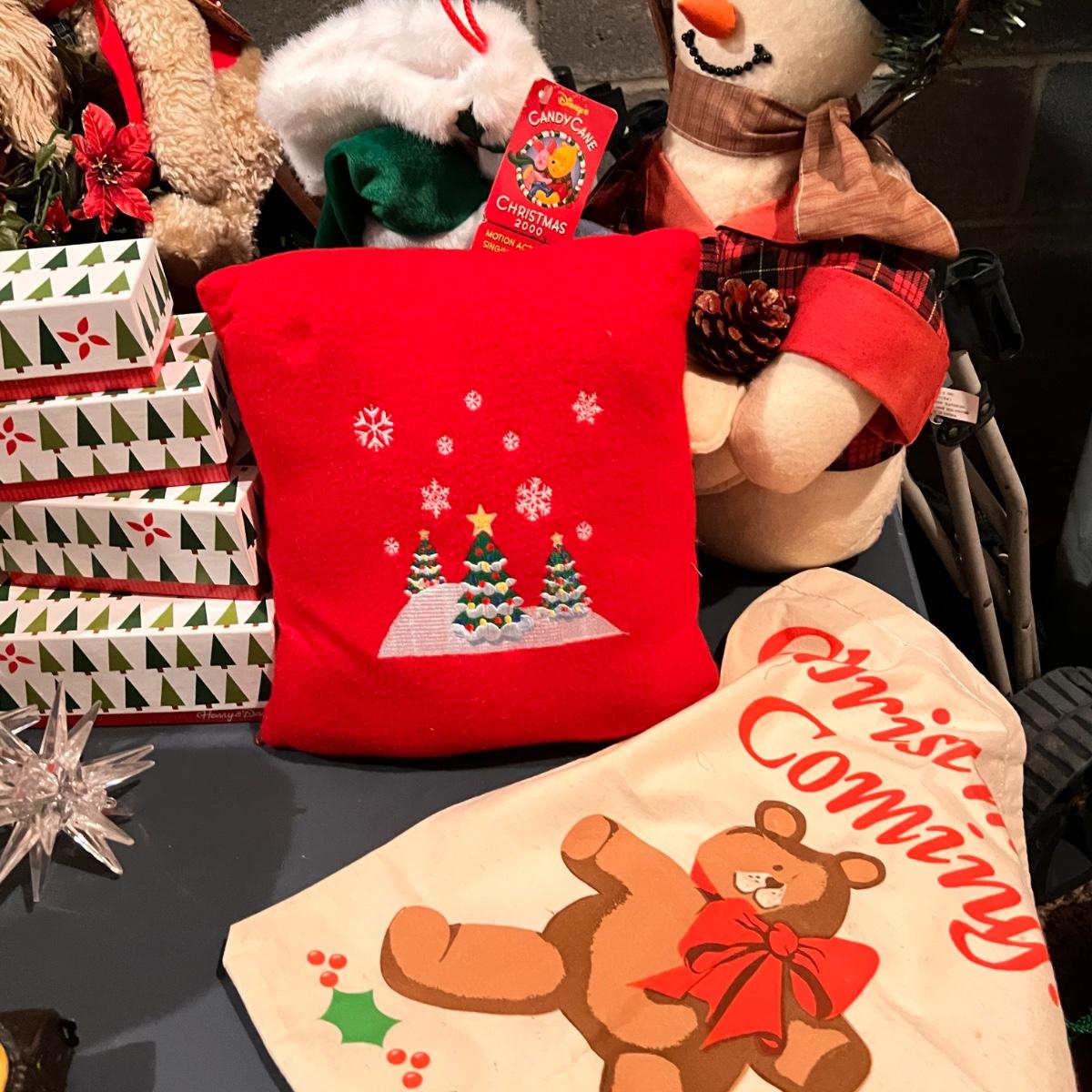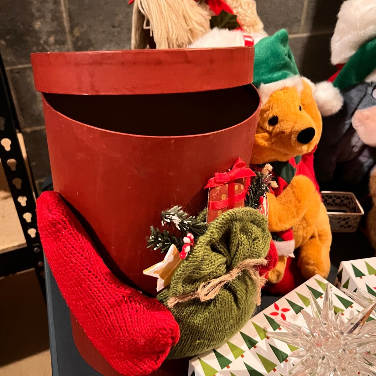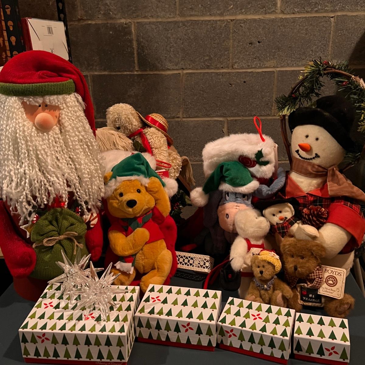3 small Boyd’s Bears, 2 motion activated Disney stockings new with tag, boxes, canisters, etc.