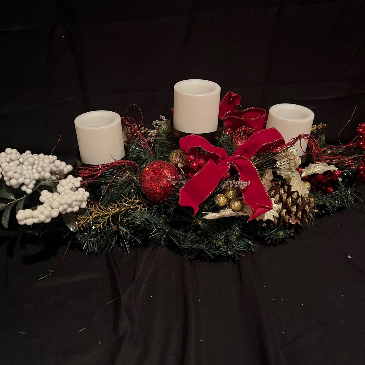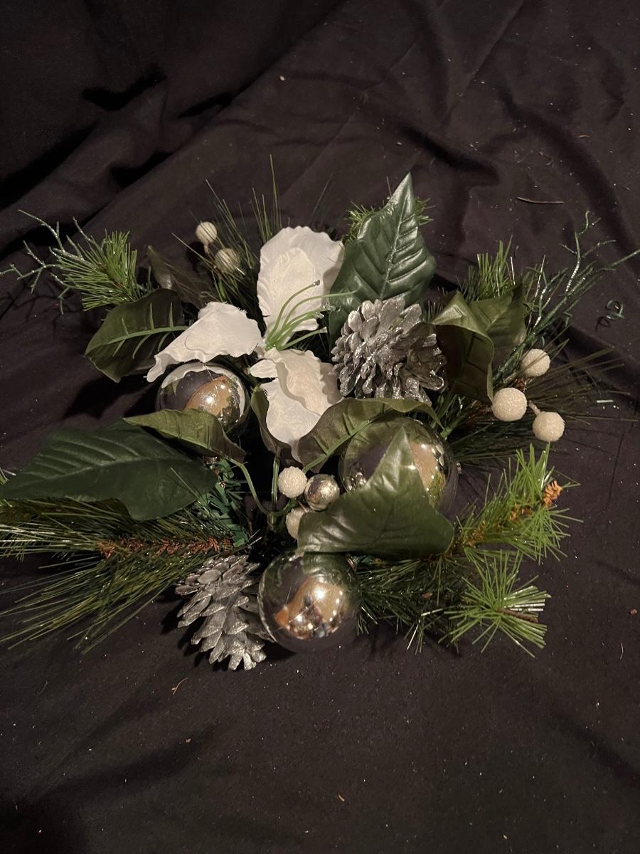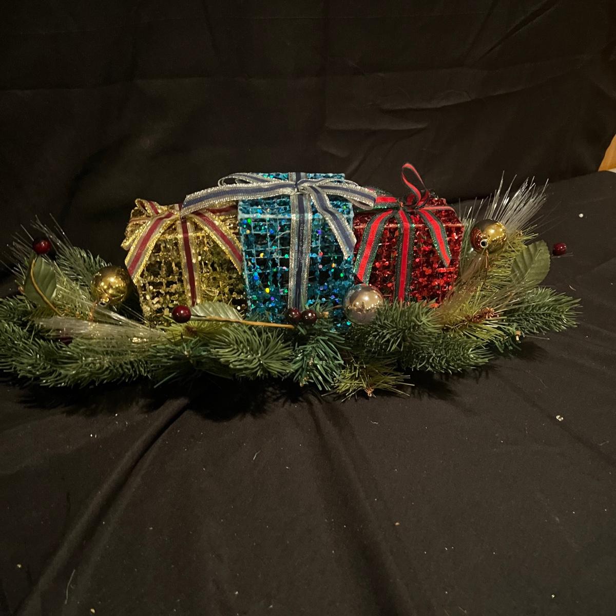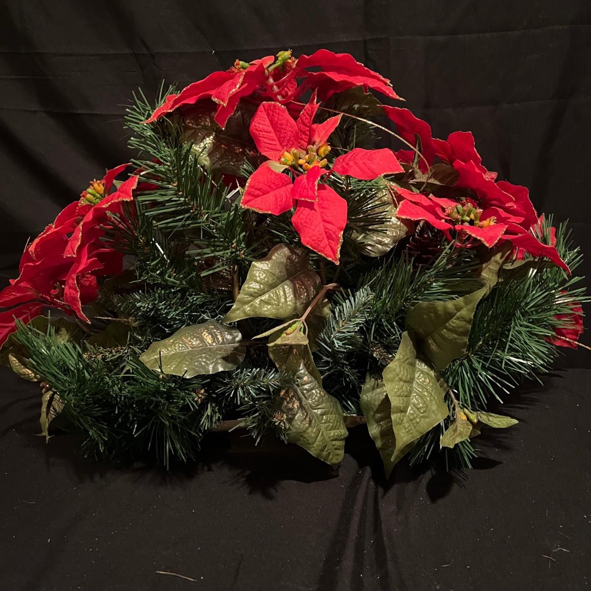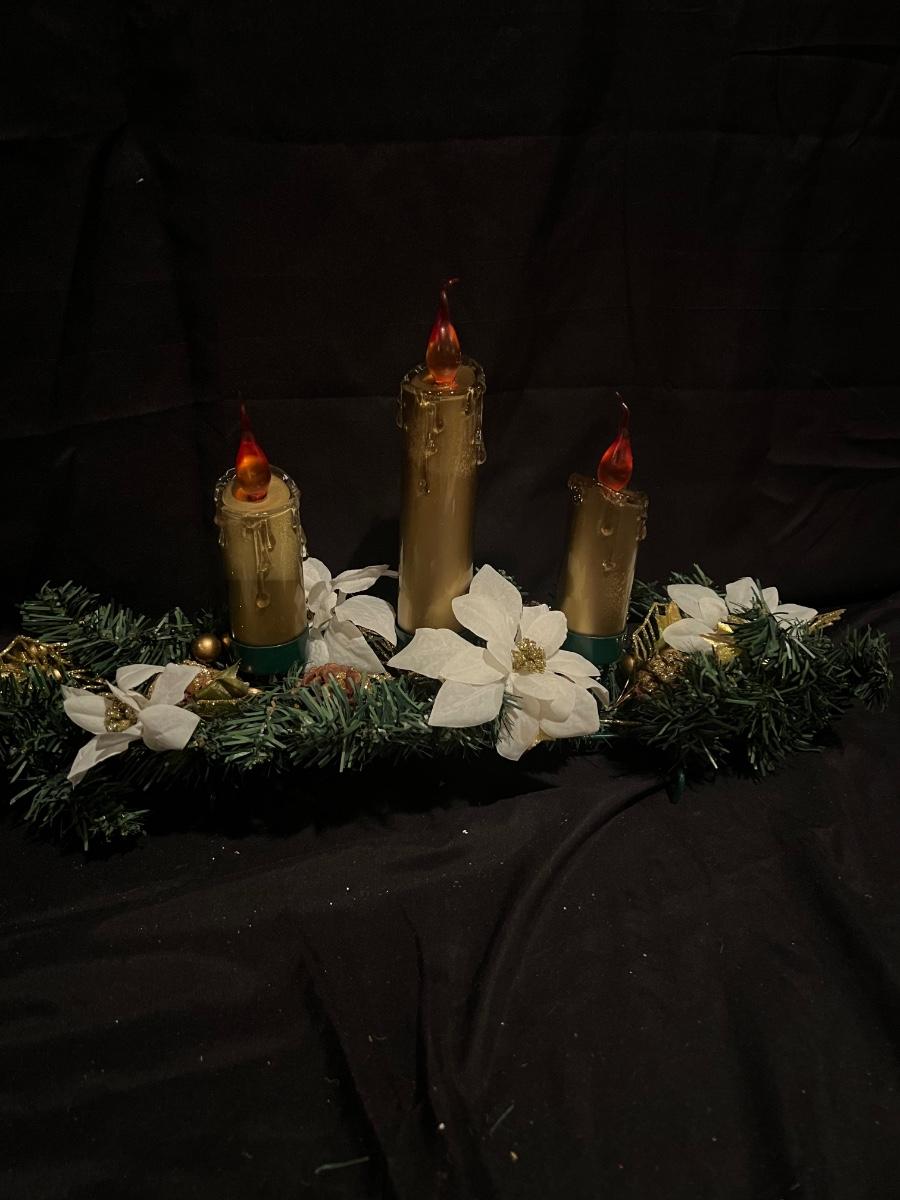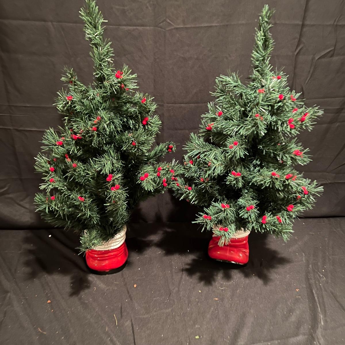 A large selection of indoor Christmas decor. Four plastic-like white doves each measure approximately 7.5” x 2” x 6”H. Four nutcracker soldiers on sticks measure approximately 2” X 2” X 12”H. two snowman on sticks measures approximately 2” X 2” X 12”H. for ceramic snowman figurines measuring approximately 2”D X 5”H. Two Christmas Bell doorknob ornaments and two holiday wreaths. The larger wreath measures approximately 13”D and the smaller one approximately 9”D. Four bell wreaths measure approximately 10”D each. two reindeer sculptures, The standing one measures approximately 9” X 3” X 12”H and the smaller one is 10” X 3.5L x 7.5”H. Three light up snowmen (two of the three powered on when plugged in, it would be easy assume batteries are out on smallest one) The largest is 7”D X 14”H and the smallest is 3”D X 5”H. Two plastic Christmas trees in Santa Claus boots measure approximately 13”D x 26”H. A large plastic poinsettia tabletop decoration measures approximately 23” X 12” X 17”H. One centerpiece in a basket measures approximately 14”D X 16”H. Six ornamental Christmas Ball and Holly Leif candle embellishments measure approximately 13”D each. A long wall sculpture with pinecones and bent sticks and greenery measures approximately 10” X 4” X 28”H. also included is a Willow Tree, angel of Christmas spirit sculpture and a Rhodes Studio “Village Lights” sculpture that turns on when plugged in. Appearing new-in-box “JOY” yard letters. A large centerpiece with three battery operated lights (unable to test lights, likely batteries are out) measures 25” X 10” X 11”H. A Christmas box centerpiece measures approximately 17 “X 7”X 7”H. it also has the ability to light up, but was unable to test it as battery might be out. A three-candlelight centerpiece, also unable to verify electric connection and a hanging poinsettia basket. Ten small wreathes approximately 6”D.