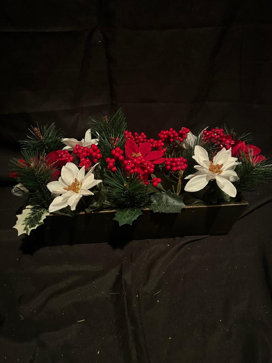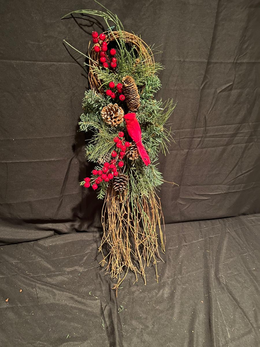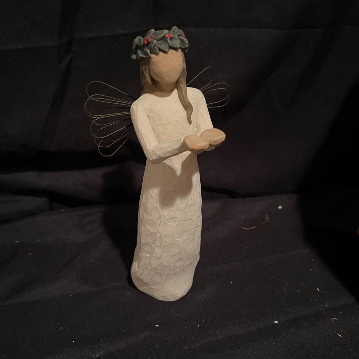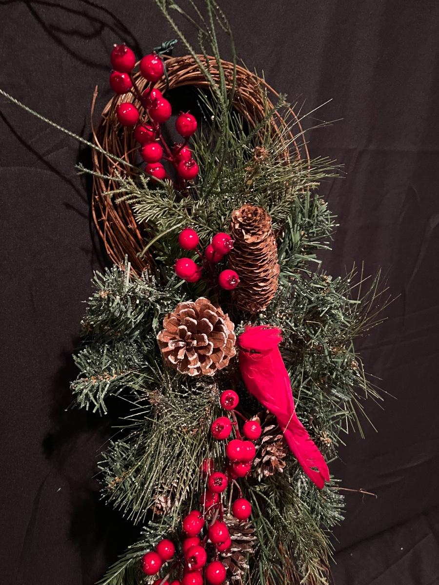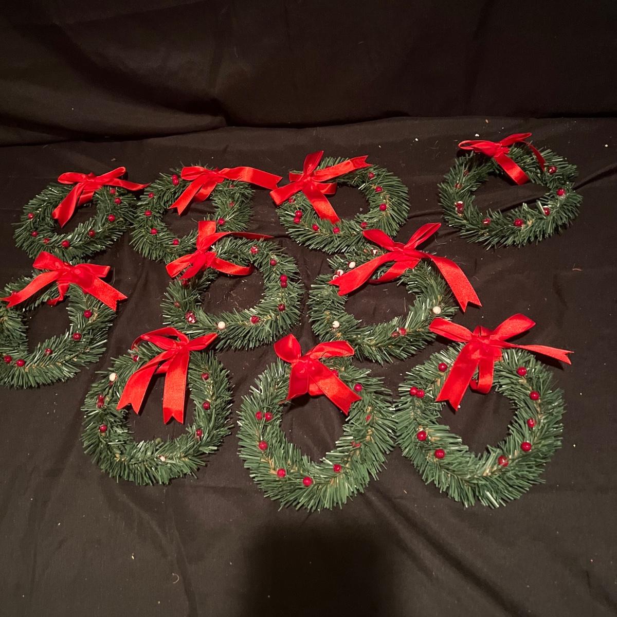 A large selection of indoor Christmas decor. Four plastic-like white doves each measure approximately 7.5” x 2” x 6”H. Four nutcracker soldiers on sticks measure approximately 2” X 2” X 12”H. two snowman on sticks measures approximately 2” X 2” X 12”H. for ceramic snowman figurines measuring approximately 2”D X 5”H. Two Christmas Bell doorknob ornaments and two holiday wreaths. The larger wreath measures approximately 13”D and the smaller one approximately 9”D. Four bell wreaths measure approximately 10”D each. two reindeer sculptures, The standing one measures approximately 9” X 3” X 12”H and the smaller one is 10” X 3.5L x 7.5”H. Three light up snowmen (two of the three powered on when plugged in, it would be easy assume batteries are out on smallest one) The largest is 7”D X 14”H and the smallest is 3”D X 5”H. Two plastic Christmas trees in Santa Claus boots measure approximately 13”D x 26”H. A large plastic poinsettia tabletop decoration measures approximately 23” X 12” X 17”H. One centerpiece in a basket measures approximately 14”D X 16”H. Six ornamental Christmas Ball and Holly Leif candle embellishments measure approximately 13”D each. A long wall sculpture with pinecones and bent sticks and greenery measures approximately 10” X 4” X 28”H. also included is a Willow Tree, angel of Christmas spirit sculpture and a Rhodes Studio “Village Lights” sculpture that turns on when plugged in. Appearing new-in-box “JOY” yard letters. A large centerpiece with three battery operated lights (unable to test lights, likely batteries are out) measures 25” X 10” X 11”H. A Christmas box centerpiece measures approximately 17 “X 7”X 7”H. it also has the ability to light up, but was unable to test it as battery might be out. A three-candlelight centerpiece, also unable to verify electric connection and a hanging poinsettia basket. Ten small wreathes approximately 6”D.