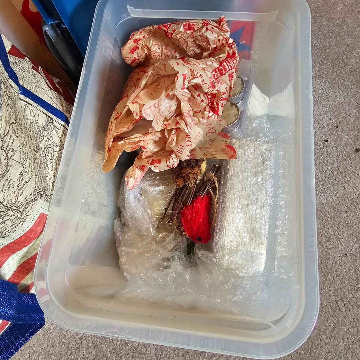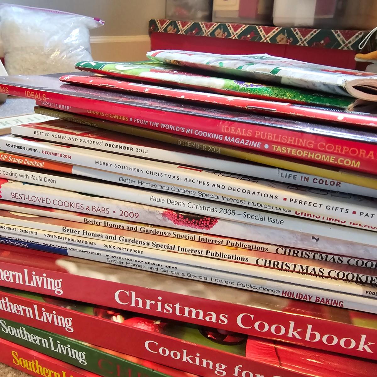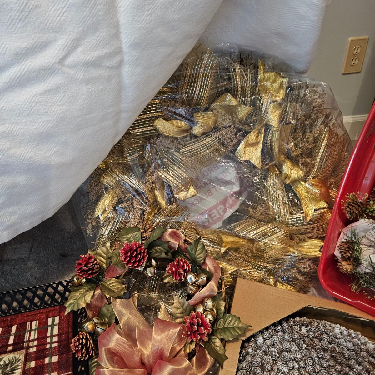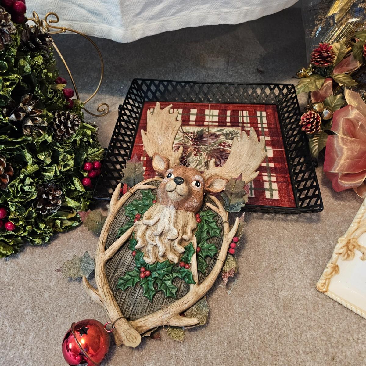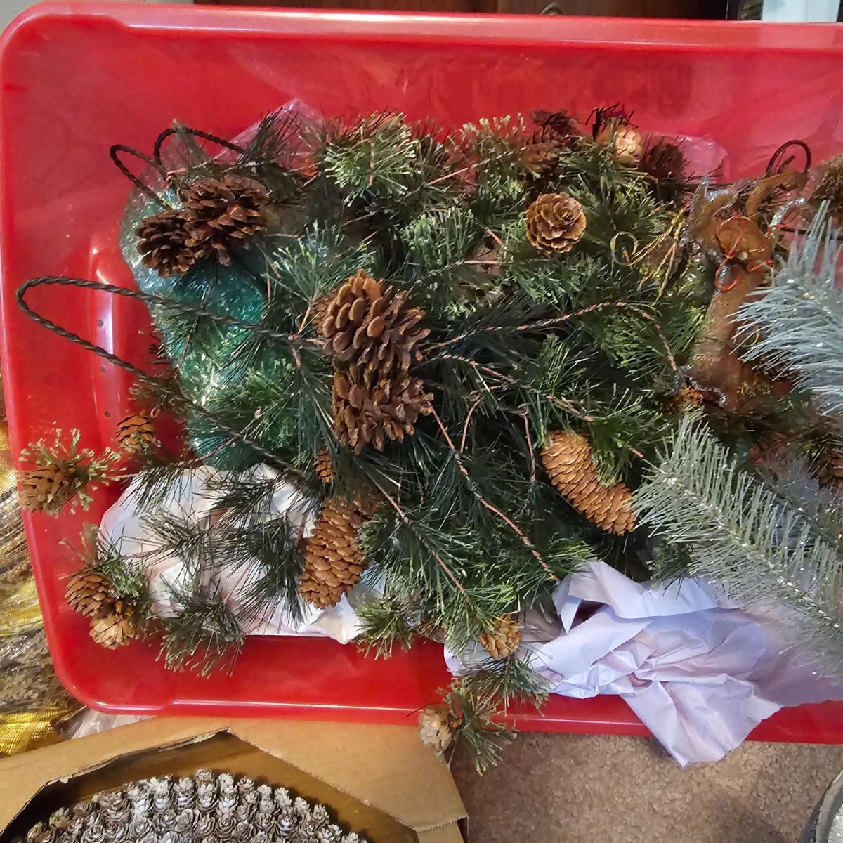 Christmas decorations for all around the house. Table sitters, candles, garland, snow globes, trees, wreaths, more. Tallest tree is 40"H, gold wreath is 22"D, tiny pine cone wreath is 13"D. Southern Living cookbooks, Betty Crocker magazines, etc. Fitz & Floyd decorated serving platter. Lighted plug in snowman and more. Too many items to show all. Unwrapped items will be a fun surprise for you! All tubs and boxes included, see photos for details. All electric items powered on when plugged in. Local pickup only.