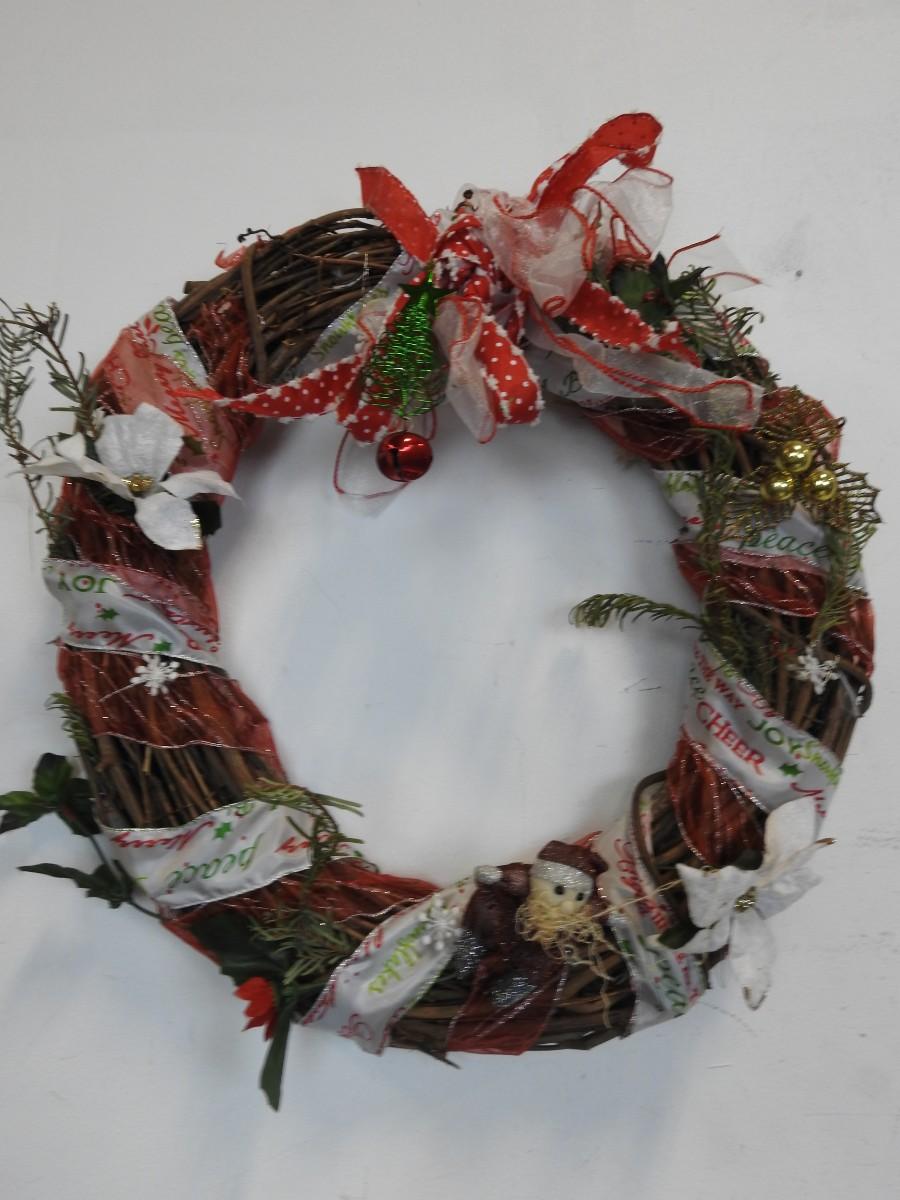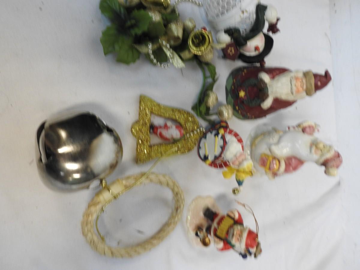 Christmas Decor w/Tote, Wicker Star Basket, Wreath, Snowman, Santas, Ornaments,