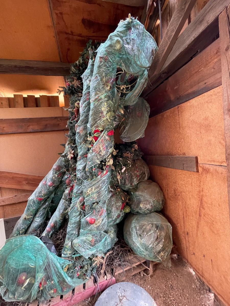 These are approx. 8' tall and decorated with ornaments.