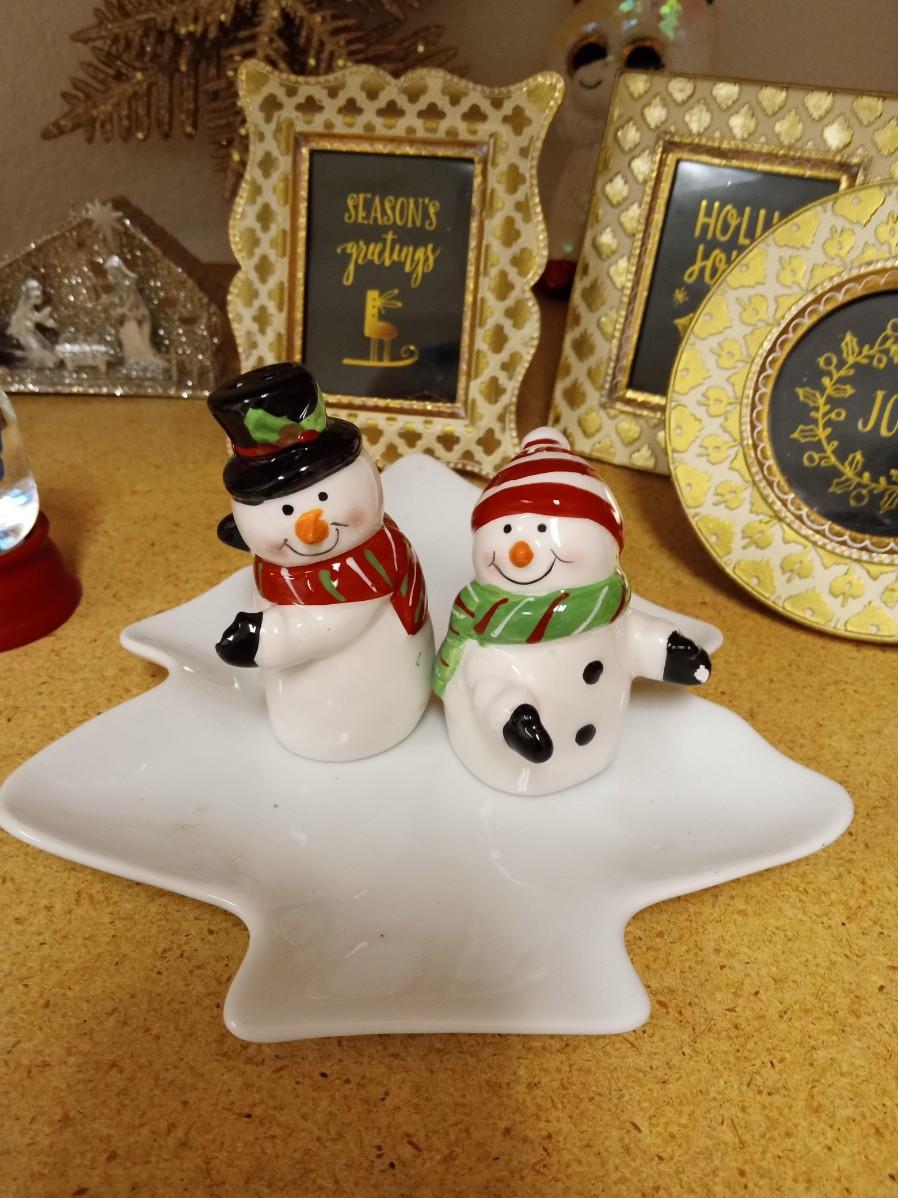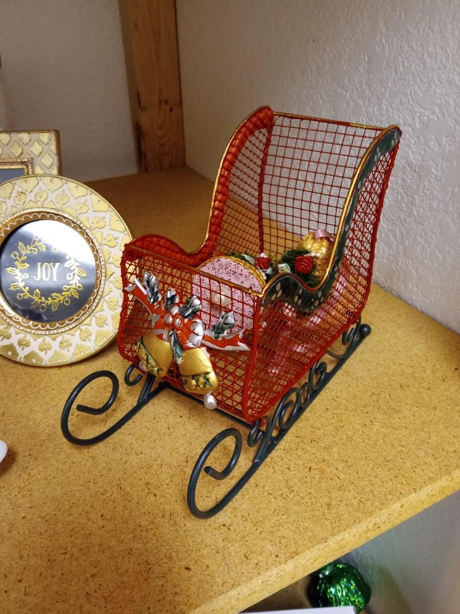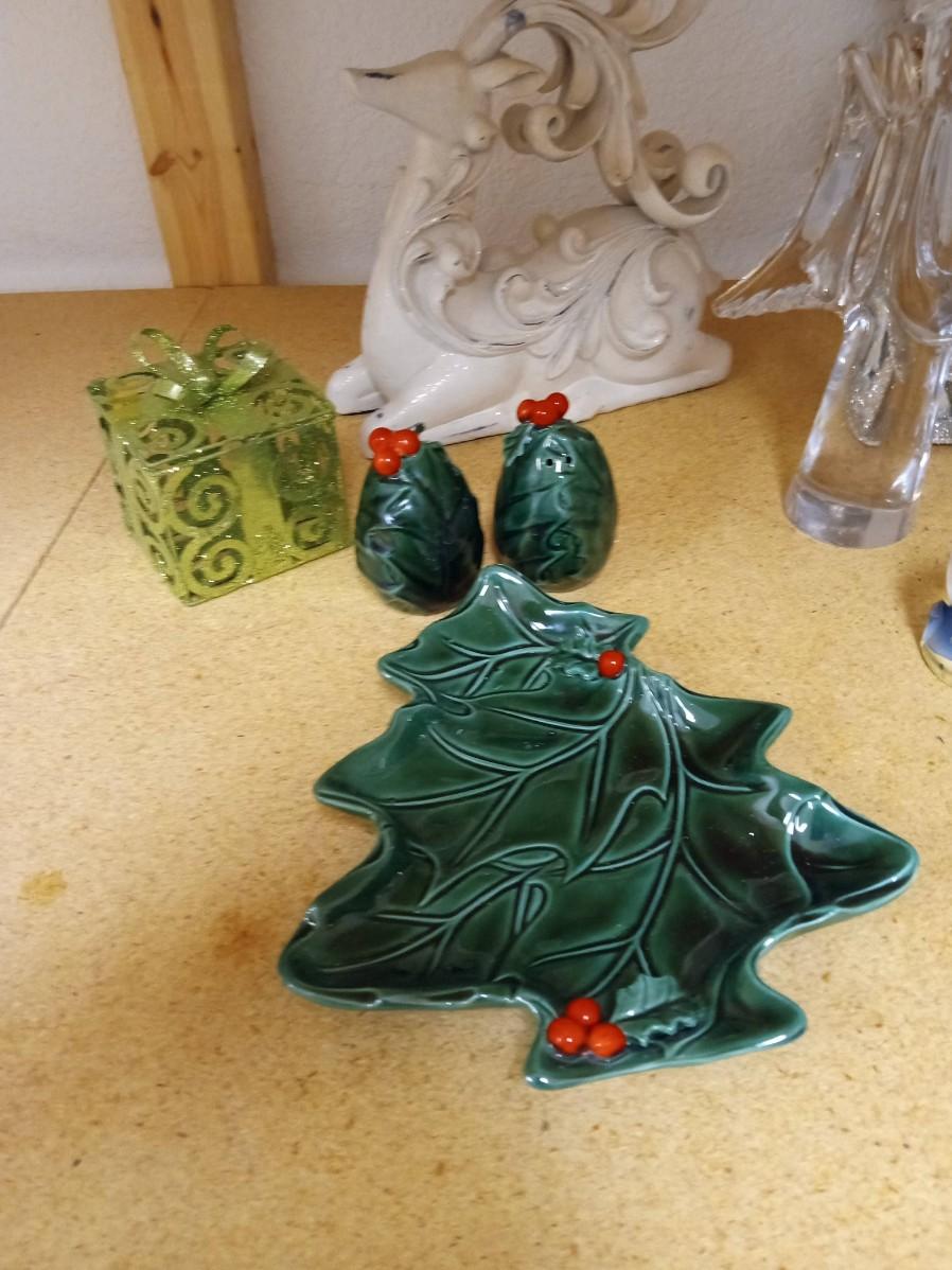 CHRISTMAS DECORATIONS AND 3 SMALL FRAMES