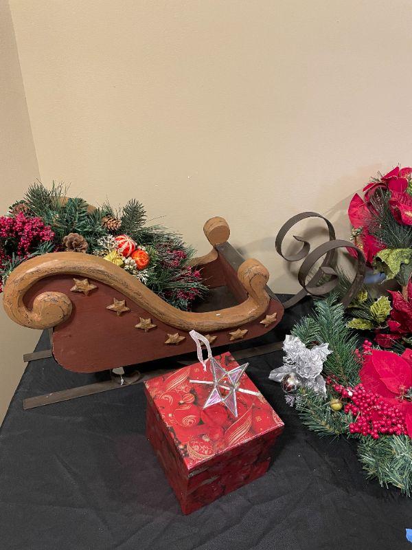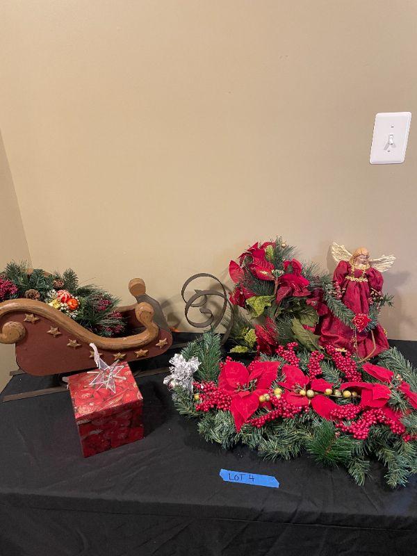 Angel Tree Topper, Christmas Tree Chipping Decor, Rustic Wood Sled and a new Metal/Glass Star Ornament w/Box
