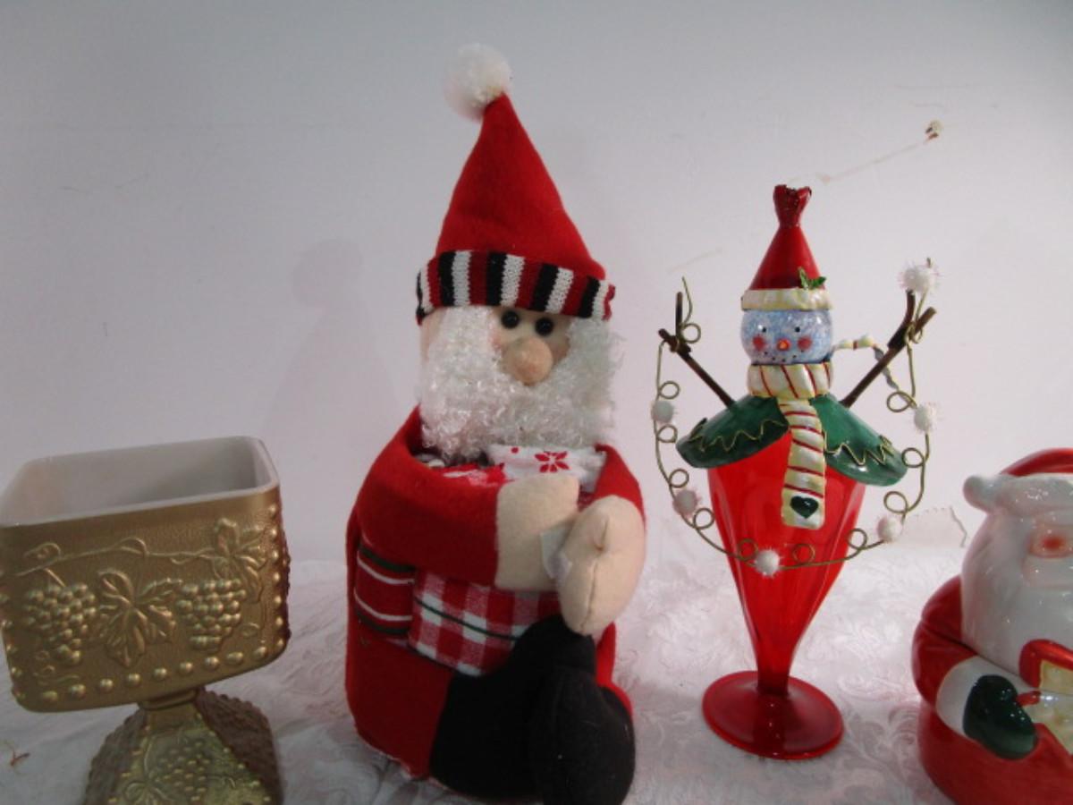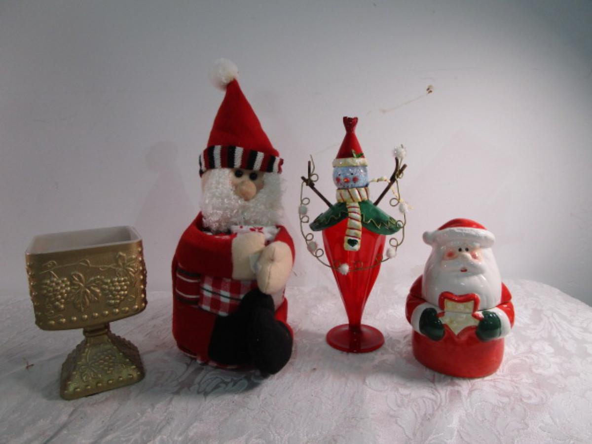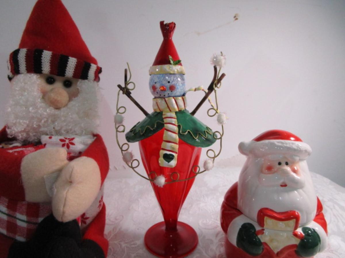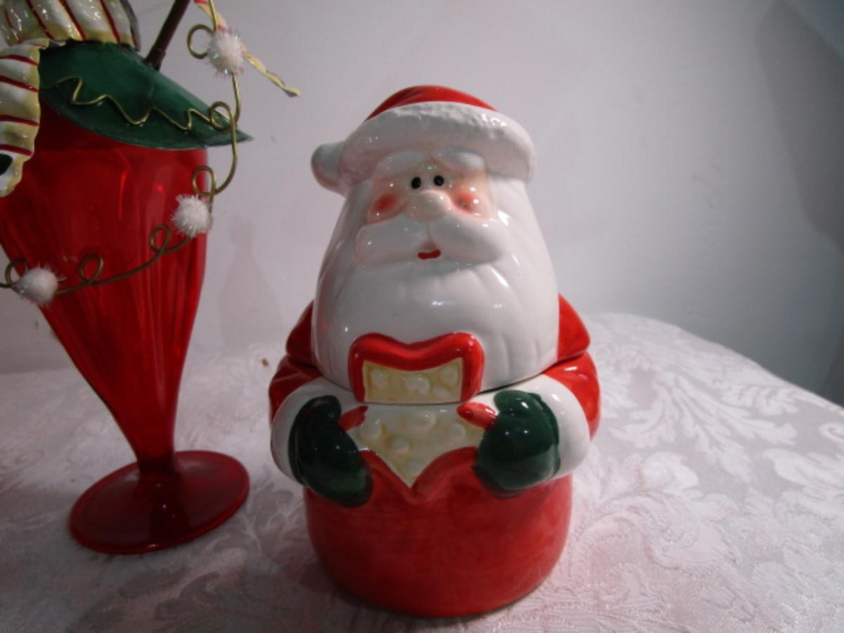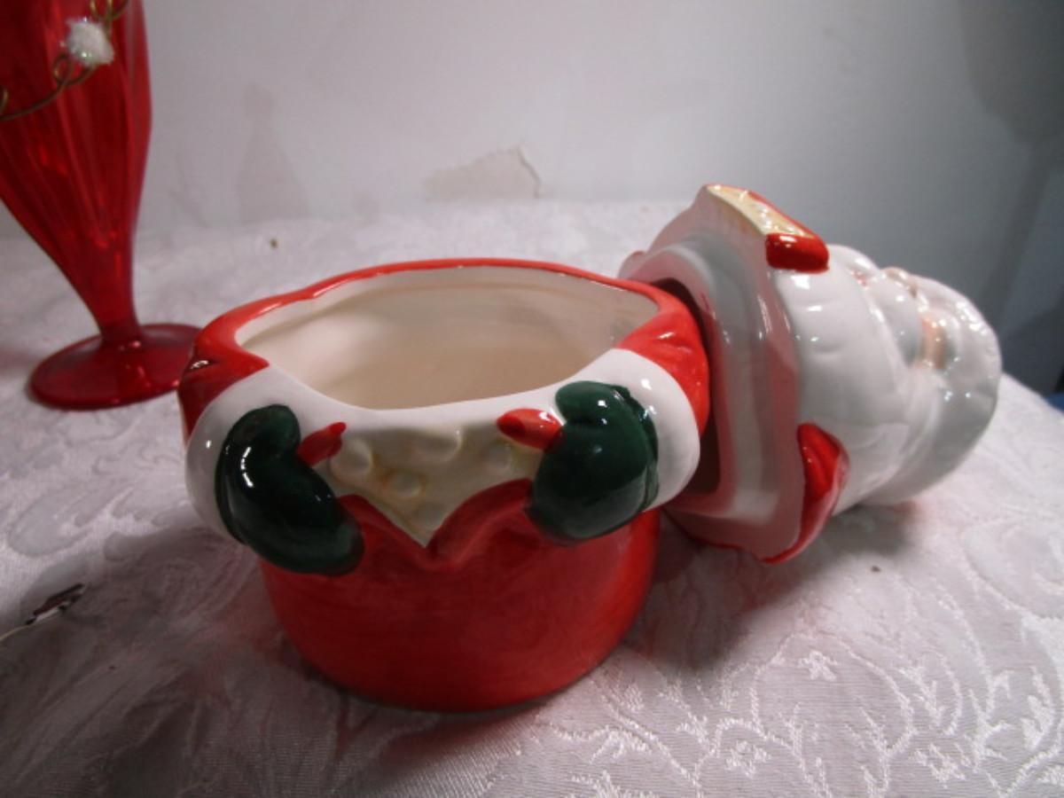 Ceramic Santa Jar is 6", Snowman is 10", Dish ix 5-3/4" tall, See pictures