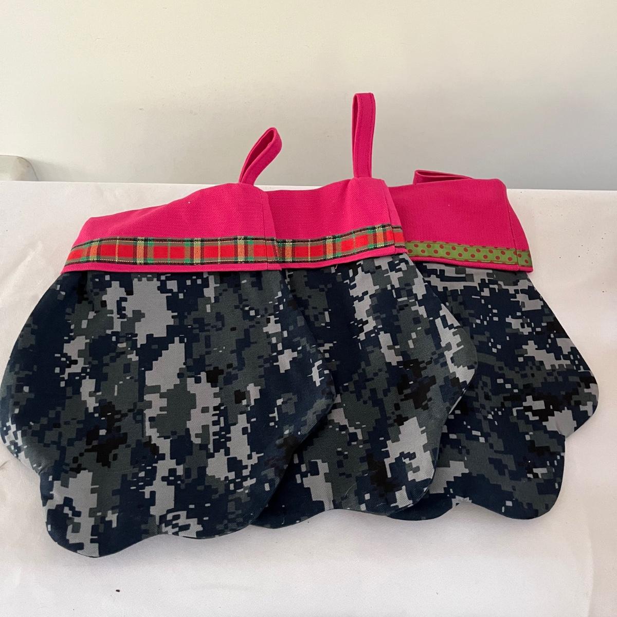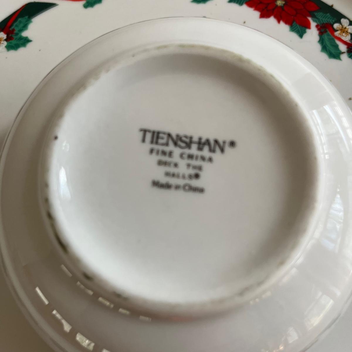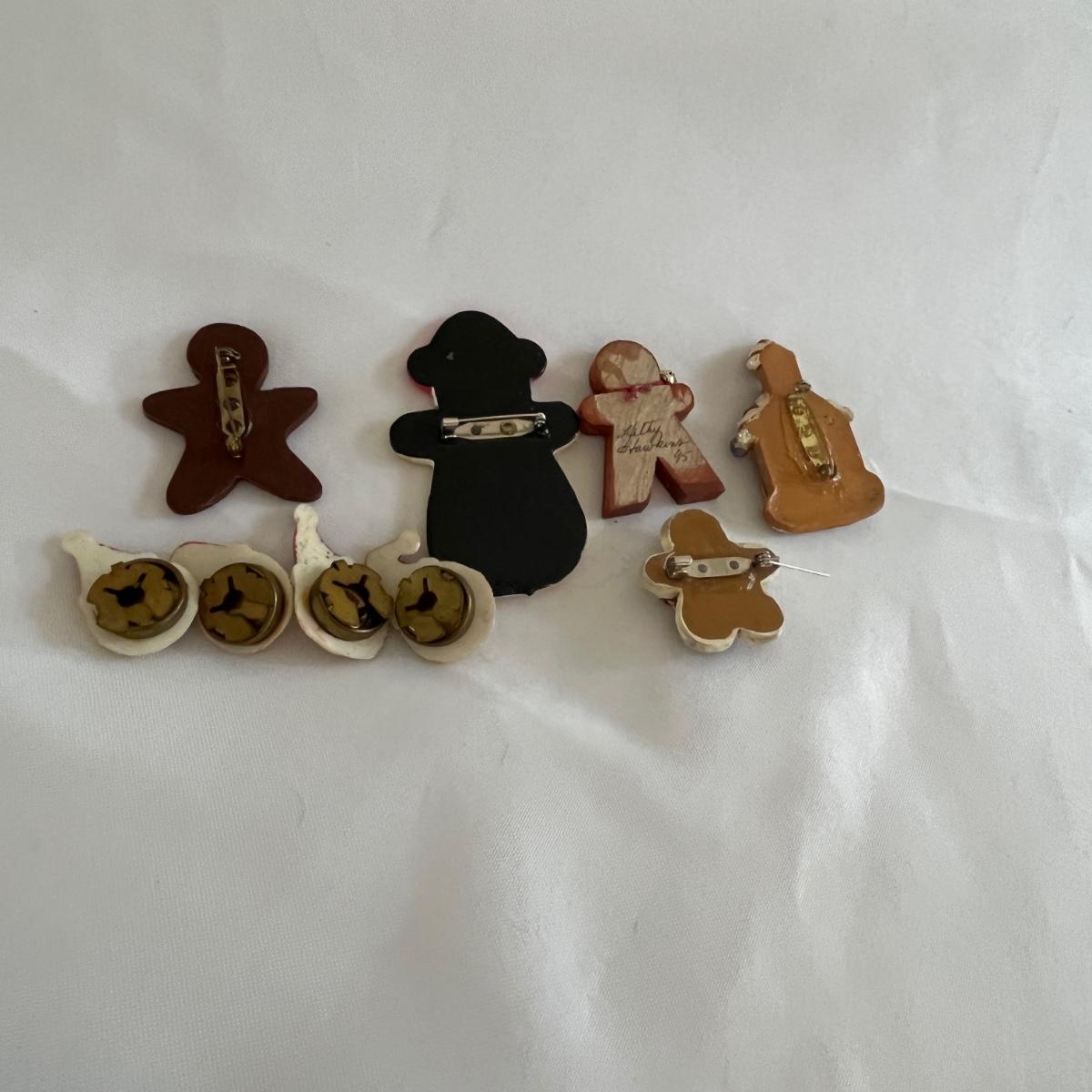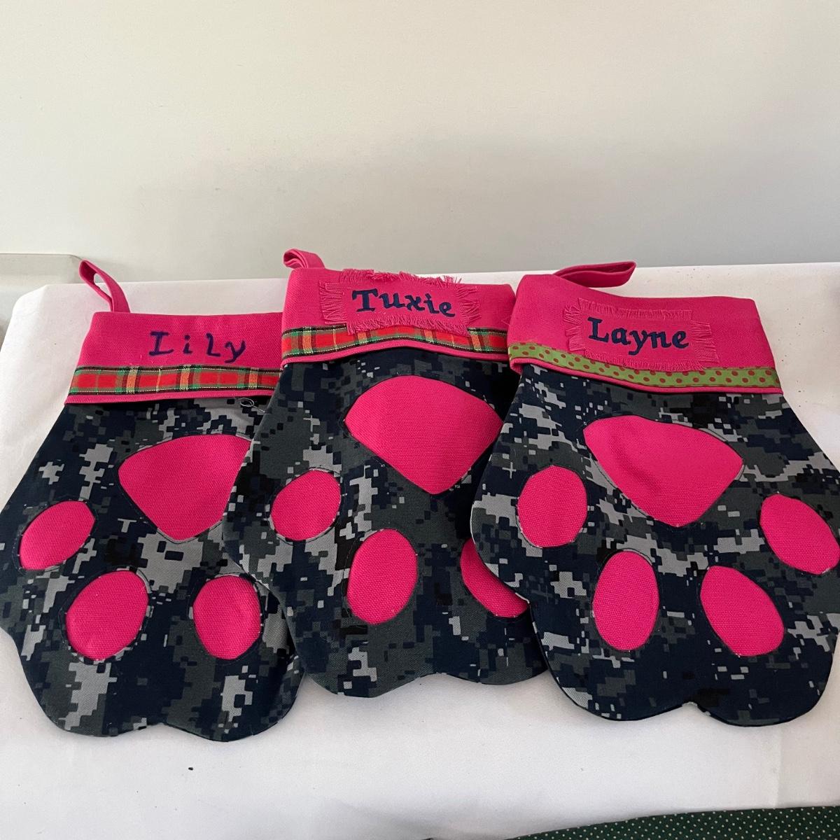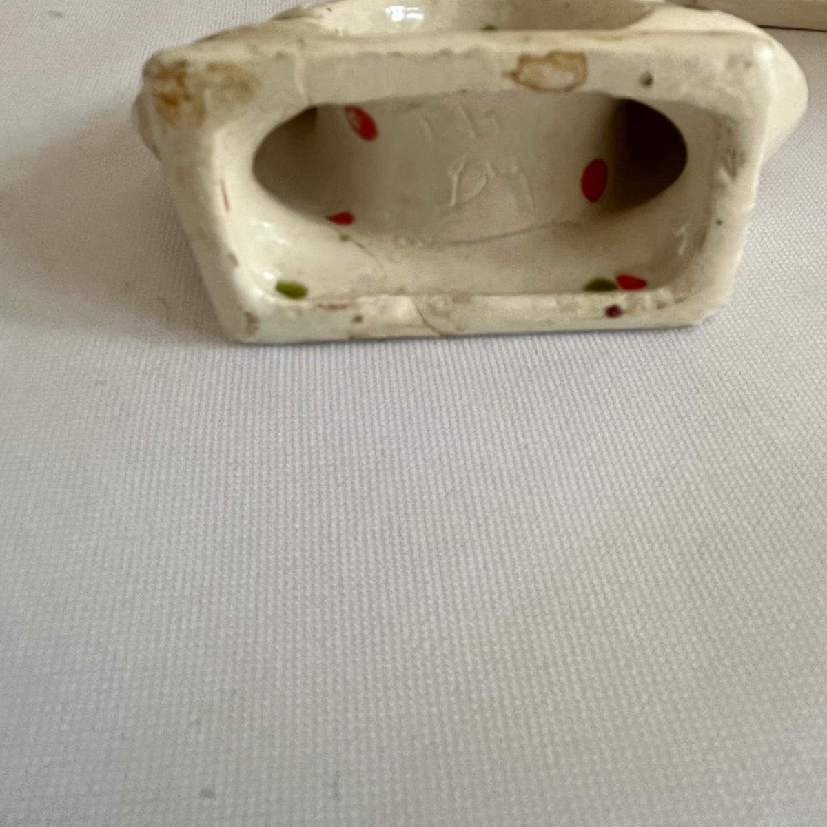 A collection of Christmas decorations in this lot that contains a snowman cookie jar, punch bowl and cups, bowl, mug, sequined storage boxes, wooden pins and more. Cookie jar measures 7”D x 12” tall. Also includes tree skirt, placemats, angel nutcracker, Christmas tree shaped decorations, La Bien Ceramic ornament, three dog stockings and resin figurines.