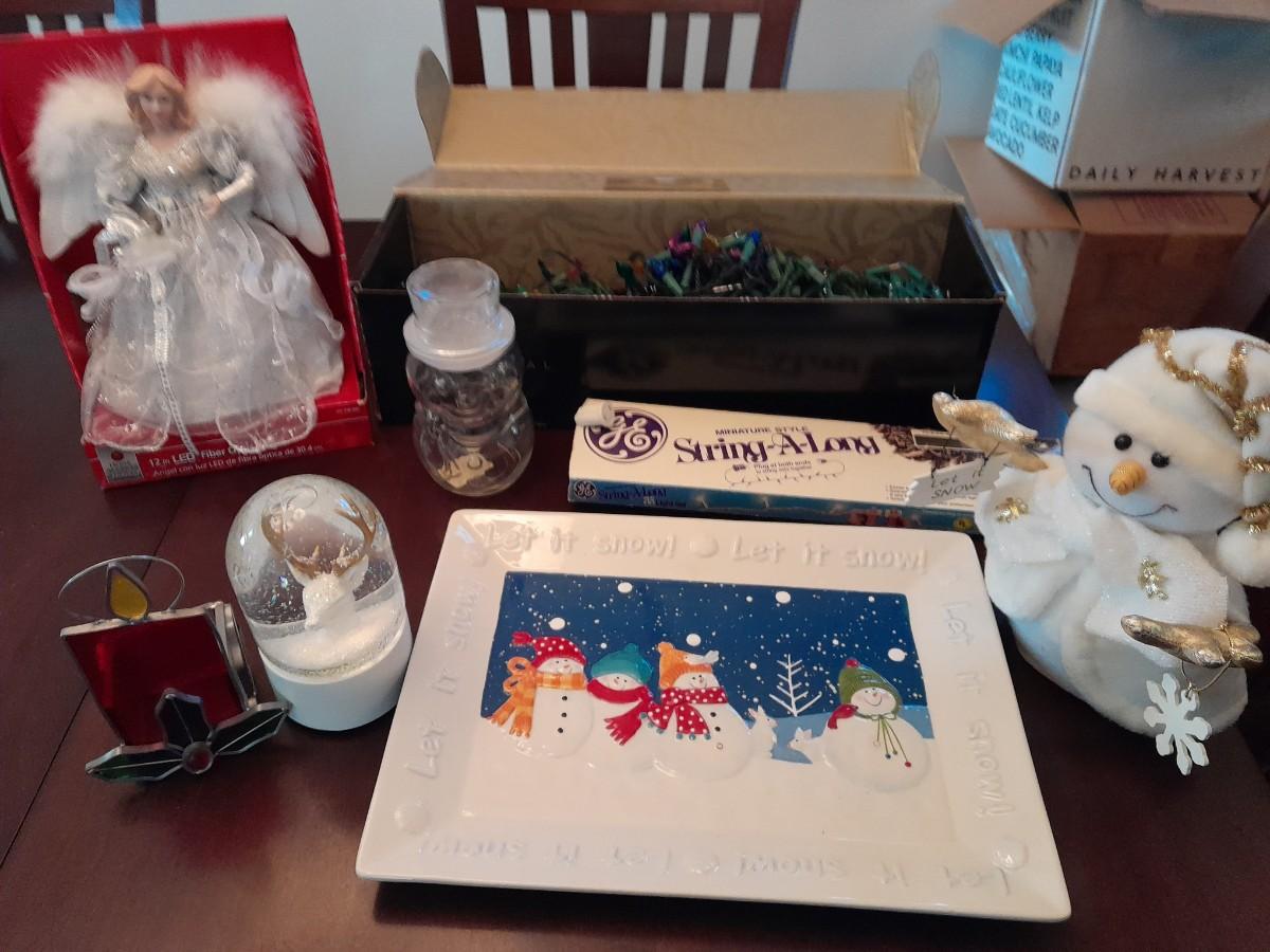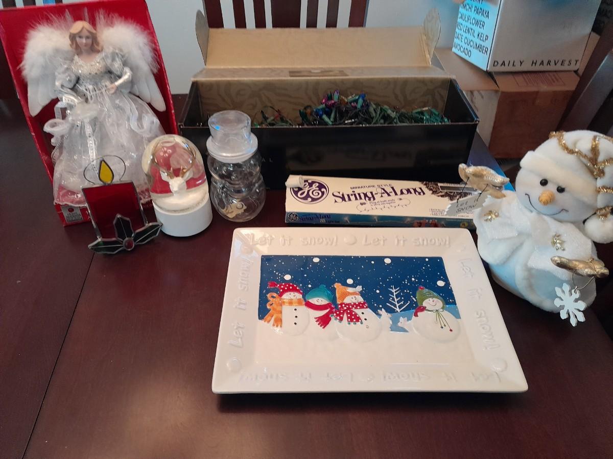 CHRISTMAS DECORATIONS SNOWMEN PLATTER, ANGELS, LIGHTS AND MORE CHRISTMAS IS LESS THAN 73 DAYS AWAY!!