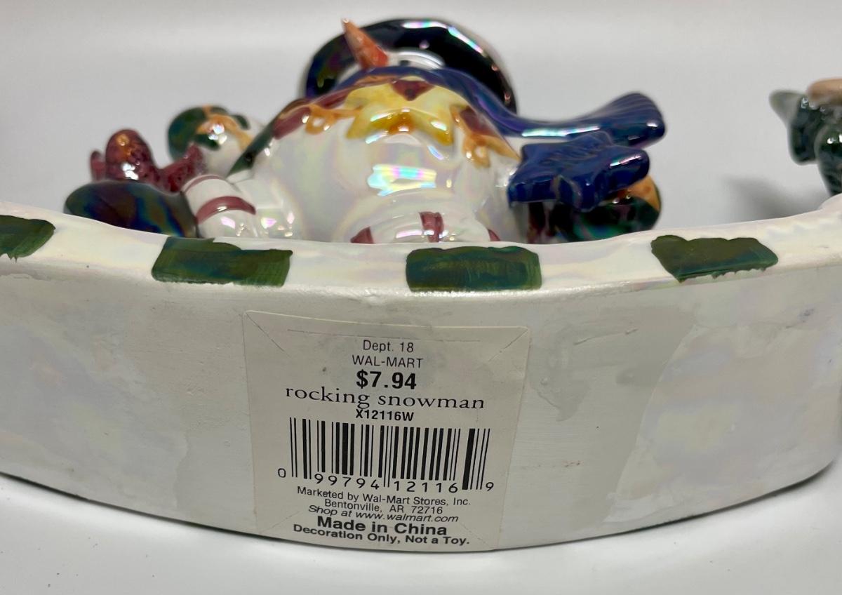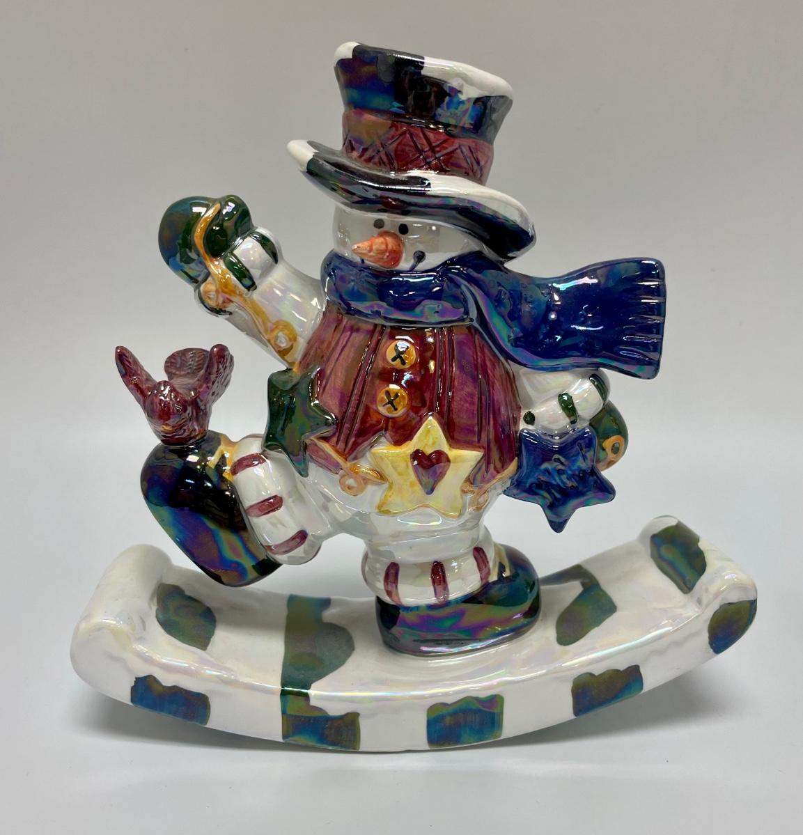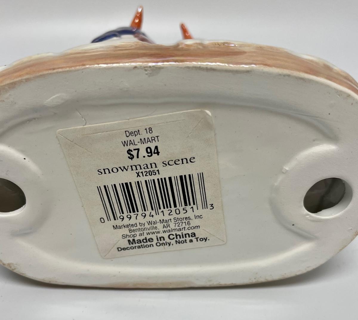 Pair of Dept. 18 Christmas figurines. Walking snowman and pair of posing snowmen. Hand painted.