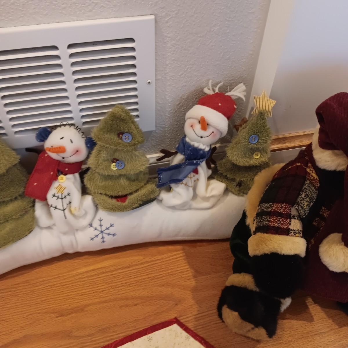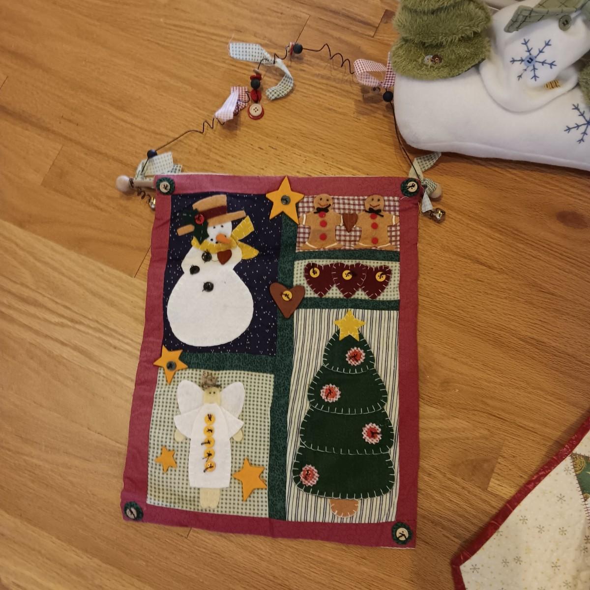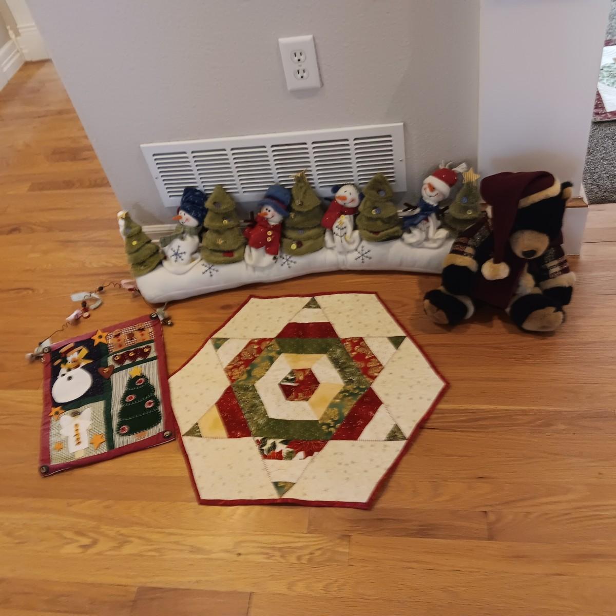 CHRISTMAS DOOR DRAFT CATCHER, QUILTED WALL HANGING AND TEDDY BEAR