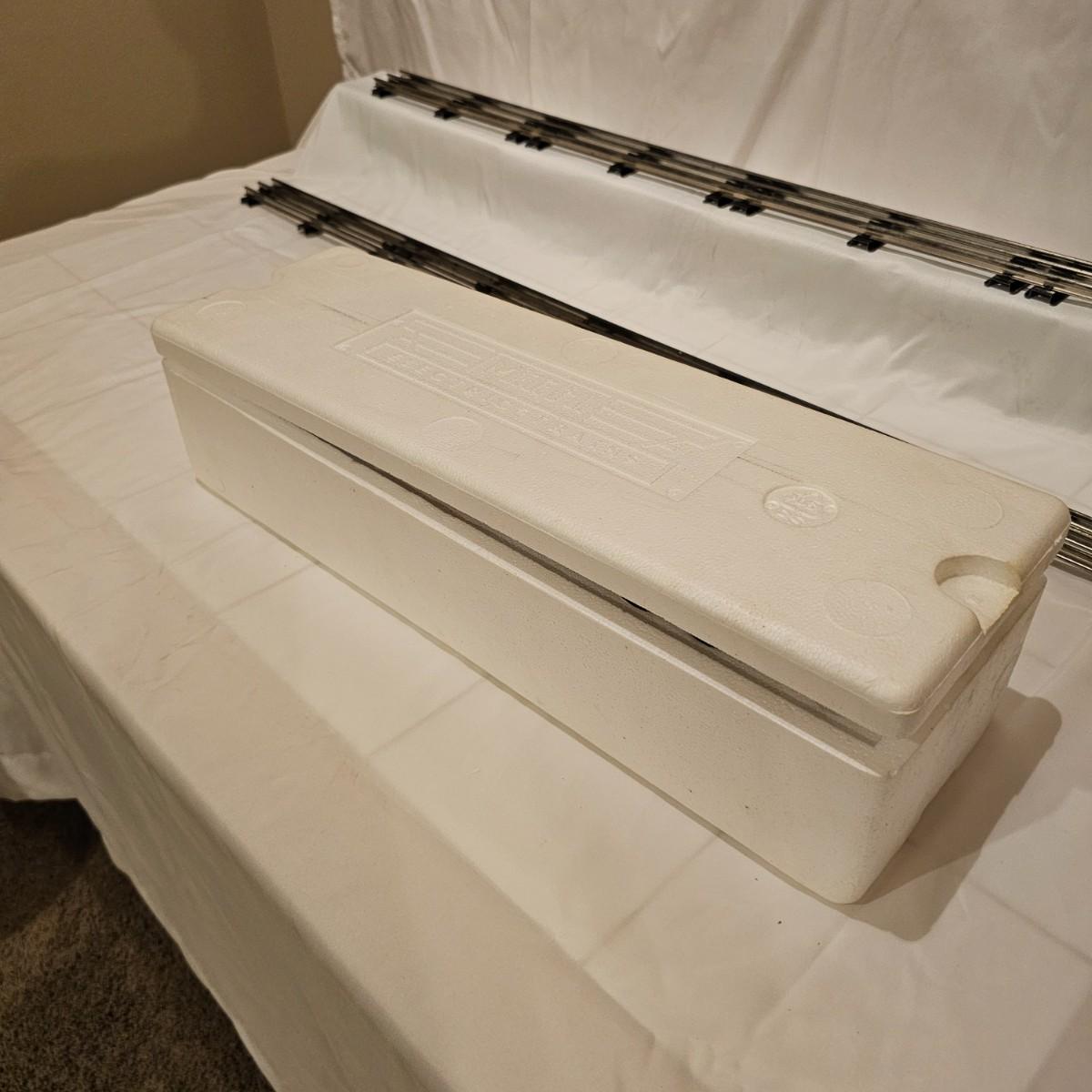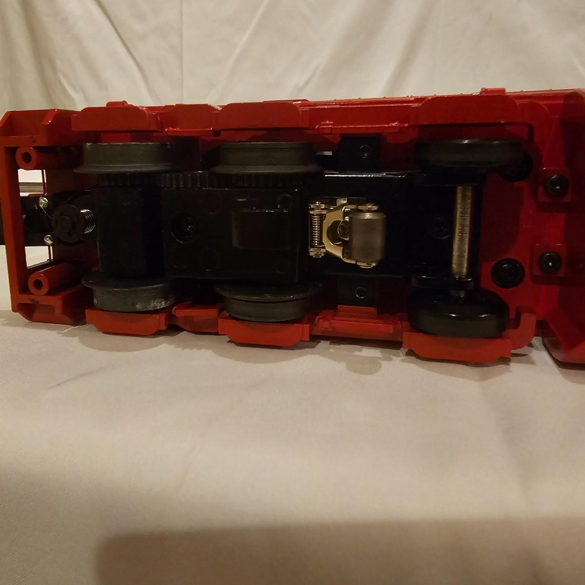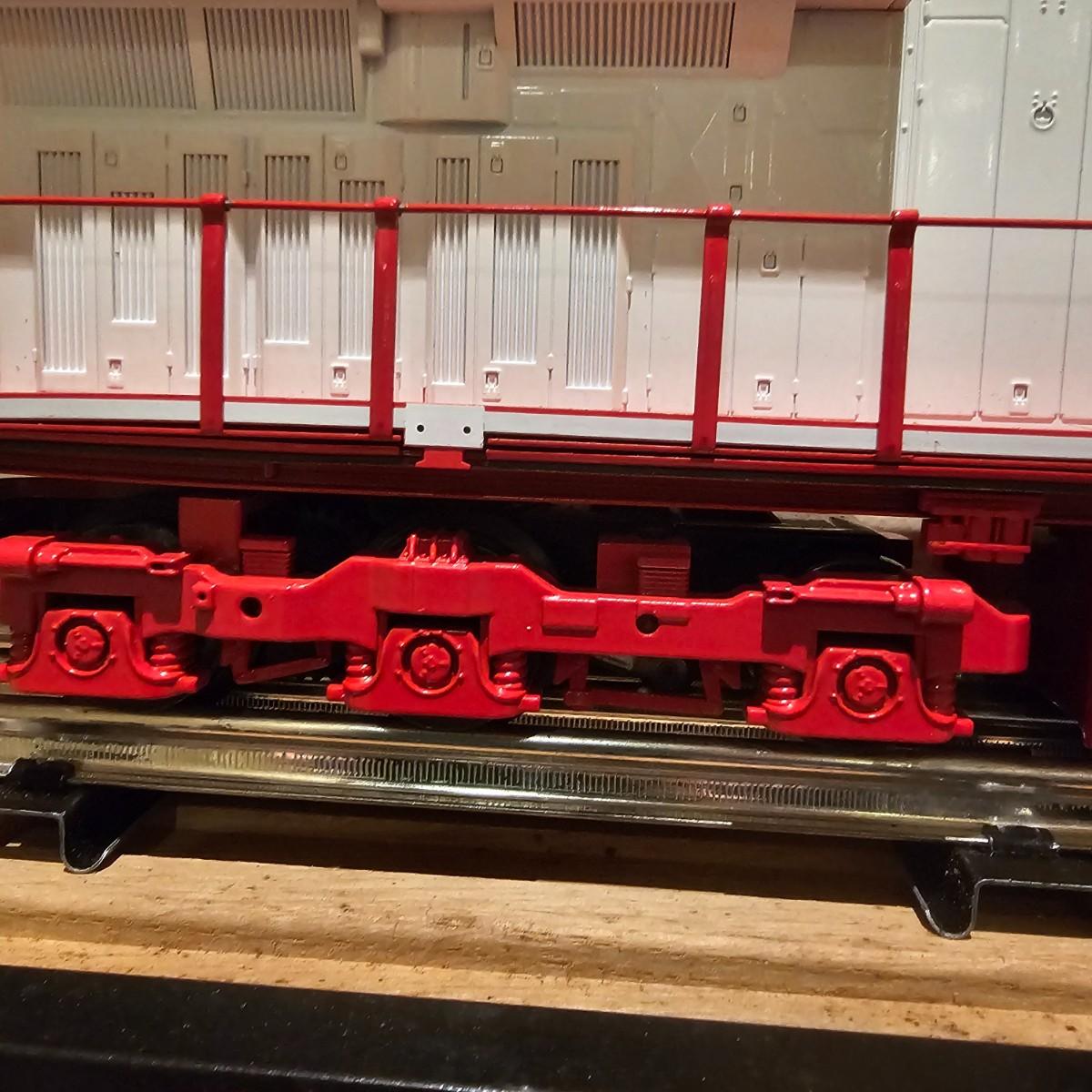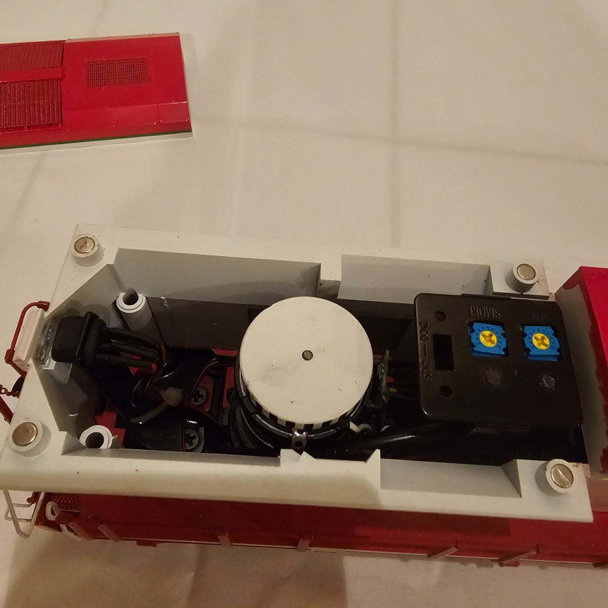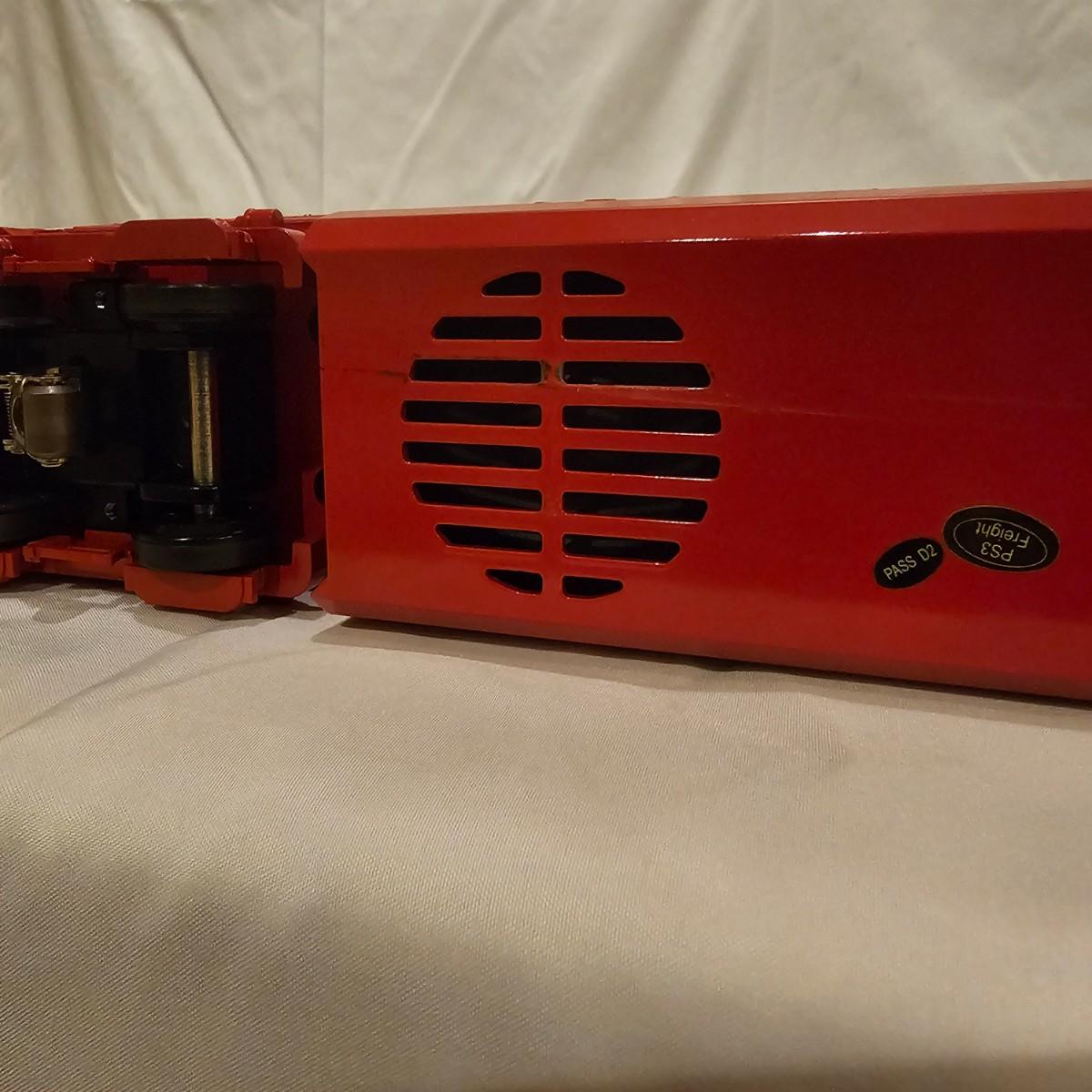 Beautiful Christmas themed Imperial diesel by Rail King/MTH. SANTA Claus symbols and red/white coloring throughout. Engine has multiple features including Proto 3 Sound, operating ditch lights and smoke, freight yard effects and more. Engine powered up on layout and ran, but not all effects tested. Measures 17" x 2.5" x 3.74"H. Comes in original box, box somewhat used. See photos for details. Tracks in photos are not included with this lot, but available elsewhere in this auction.