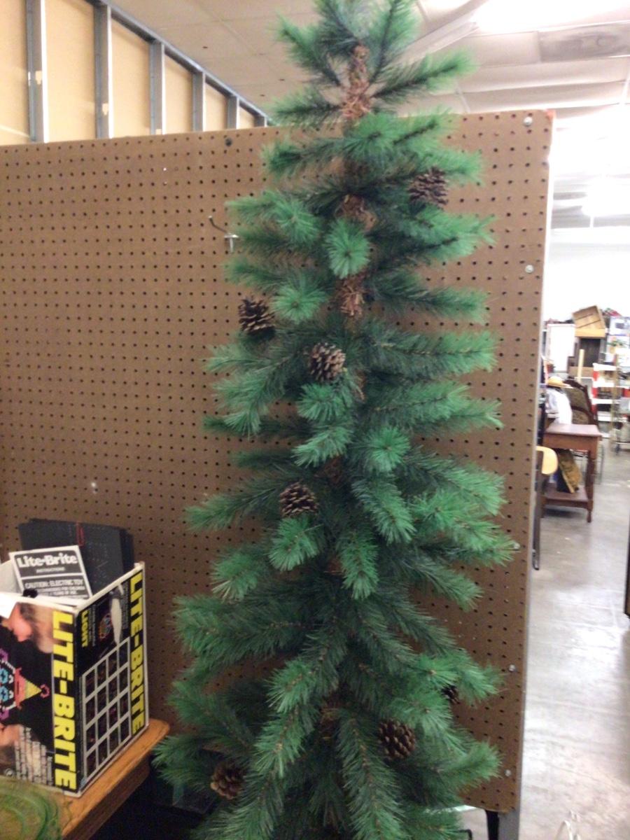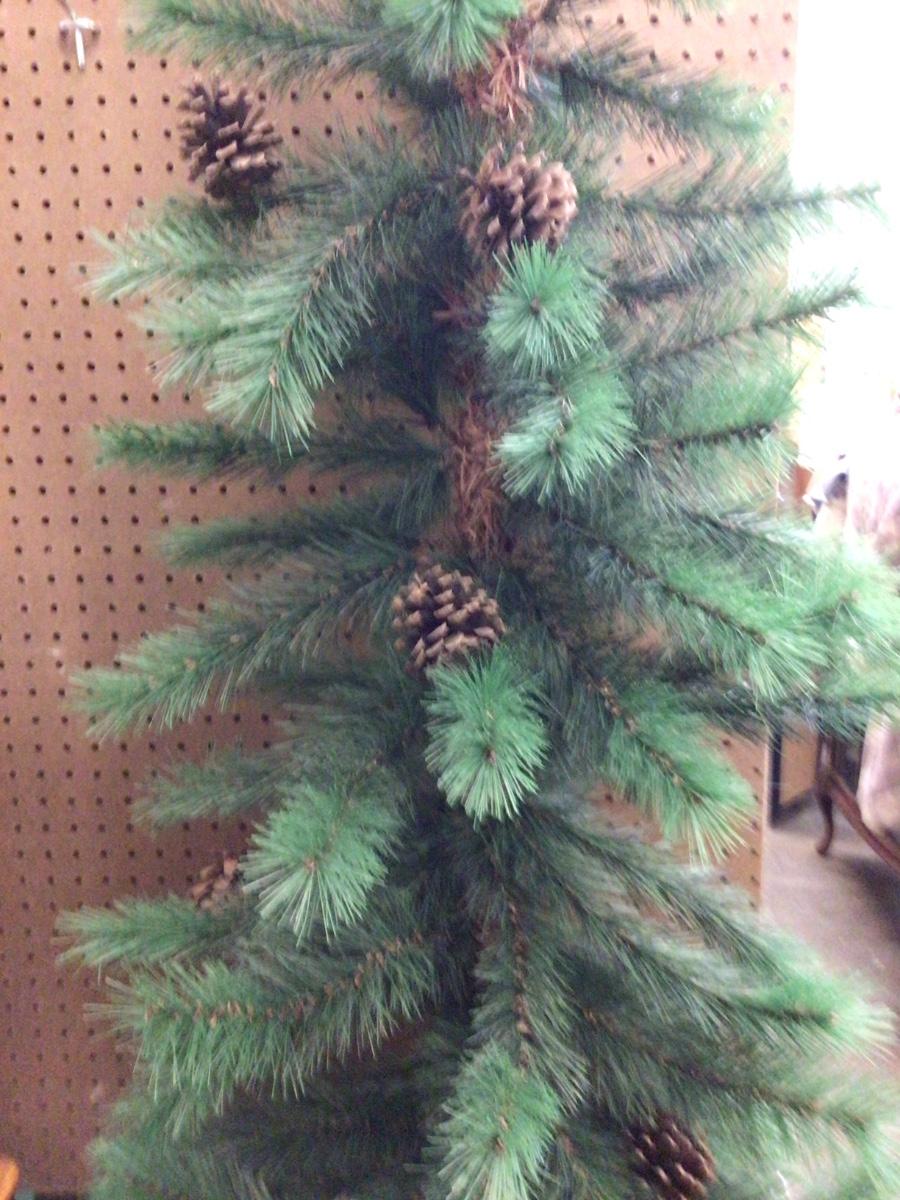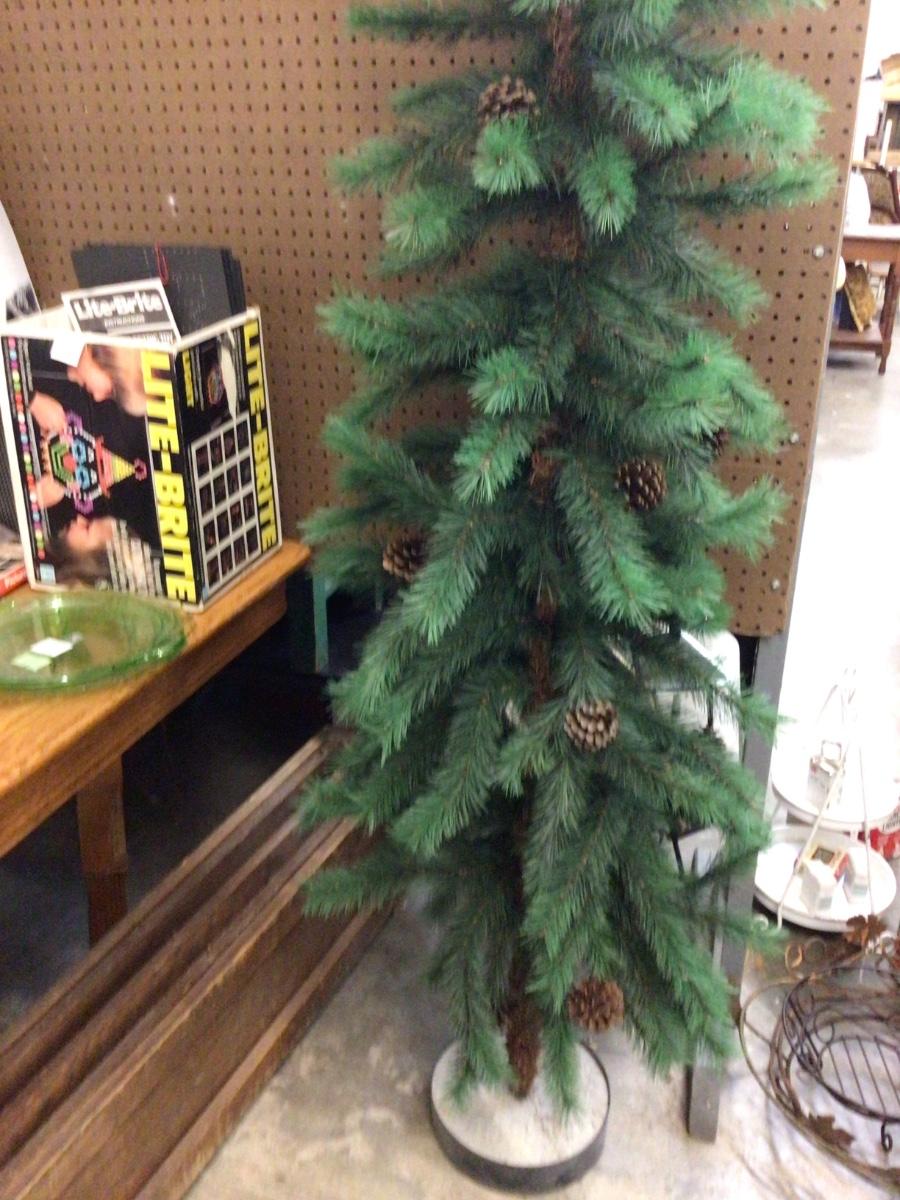 This could be used as Xmas tree or an evergreen tree home decor. It has pine cones and a round base.
