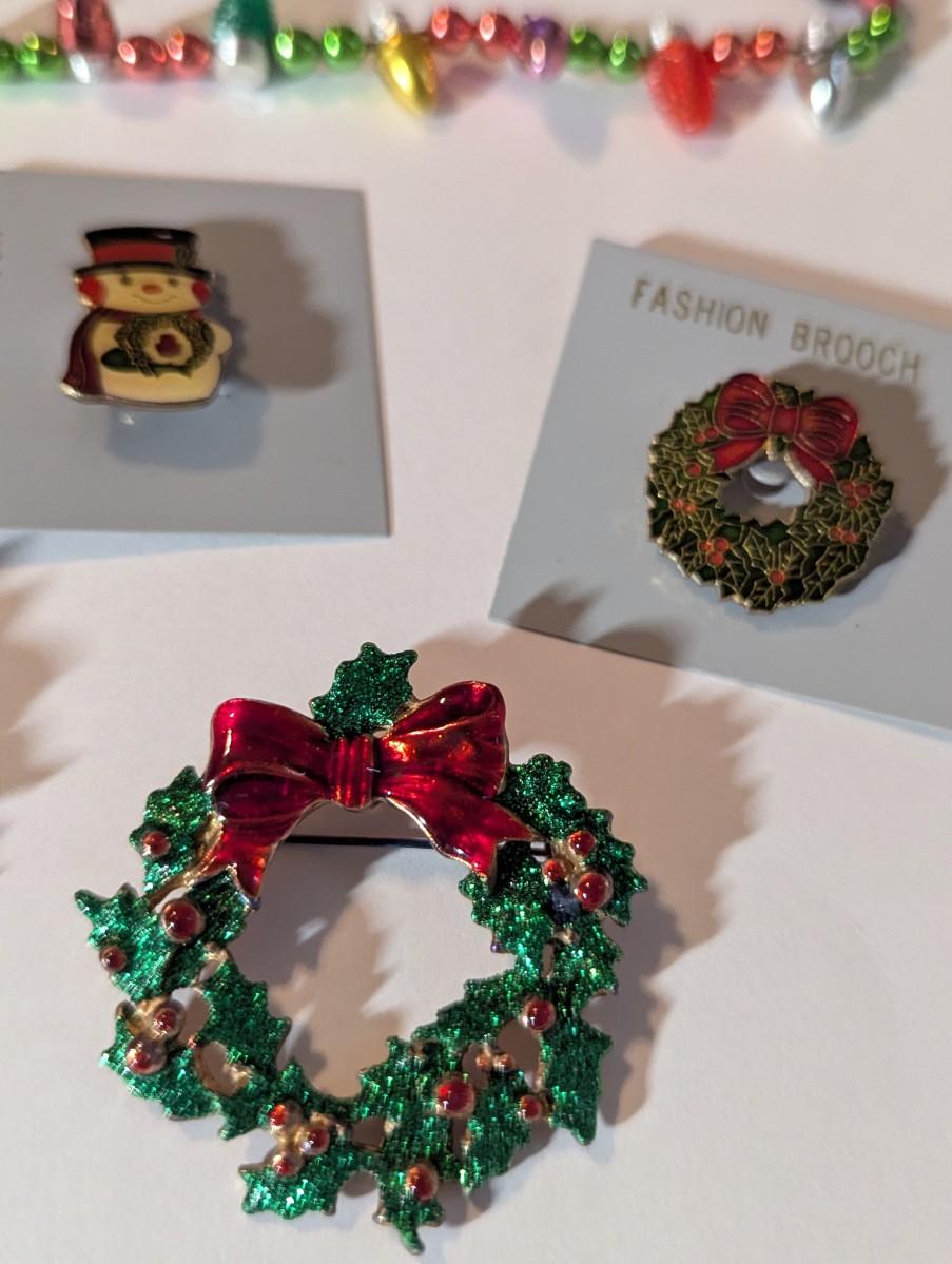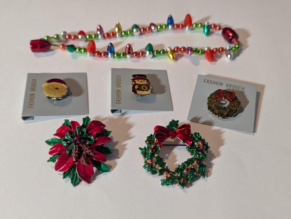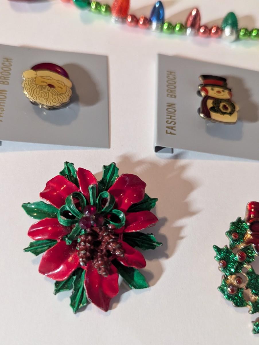 Christmas Fashion Brooches Christmas Wreath & Poinsettia Pine Cone Brooches & Light-Up Necklace #6