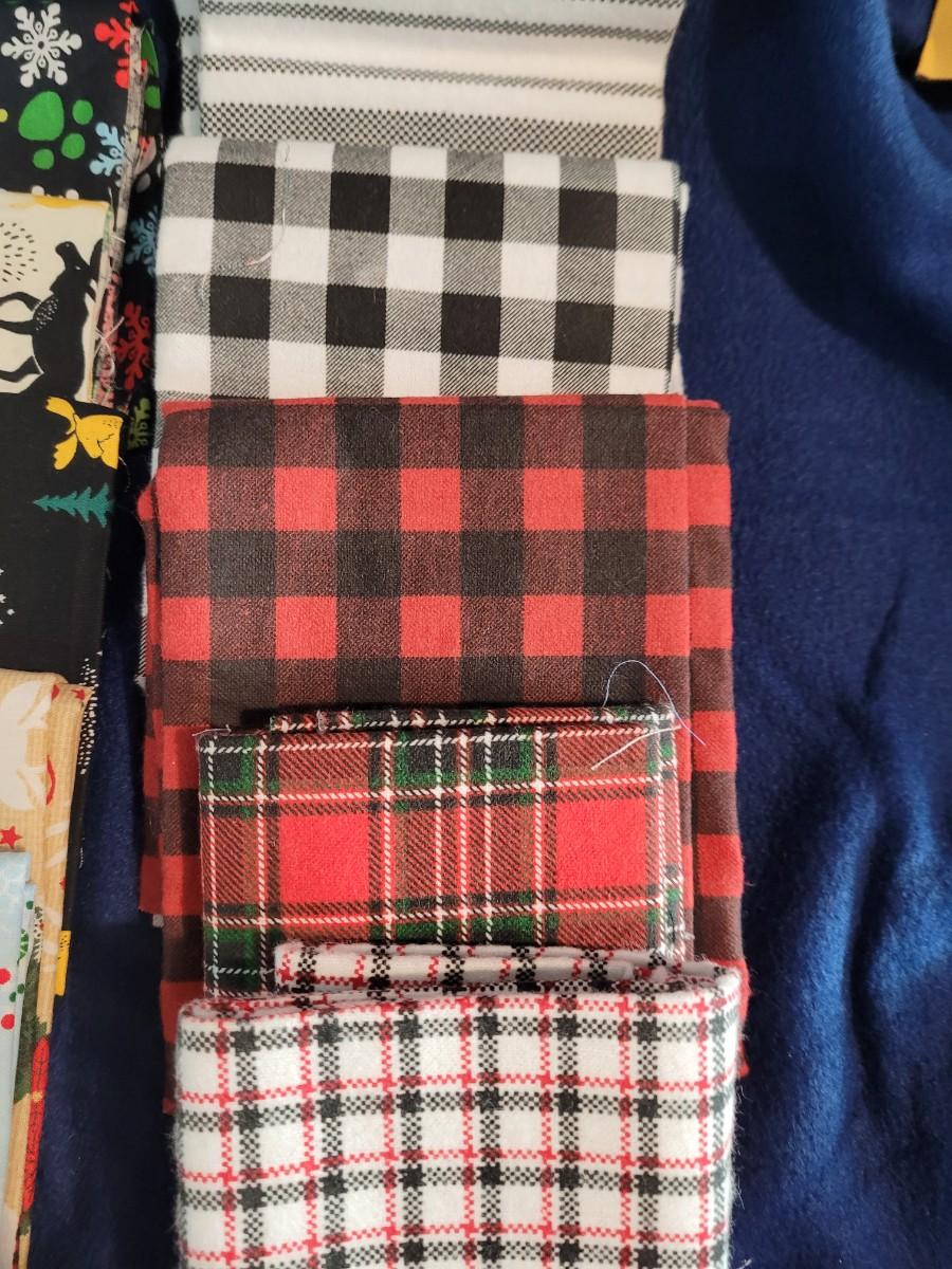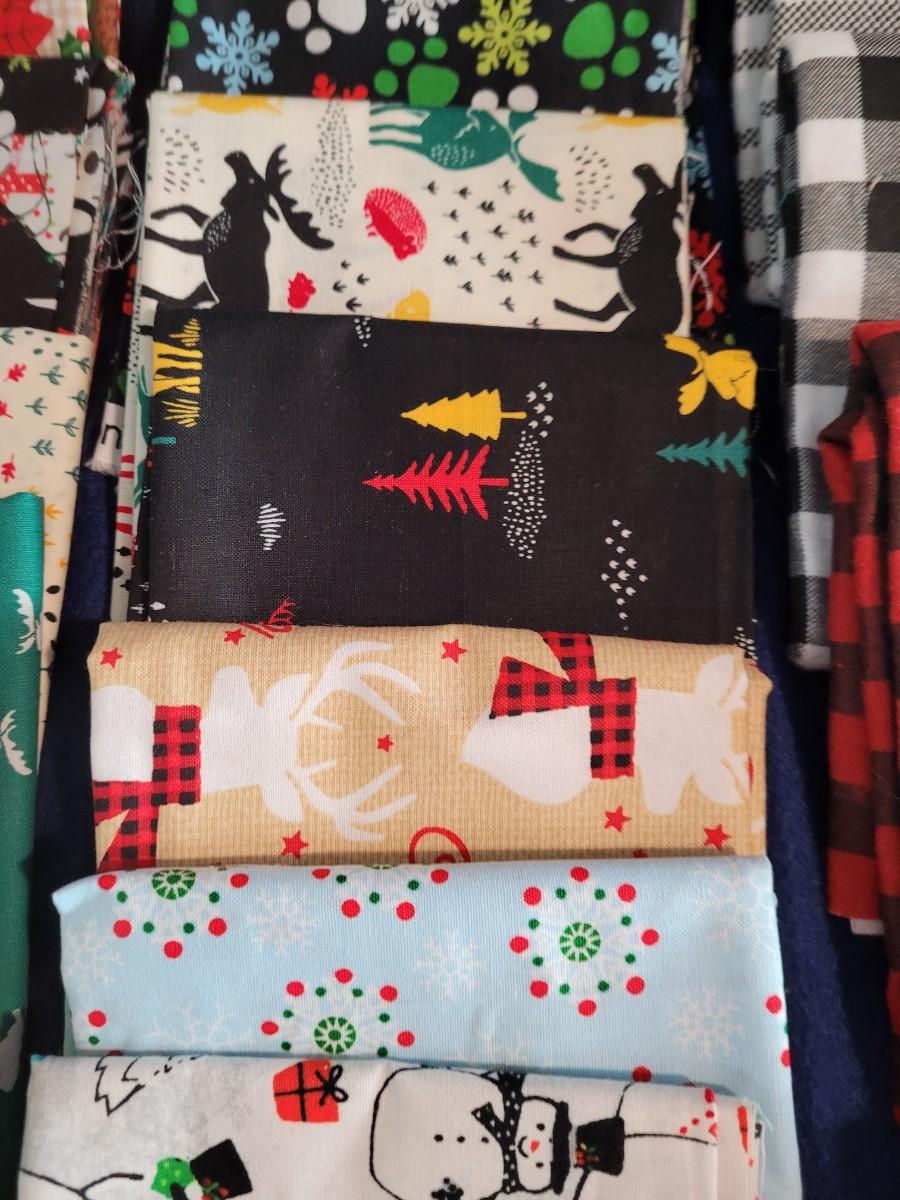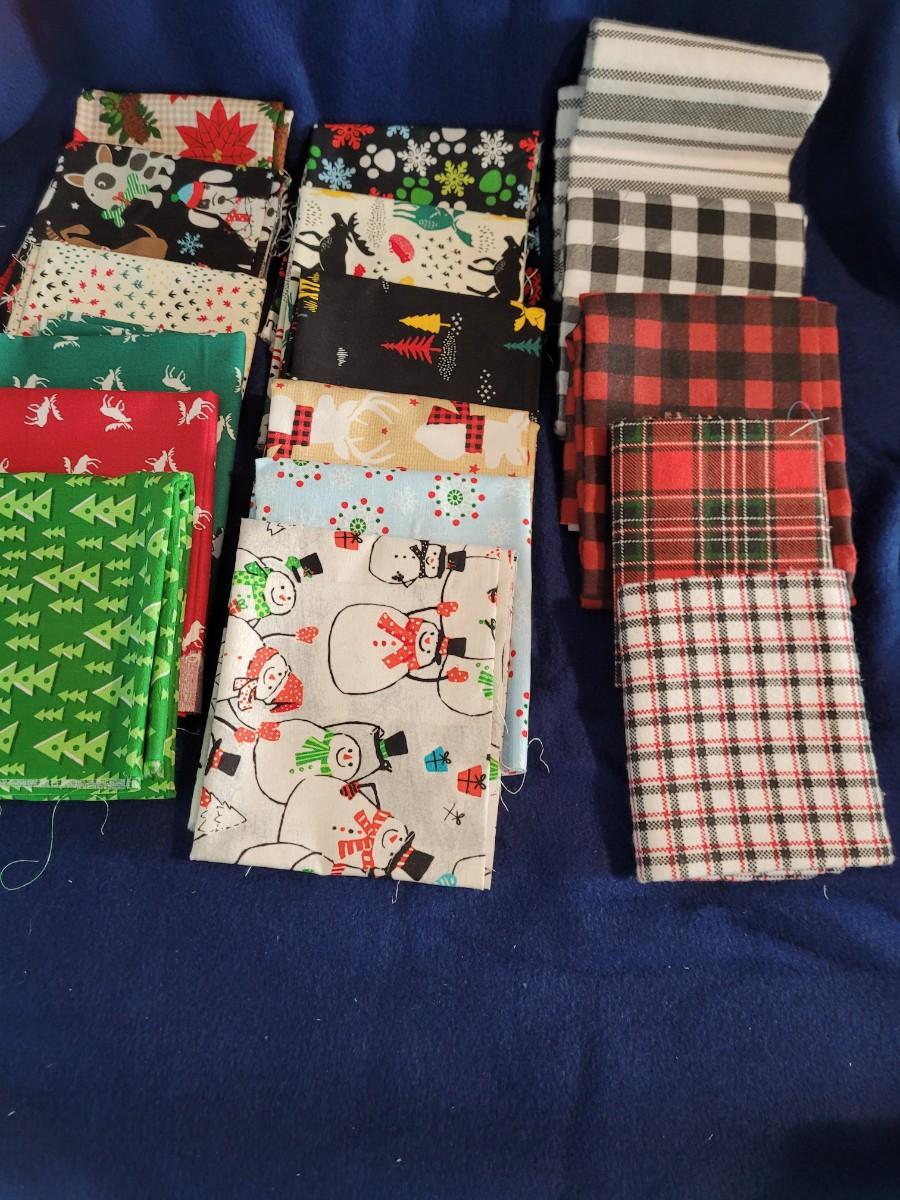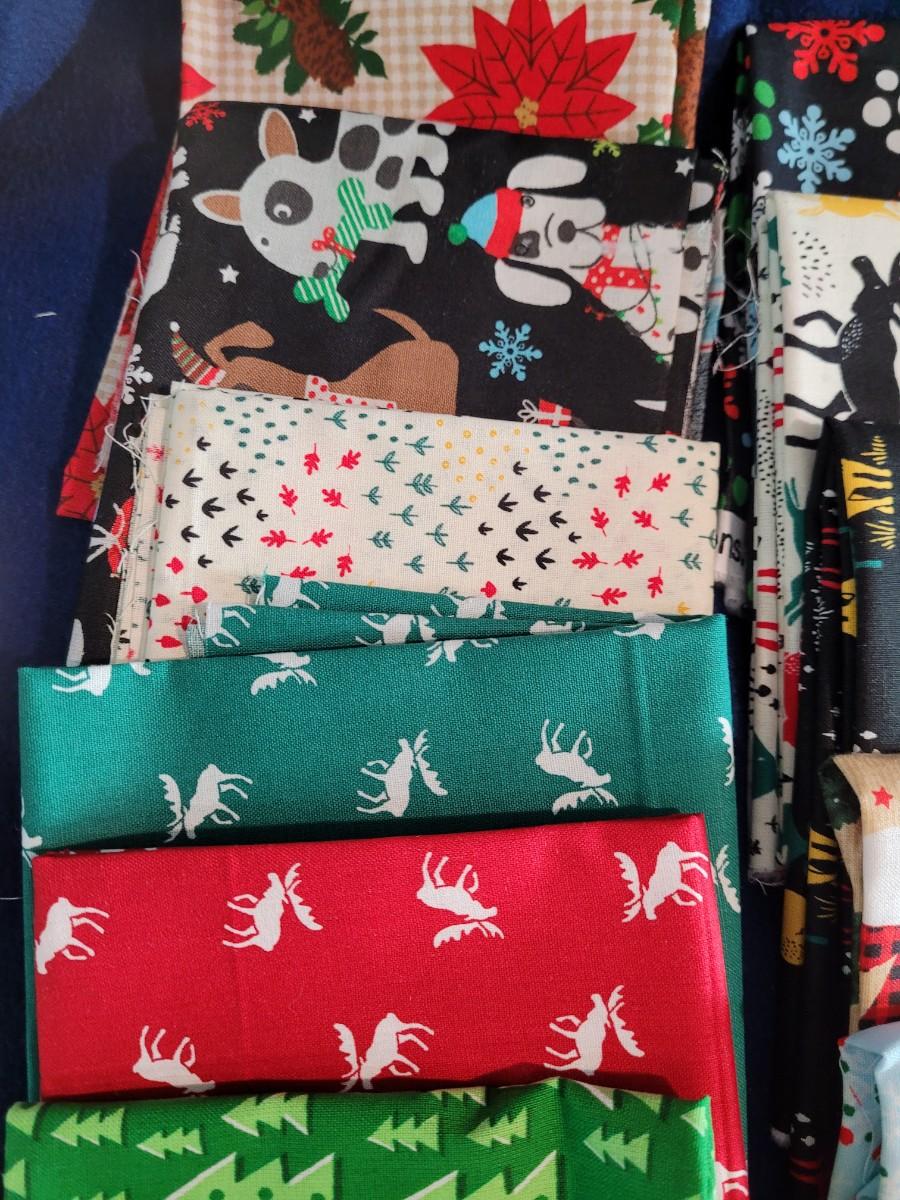 12 Cotton Christmas fat quarters and 5 flannel fat quarters
