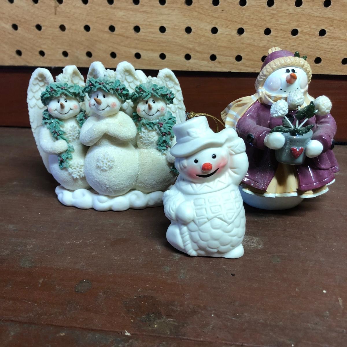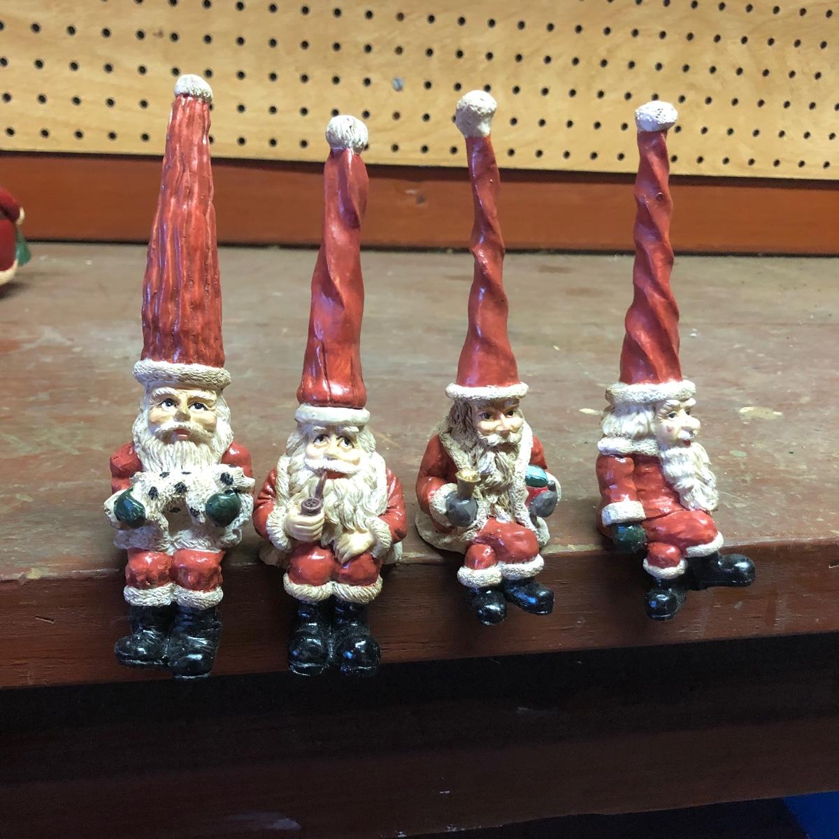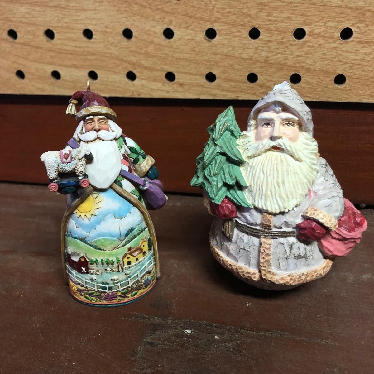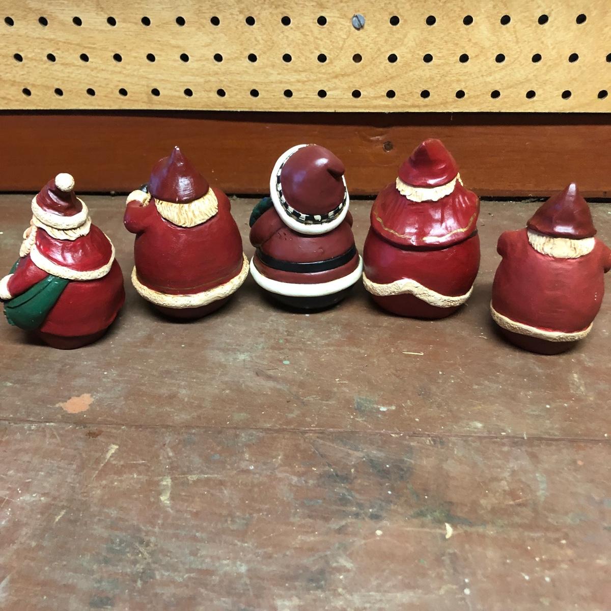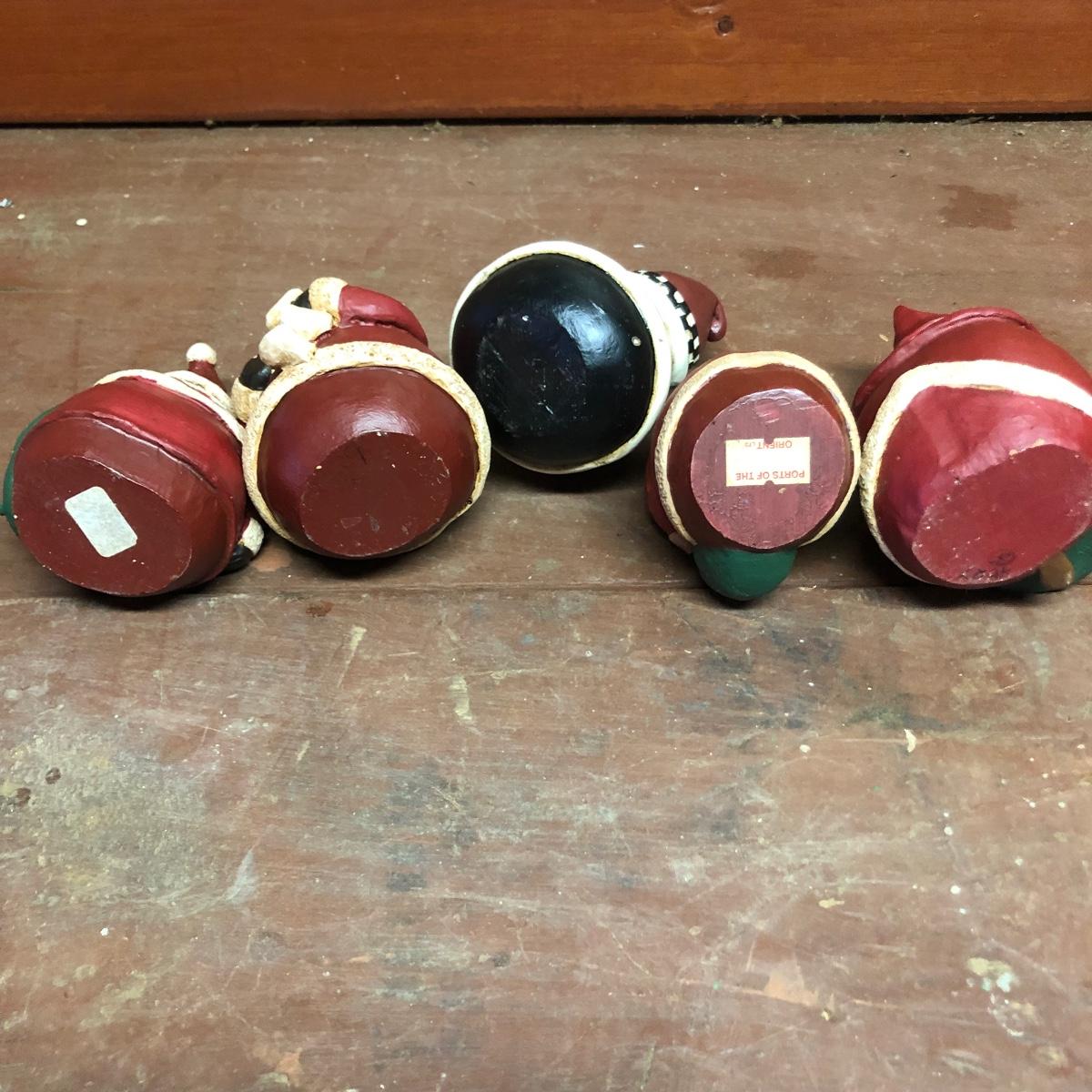 Lot includes three snowman design figurines, four seated Santa’s , five rotund Santa’s, three small wooden Santa’s, Eddie Walker Santa and more. Most figurines appear to be resin.