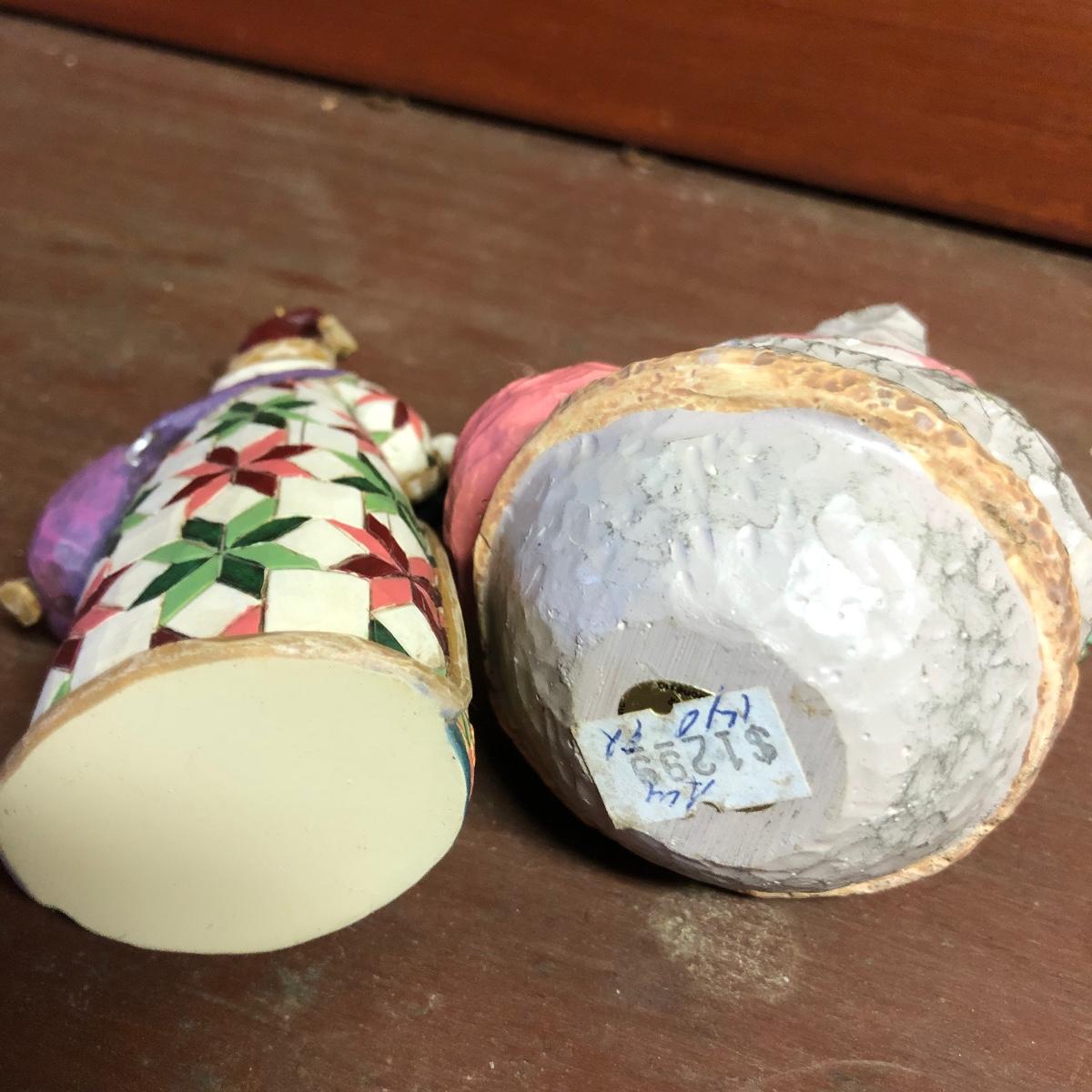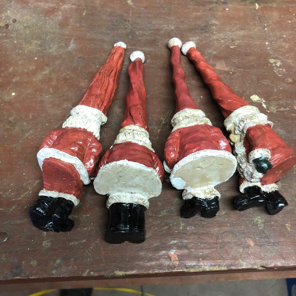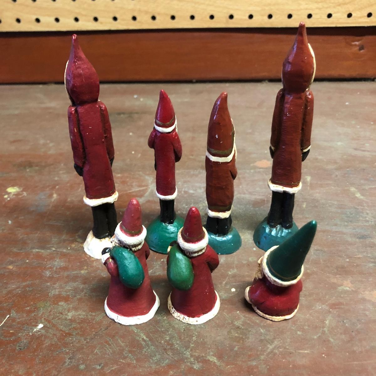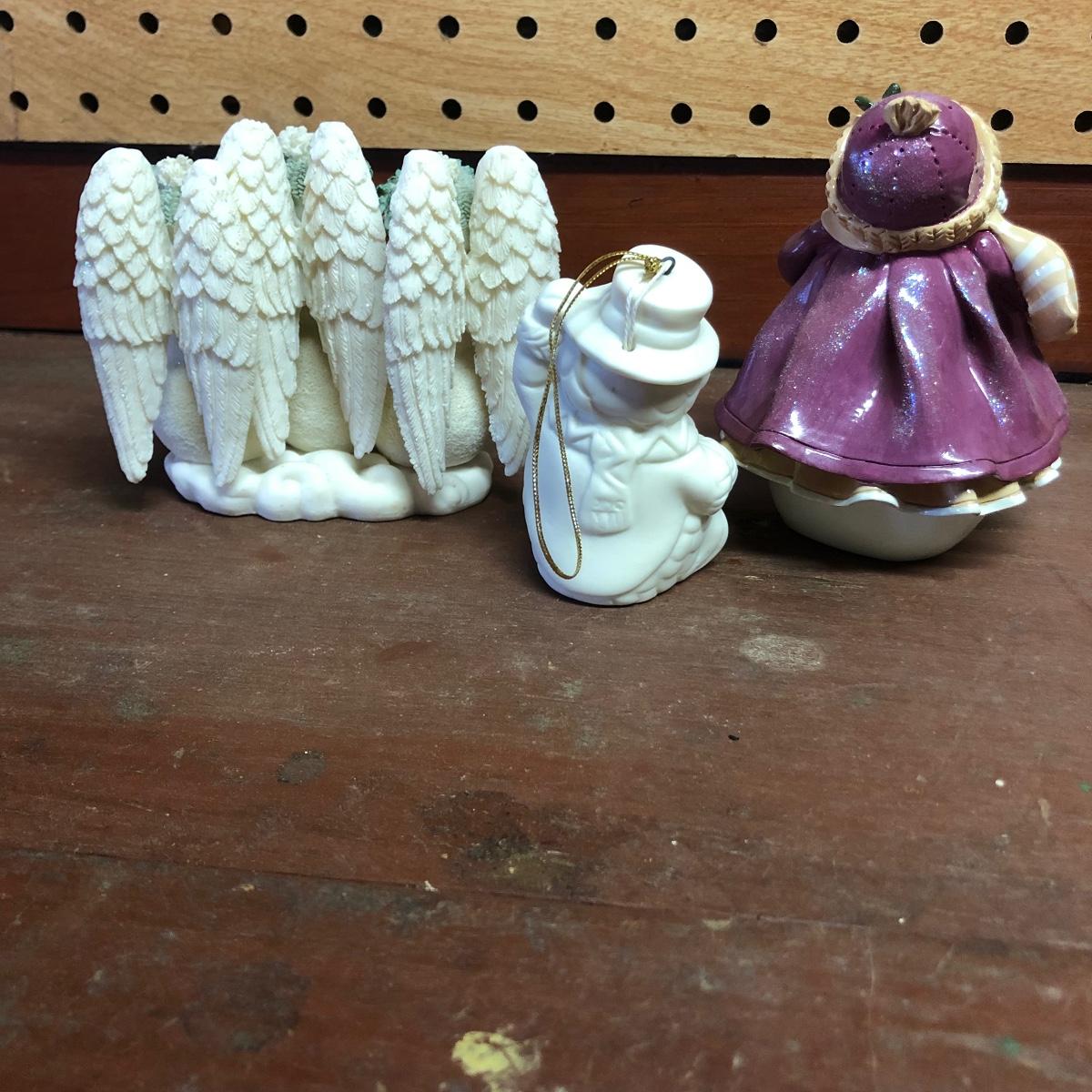 Lot includes three snowman design figurines, four seated Santa’s , five rotund Santa’s, three small wooden Santa’s, Eddie Walker Santa and more. Most figurines appear to be resin.