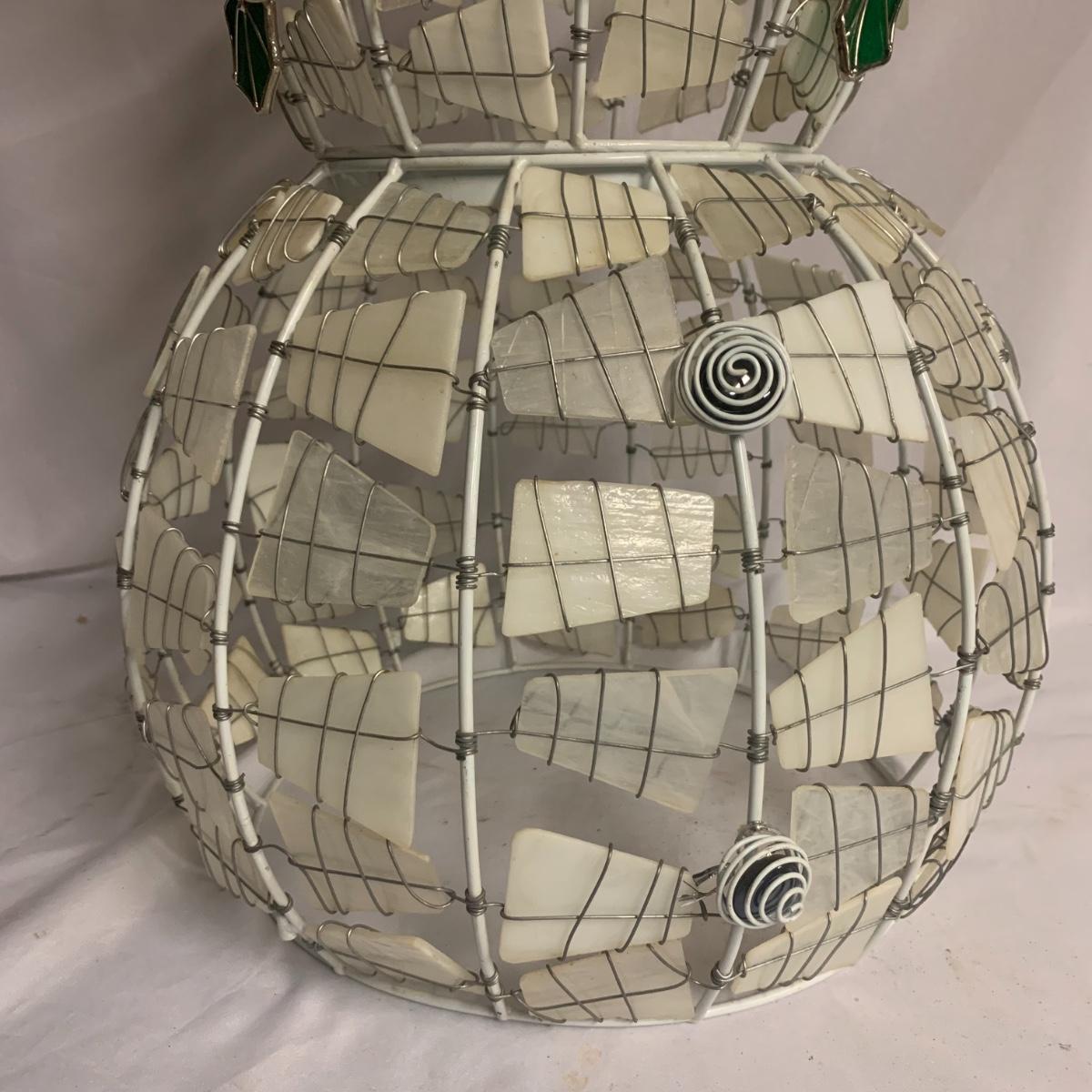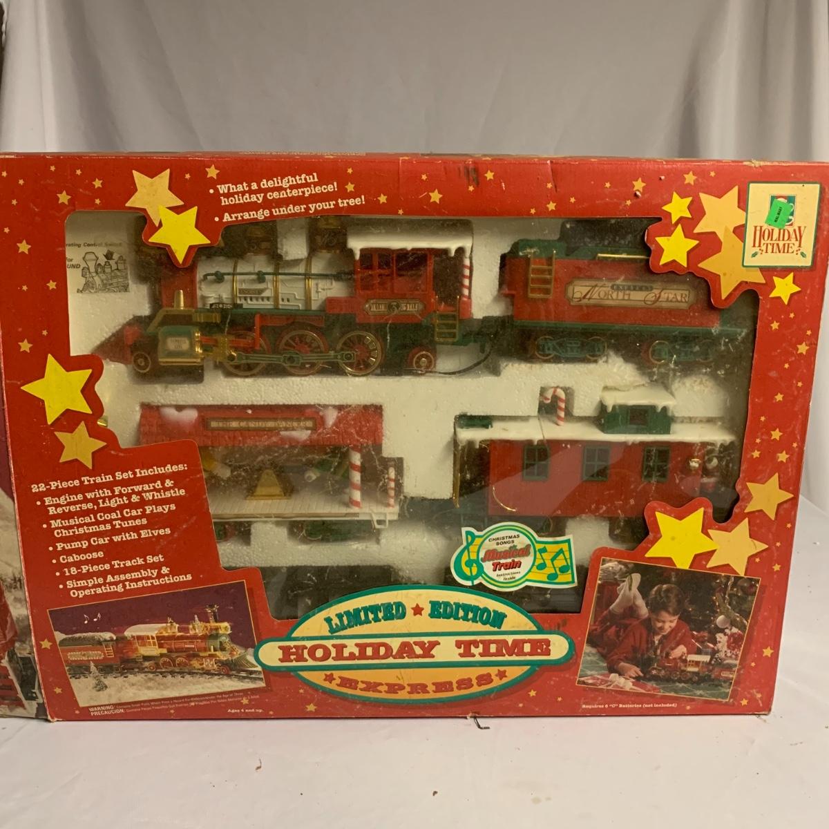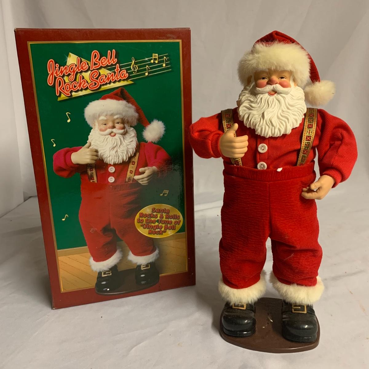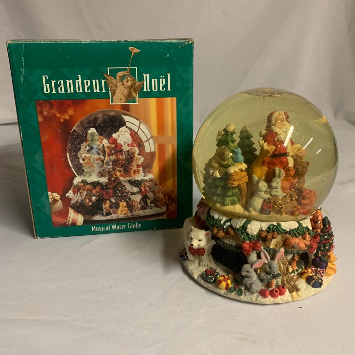 This lot includes an assortment of Christmas figurines, snow globes, a Jingle Bell Rock Santa, a train set, and more. Also included are a glass panel snow man and a Jim Shores holiday plate. The snowman measures about 37in tall. Local Pickup Only.