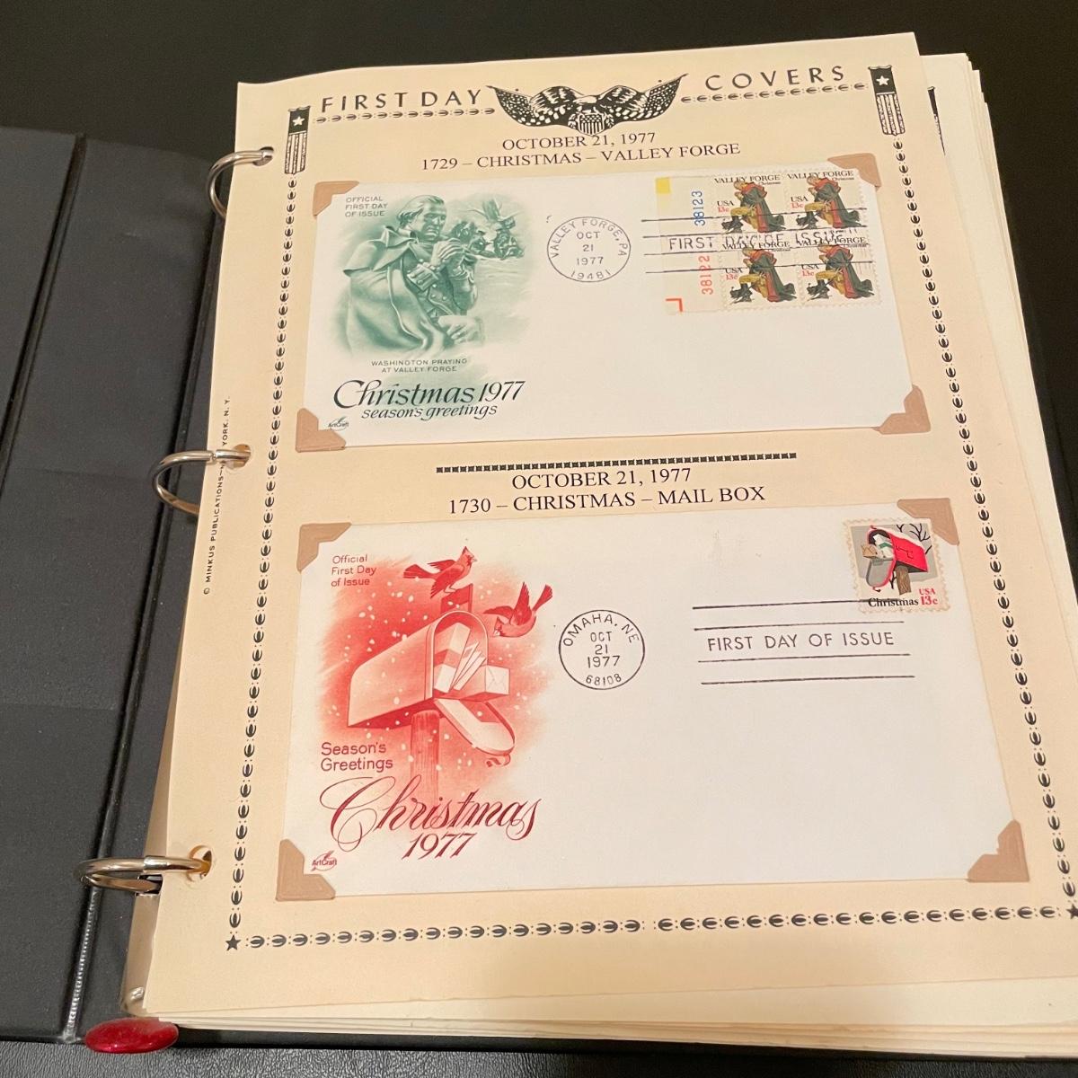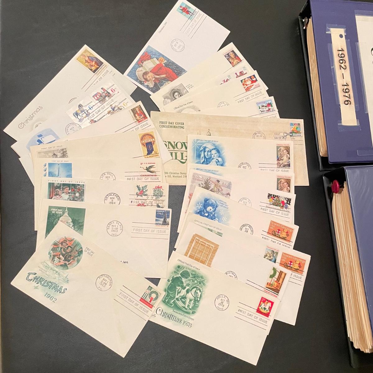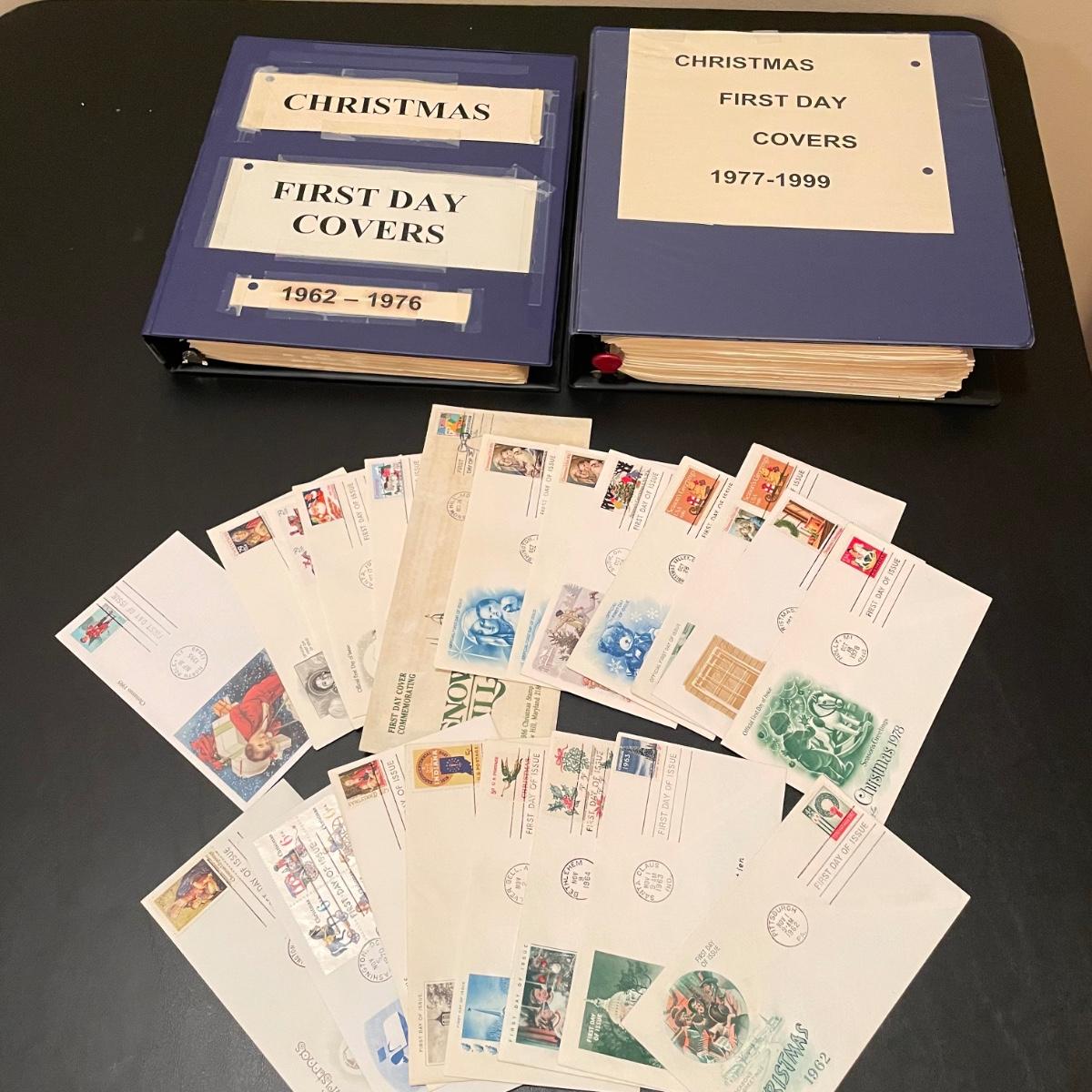 Two binders and a handful of loose envelopes of Christmas First Day Covers. Some are addresses, most appear unaddressed. See images. All sales are final. No returns or refunds. Please bid accordingly. Shipping available.