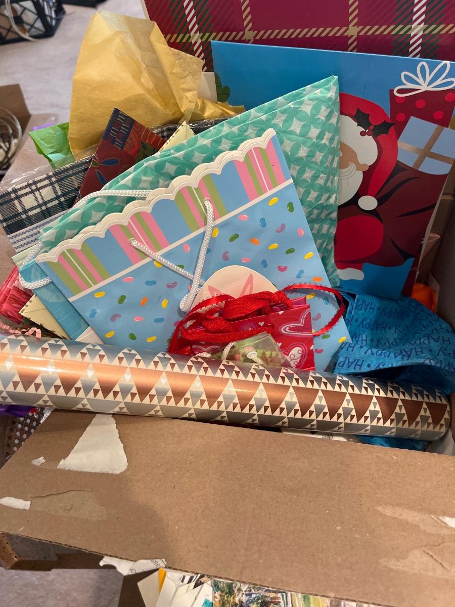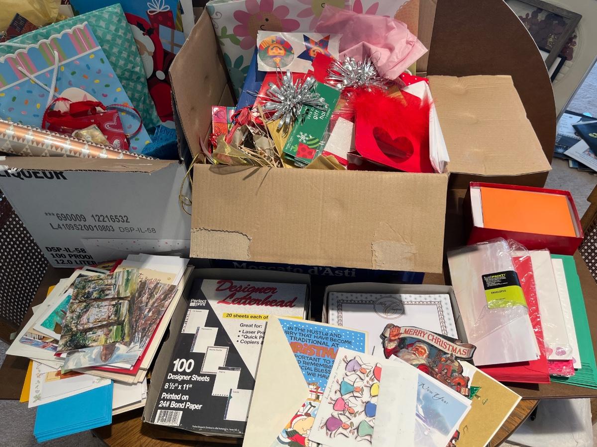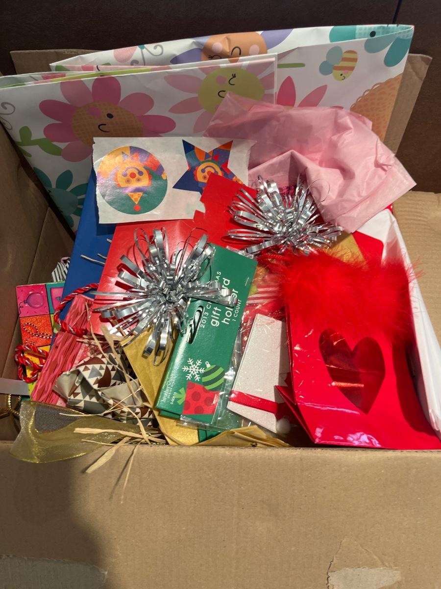 Christmas gift bags, wrap, bows, cards, letterhead, envelopes