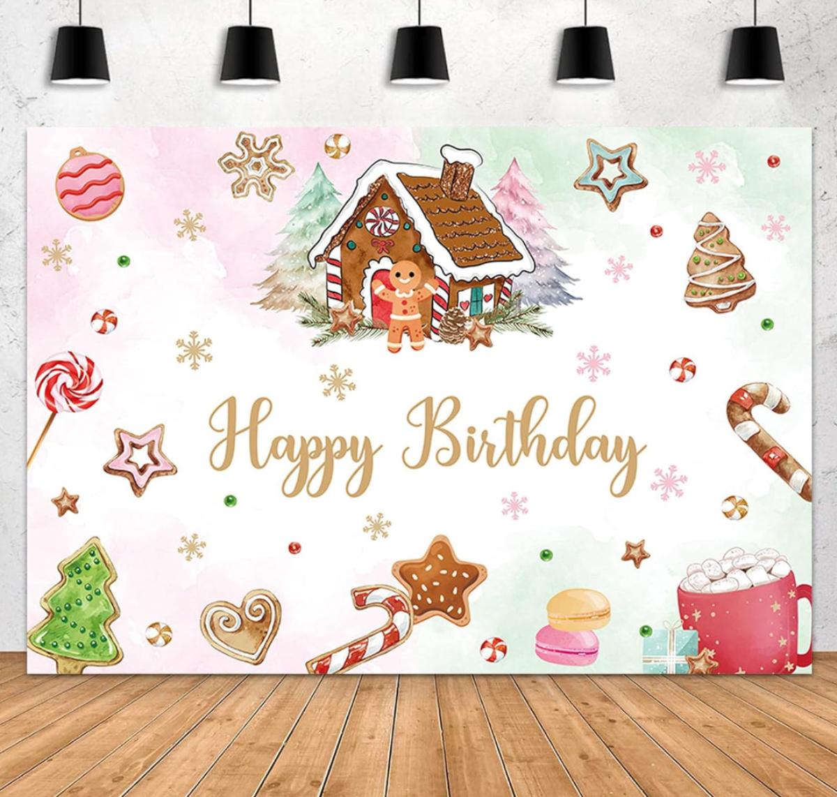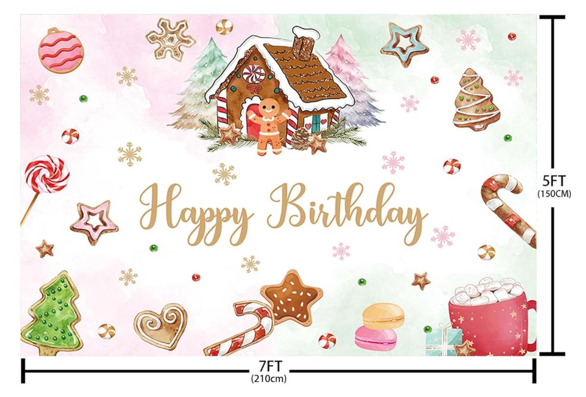 Christmas Gingerbread House Birthday Backdrop Winter Happy Birthday Photography Background Snowflake Candyland Merry Xmas Birthday Party Decorations Cake Table Banner Photo Booth Props 7x5ft