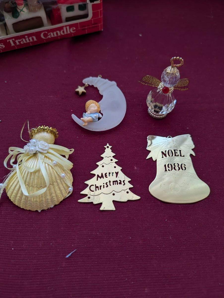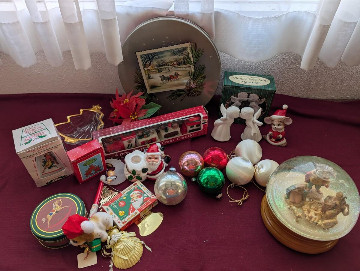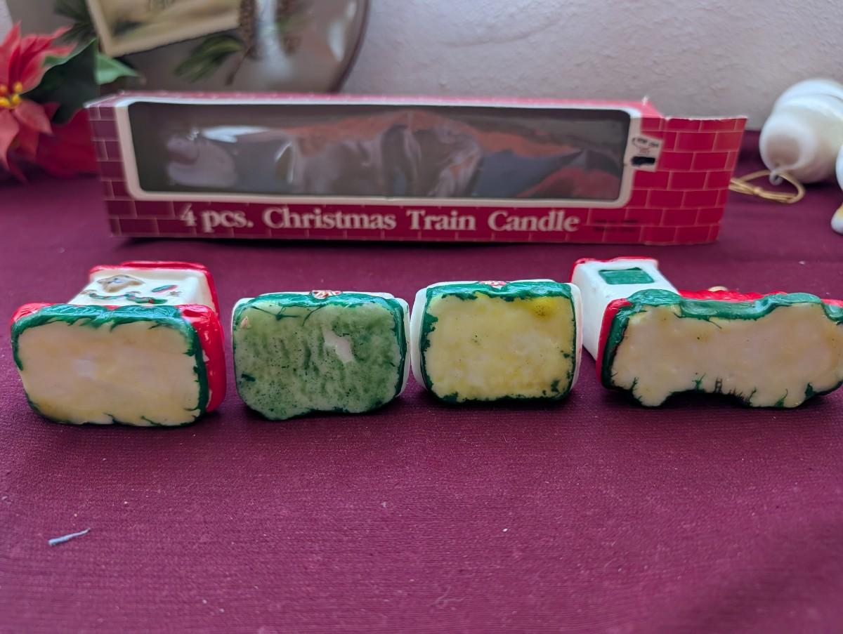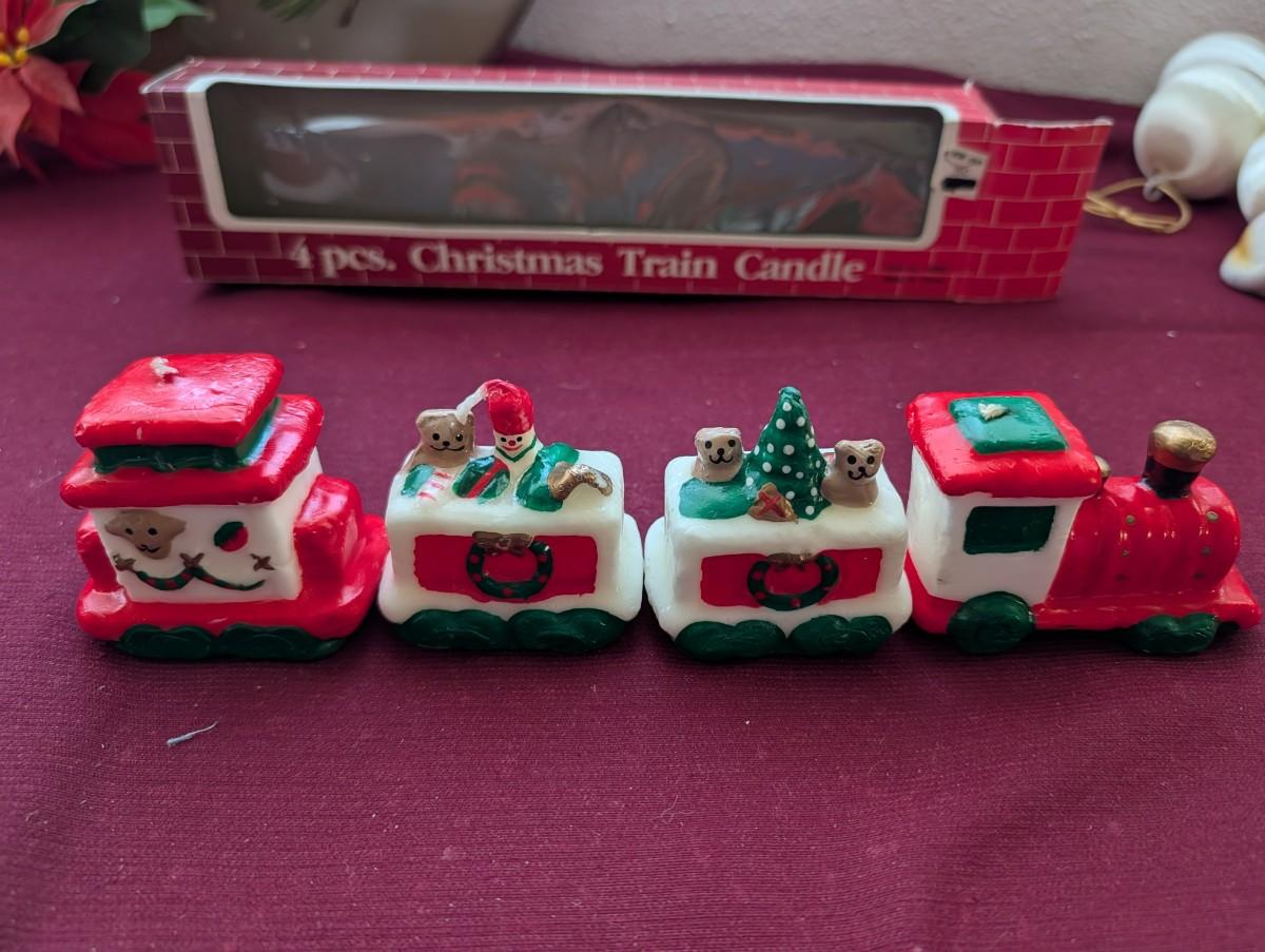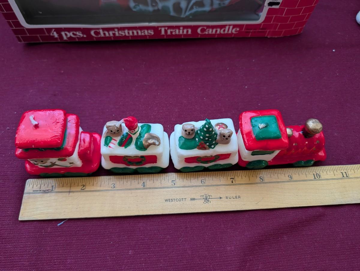 More Christmas decorations.... It just doesn't end. Christmas globe, Christmas candle train, bulbs, Santa candle holders ornaments,