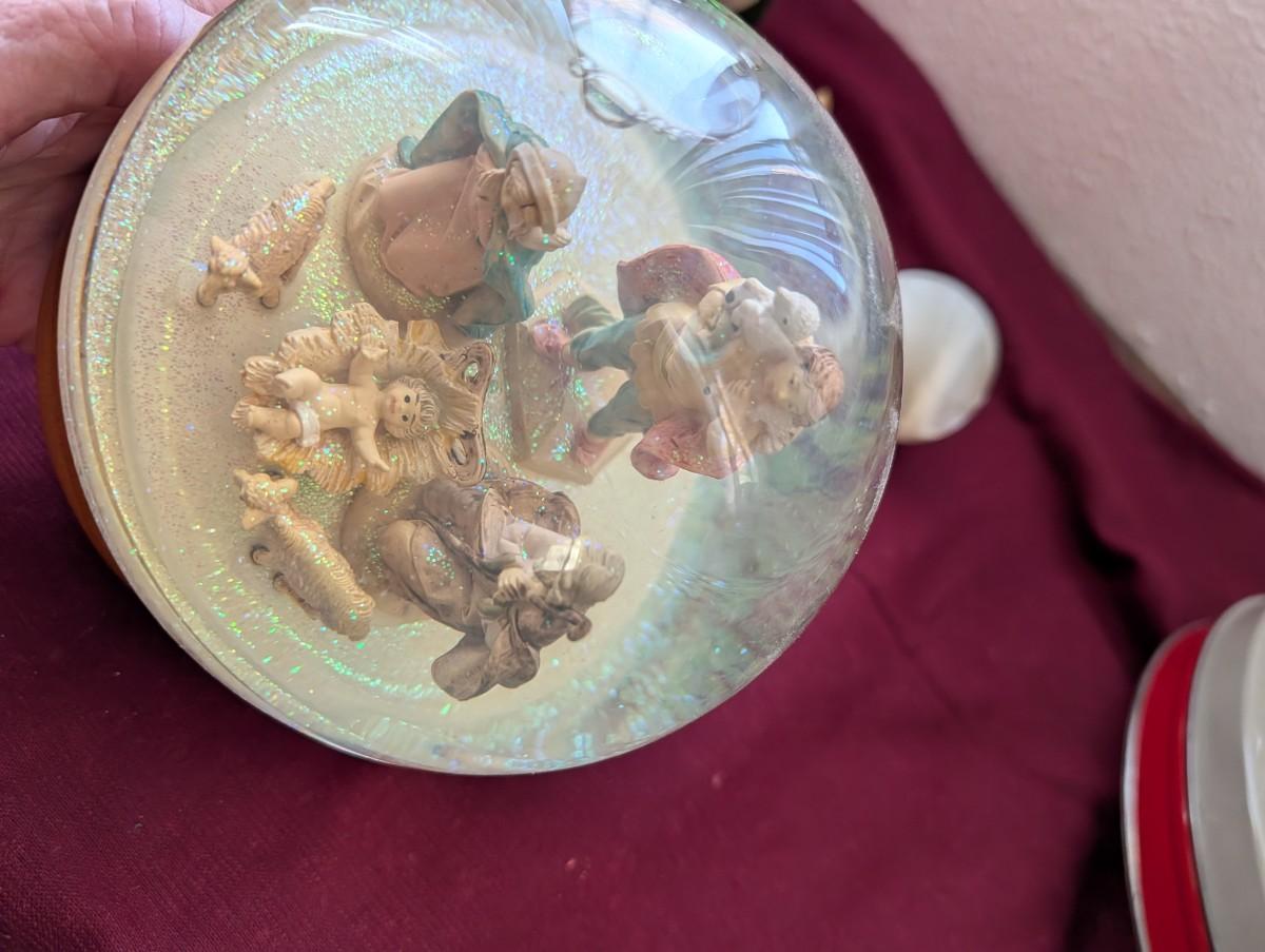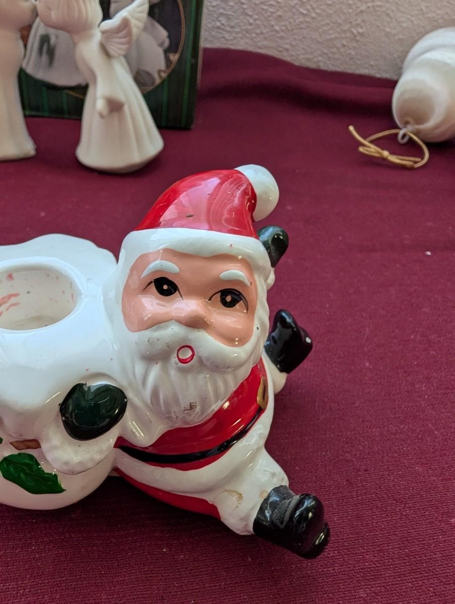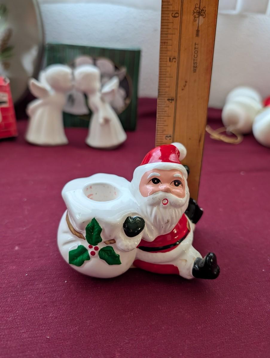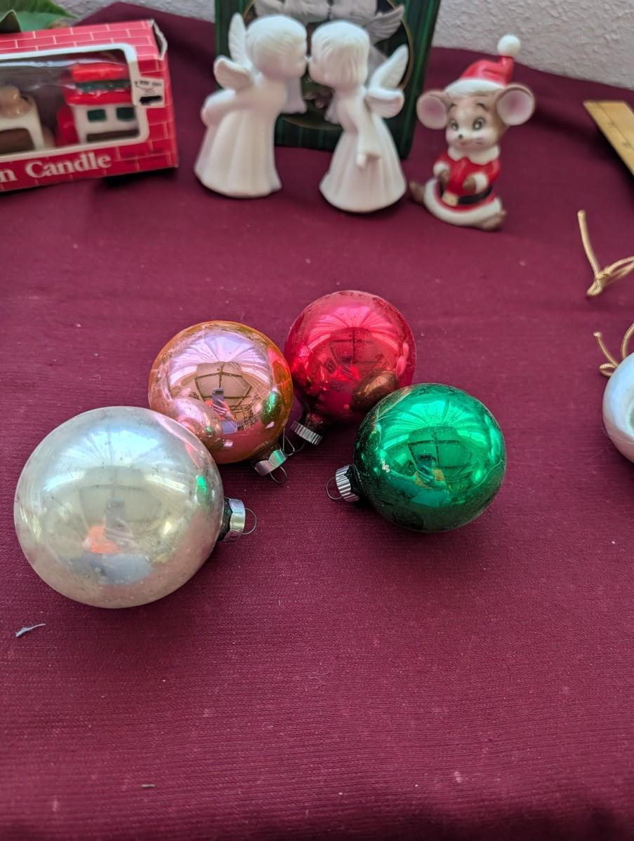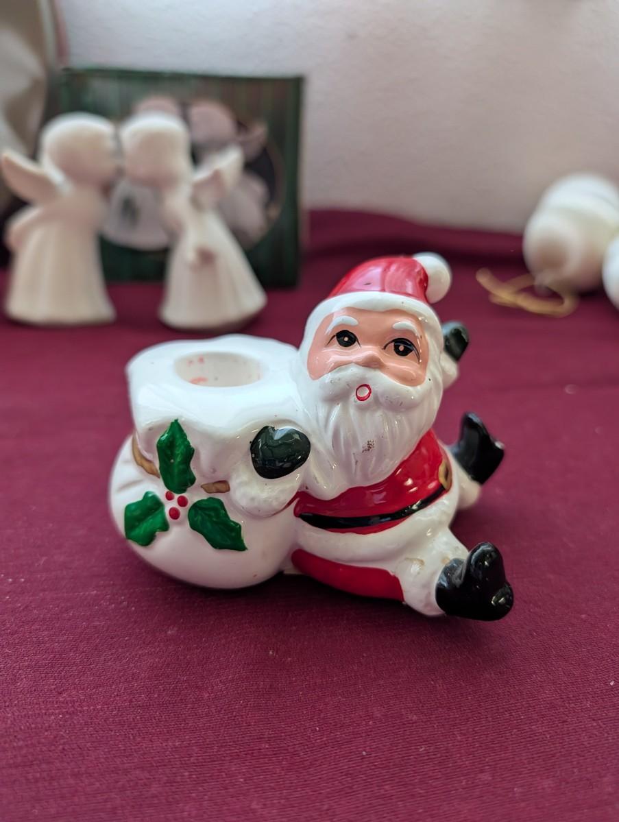 More Christmas decorations.... It just doesn't end. Christmas globe, Christmas candle train, bulbs, Santa candle holders ornaments,