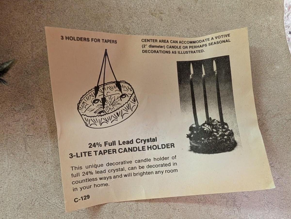 Lead crystal princess house candle holder for tapers, Christmas wraps,
