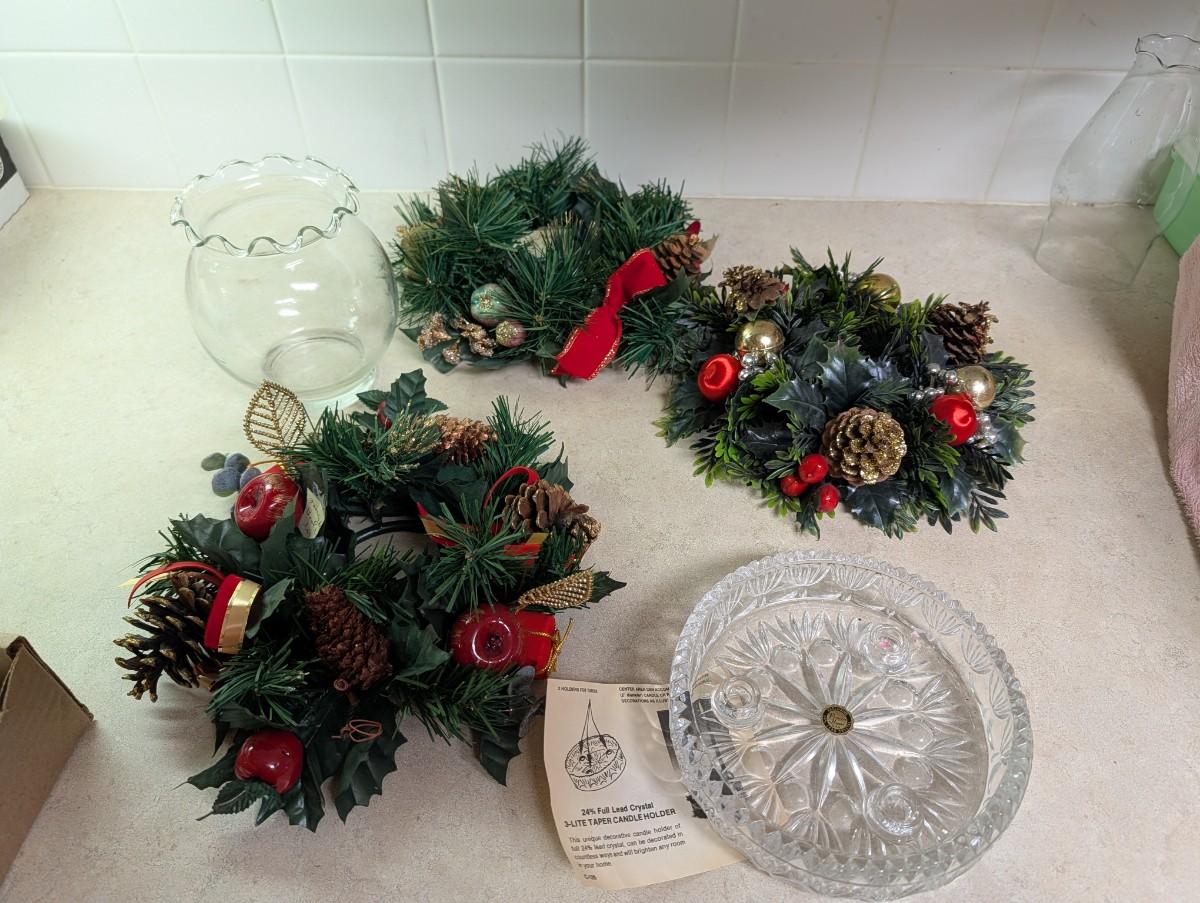 Christmas candle wraps, lead crystal candle holder for tapers.