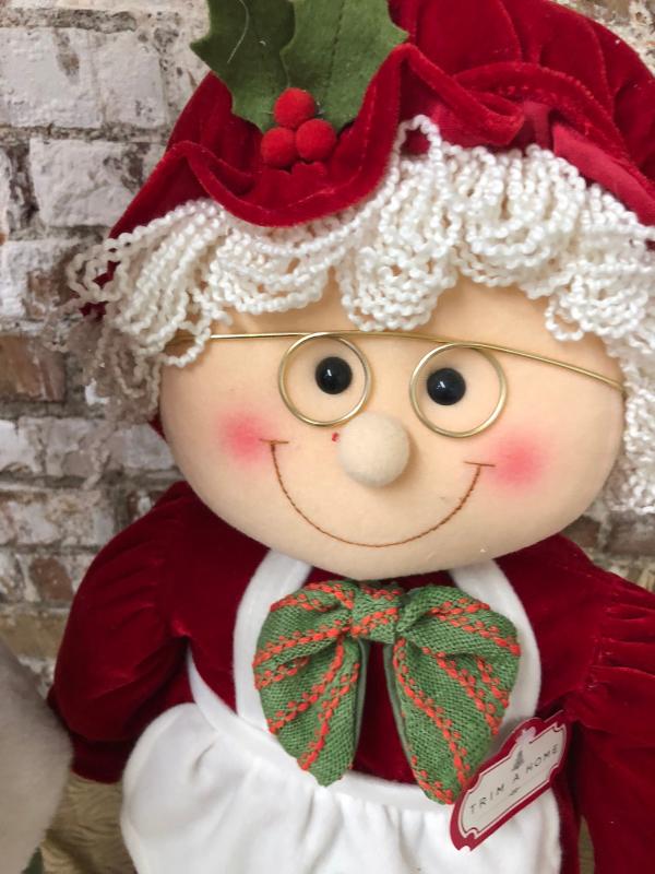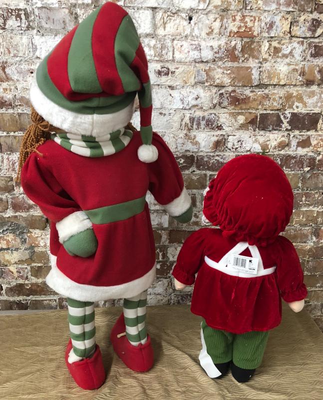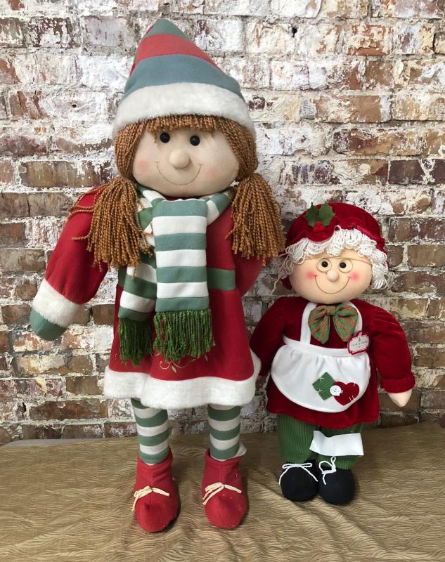 Here are a plush pair of Holiday dolls...a 38" tall big little girl elf and a 27" Mrs. Claus...Excellent condition...