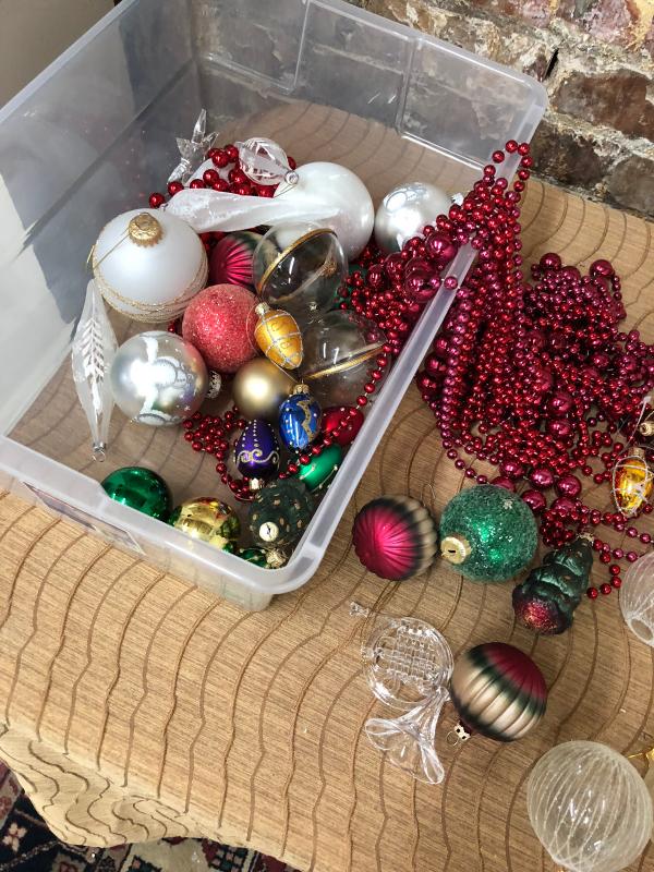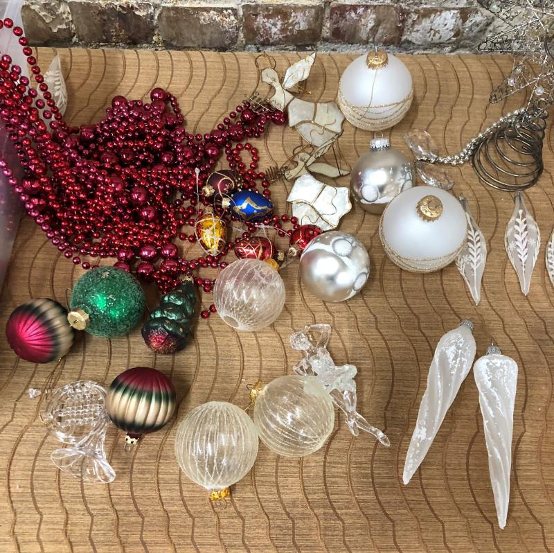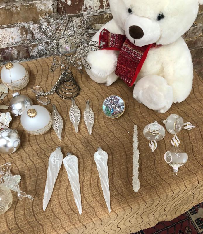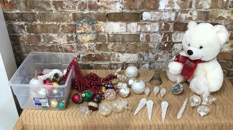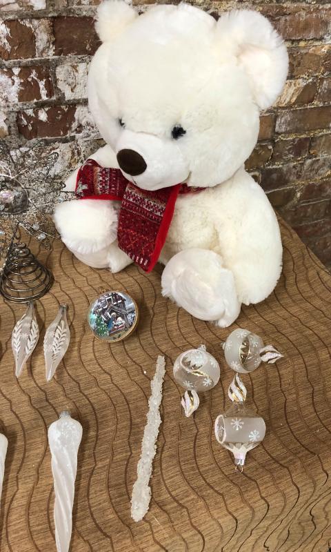 Excellent condition on this varied lot of Christmas decorations...all that is pictured...including a plush white Teddy Bear...