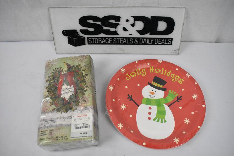 Christmas Holiday Disposable Plates (18) and Napkins (32) - New