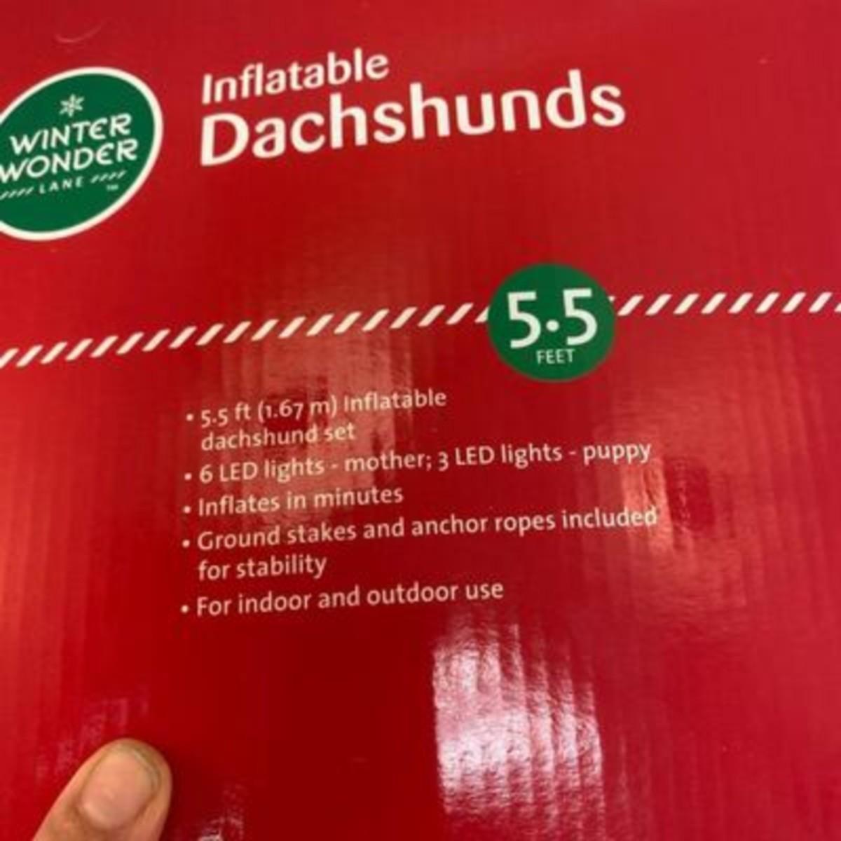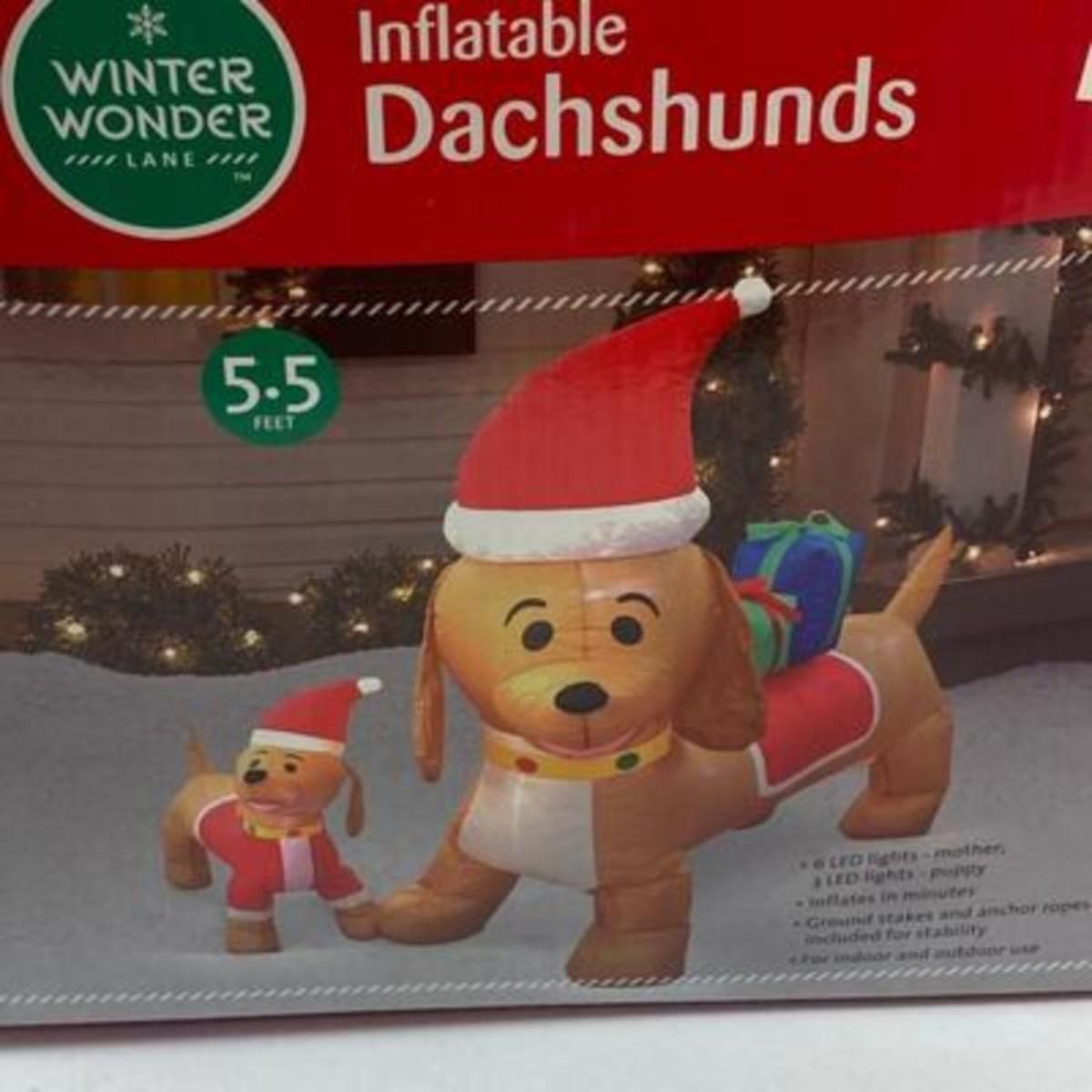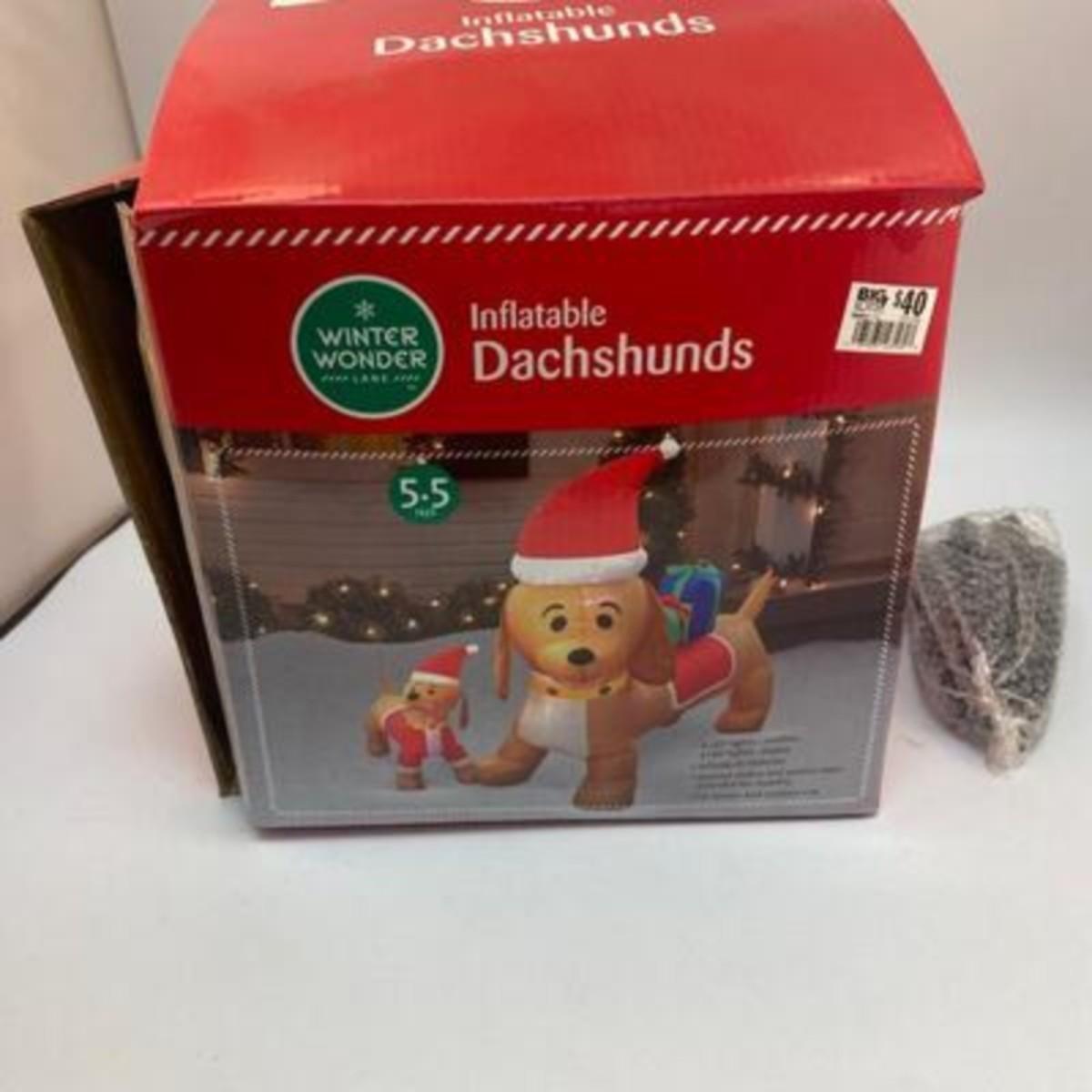 Christmas Holiday Inflatable Dachshunds Weiner Dog Yard Decor. Looks to be in good condition. Did not inflate. Box is coming apart.
