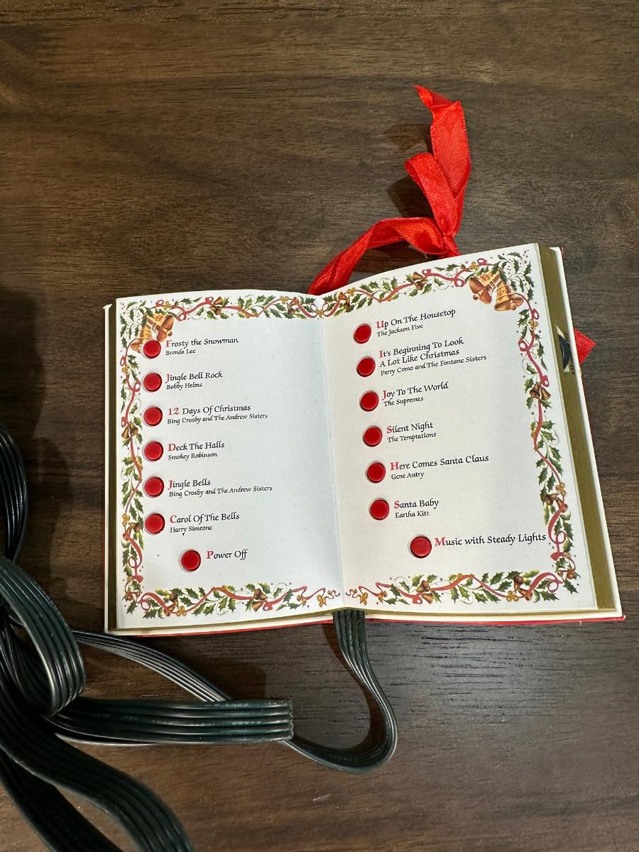 Christmas Holiday Lights And Sounds Tree Ornament Song Book Electric Box